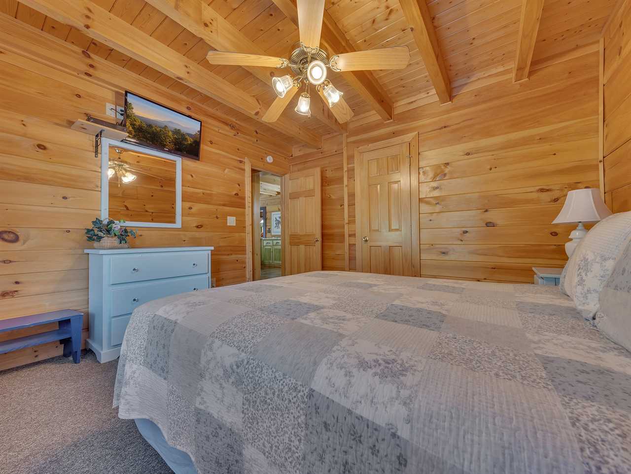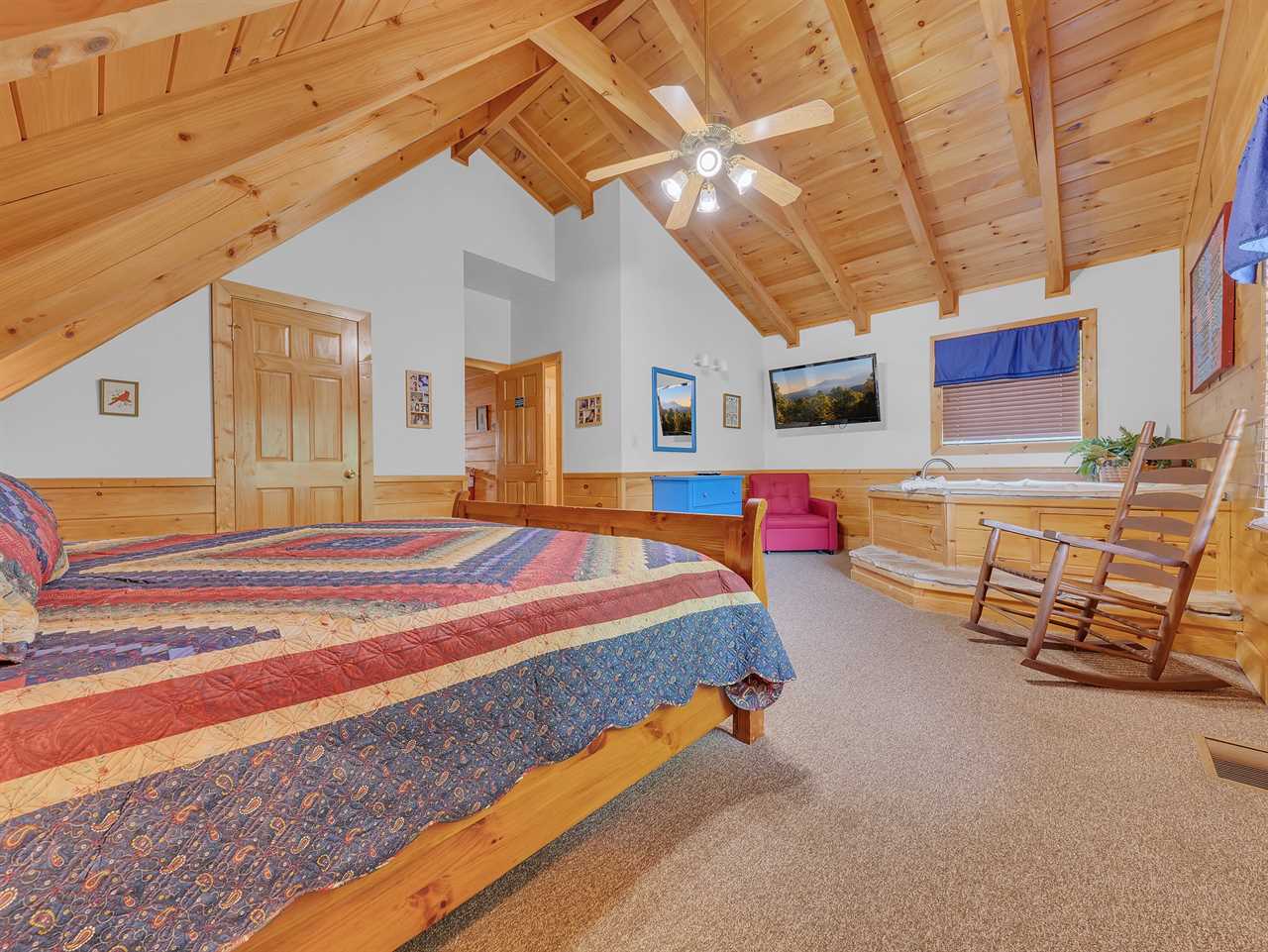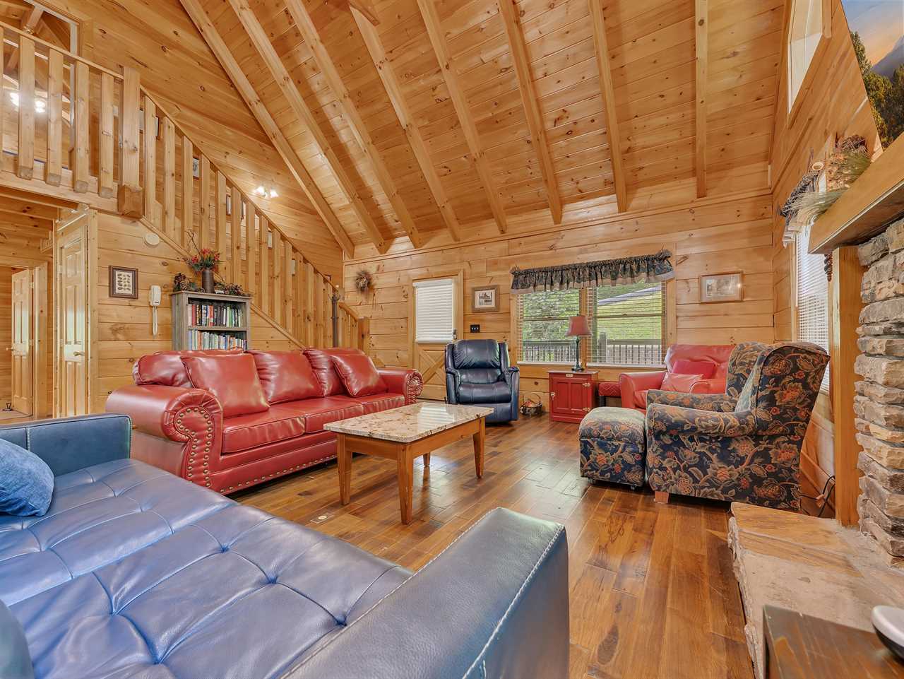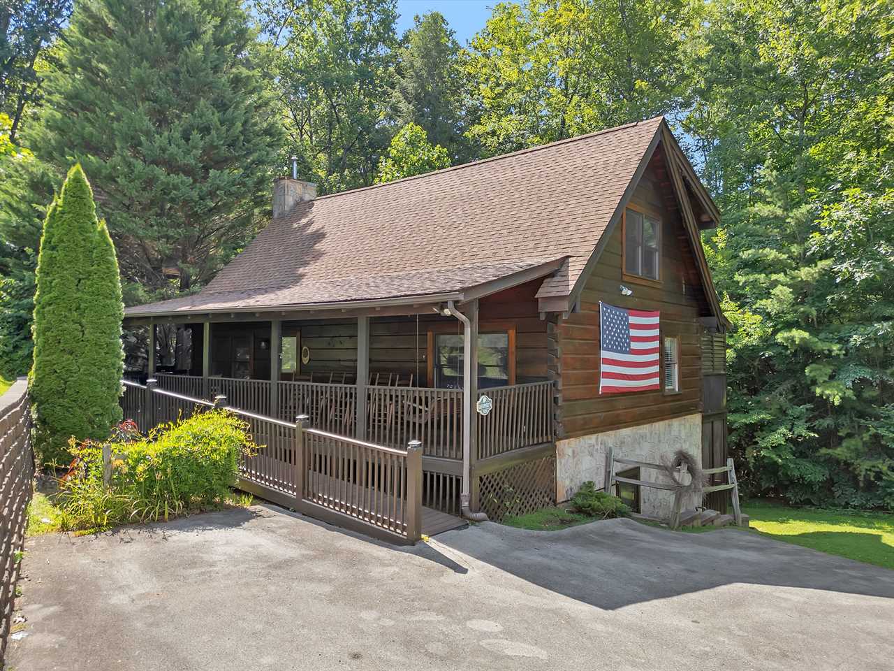 ER309, George's – 5-Bedroom Log Cabin in Pigeon Forge with Game Room, Hot Tub & More! Escape to the Smokies at George's, a spacious three-level log cabin tucked in a charming log cabin community with swimming pool access. Offering 5 bedrooms, 4 bathrooms, a private hot tub, game room, and Jacuzzi, this beautifully designed cabin is perfect for families, couples, or group getaways. Located just minutes from Pigeon Forge, Gatlinburg, and the Great Smoky Mountains National Park, you'll enjoy the best of both worlds—peaceful seclusion with easy access to all the action. Main Level Step into a cozy living area with a stacked stone gas fireplace, queen sleeper sofa, recliner, and plush seating. Enjoy entertainment on the 85" TV , all under a soaring vaulted ceiling with warm wood accents. The fully equipped kitchen features granite countertops, tile floors, 2 coffeemakers, and a Keurig (pods not included), along with a dining area that seats up to 10 guests comfortably. Two queen bedrooms with TVs are on this level, along with a full bathroom featuring a stand-up shower with grab bars for added convenience. Upper Level Retreat to the master suite with a king bed, private Jacuzzi tub, TV, and private en-suite with stand-up shower. Lower Level Get ready for fun in the game room with pool table, wet bar, complete with a TV, queen sleeper sofa, and a variety of seating options. Two additional queen bedrooms each have private bathrooms with a tub/shower combo, and there's a stacked washer/dryer for your convenience. Outdoor Amenities Front deck: Gas Grill - 4 wooden rockers, porch swing, and ceiling fans Back deck: picnic table, and private hot tub with privacy louvers Lower deck: Hammock Sitting area with 4 chairs, table and peaceful woodland views