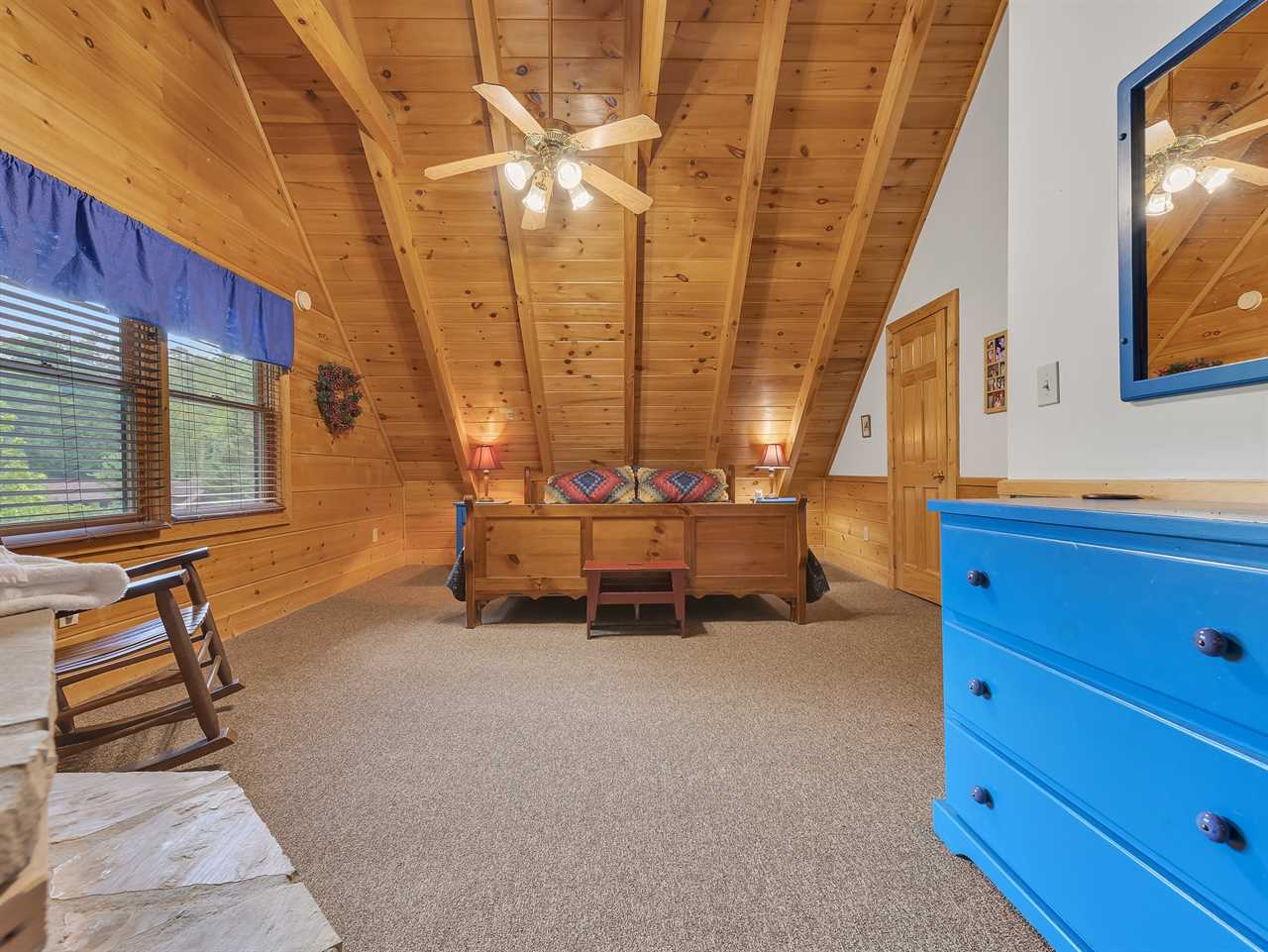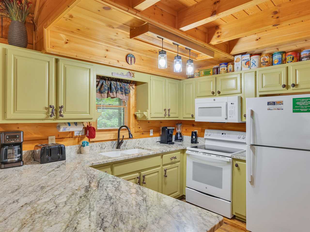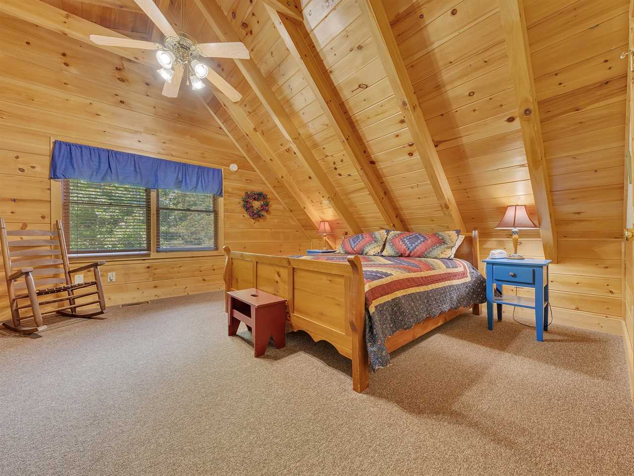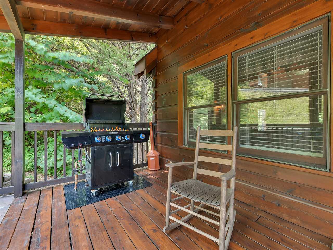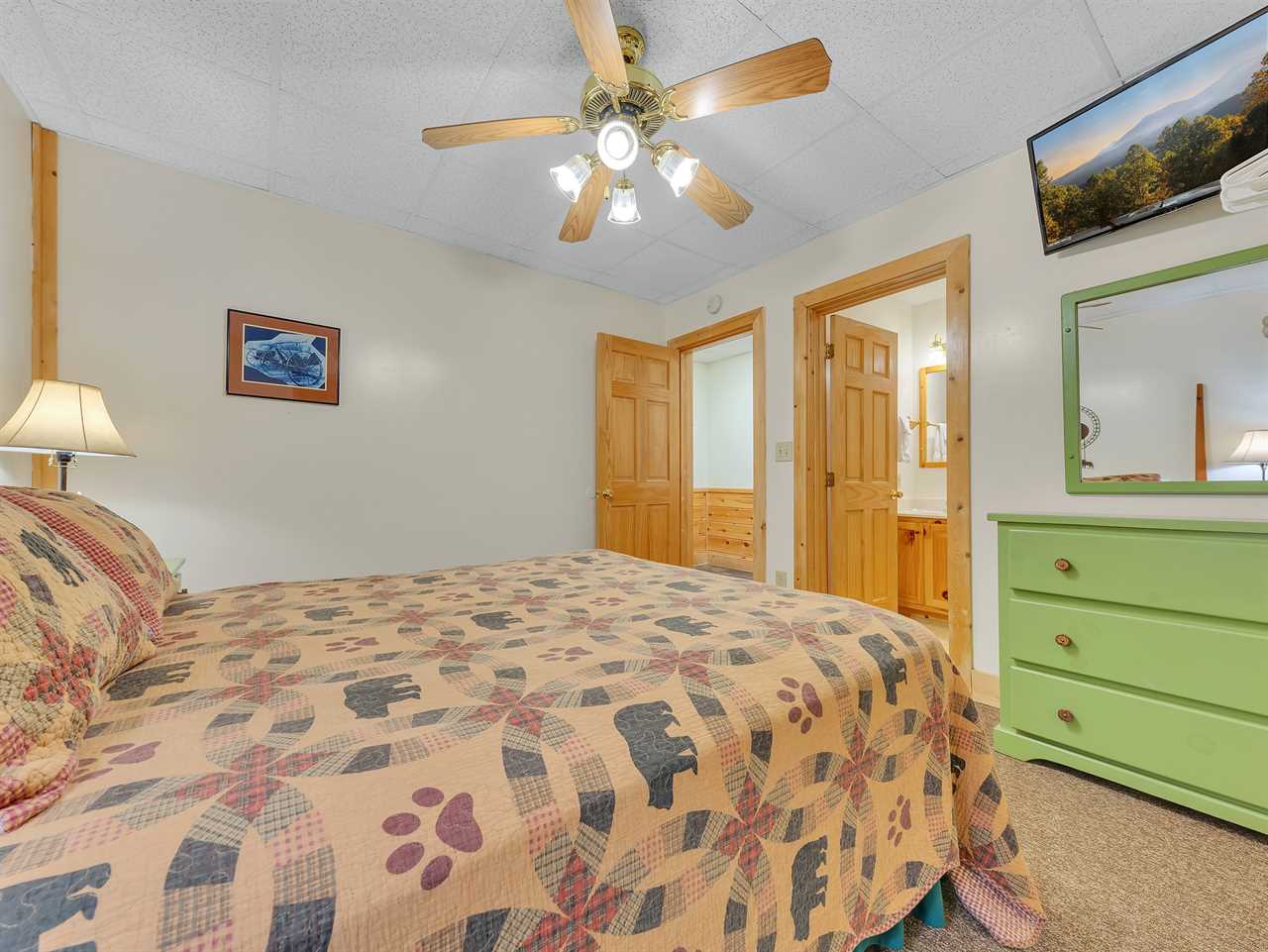 ER309, George's – 5-Bedroom Log Cabin in Pigeon Forge with Game Room, Hot Tub & More! Escape to the Smokies at George's, a spacious three-level log cabin tucked in a charming log cabin community with swimming pool access. Offering 5 bedrooms, 4 bathrooms, a private hot tub, game room, and Jacuzzi, this beautifully designed cabin is perfect for families, couples, or group getaways. Located just minutes from Pigeon Forge, Gatlinburg, and the Great Smoky Mountains National Park, you'll enjoy the best of both worlds—peaceful seclusion with easy access to all the action. Main Level Step into a cozy living area with a stacked stone gas fireplace, queen sleeper sofa, recliner, and plush seating. Enjoy entertainment on the 85" TV , all under a soaring vaulted ceiling with warm wood accents. The fully equipped kitchen features granite countertops, tile floors, 2 coffeemakers, and a Keurig (pods not included), along with a dining area that seats up to 10 guests comfortably. Two queen bedrooms with TVs are on this level, along with a full bathroom featuring a stand-up shower with grab bars for added convenience. Upper Level Retreat to the master suite with a king bed, private Jacuzzi tub, TV, and private en-suite with stand-up shower. Lower Level Get ready for fun in the game room with pool table, wet bar, complete with a TV, queen sleeper sofa, and a variety of seating options. Two additional queen bedrooms each have private bathrooms with a tub/shower combo, and there's a stacked washer/dryer for your convenience. Outdoor Amenities Front deck: Gas Grill - 4 wooden rockers, porch swing, and ceiling fans Back deck: picnic table, and private hot tub with privacy louvers Lower deck: Hammock Sitting area with 4 chairs, table and peaceful woodland views