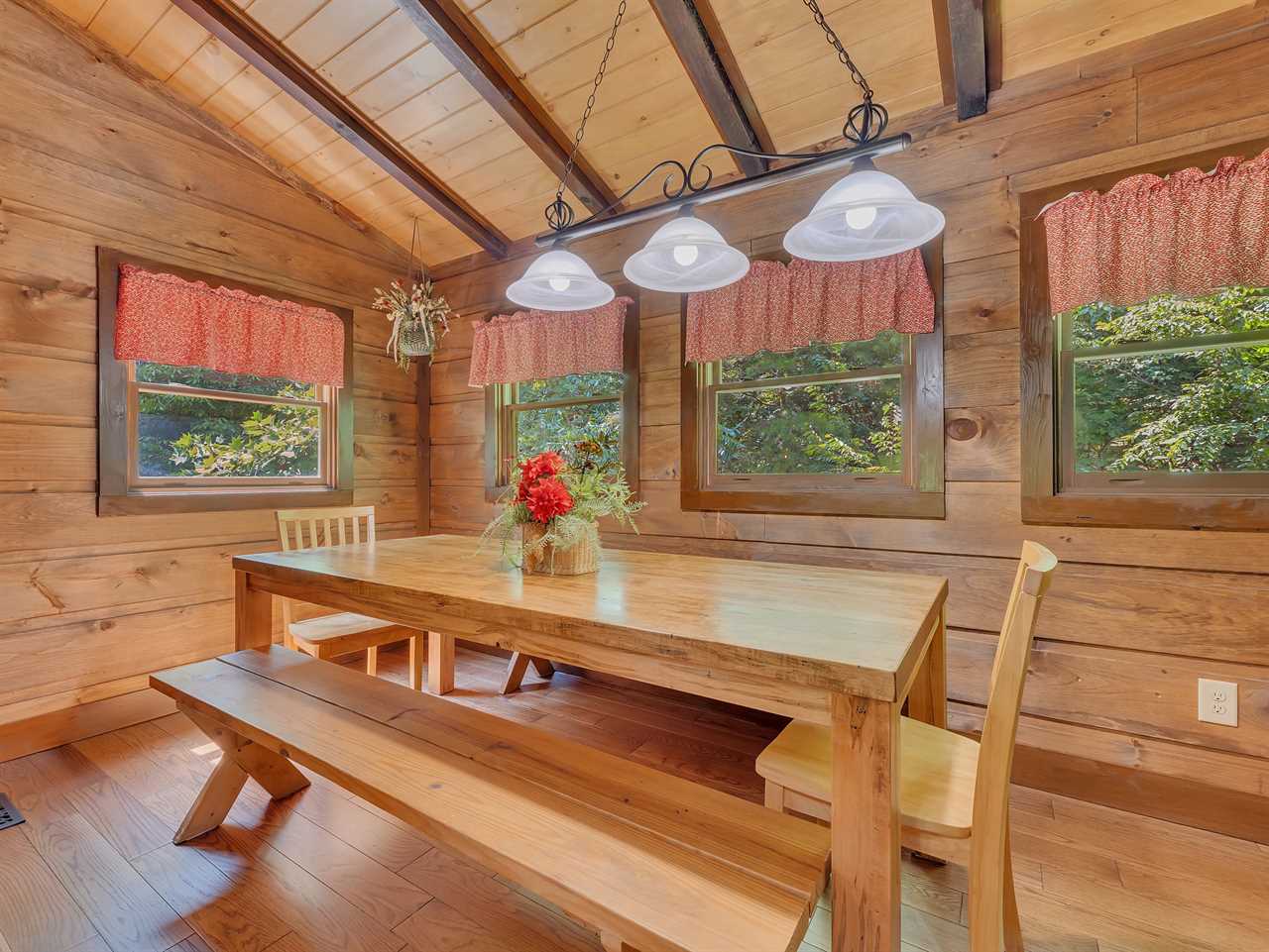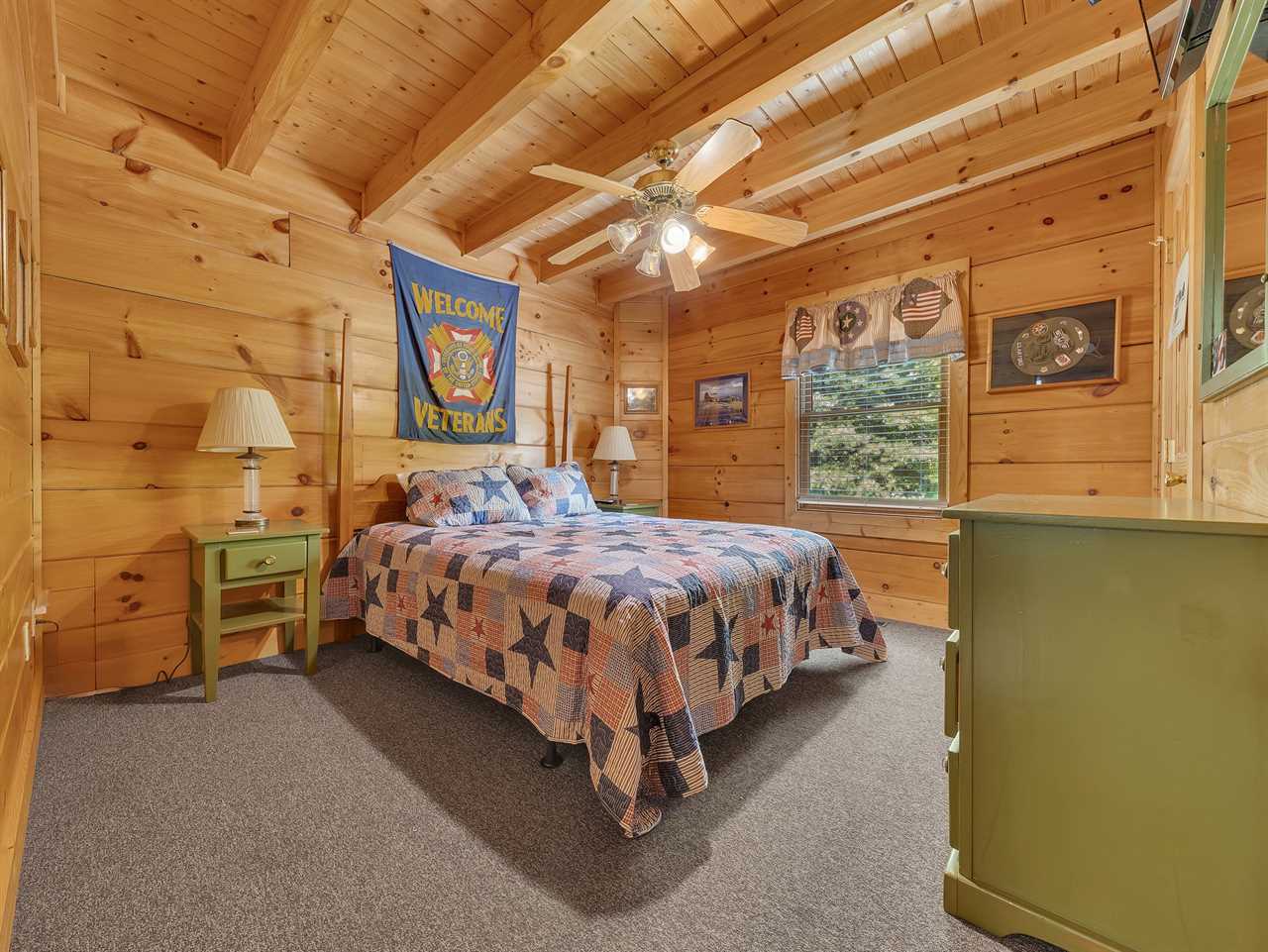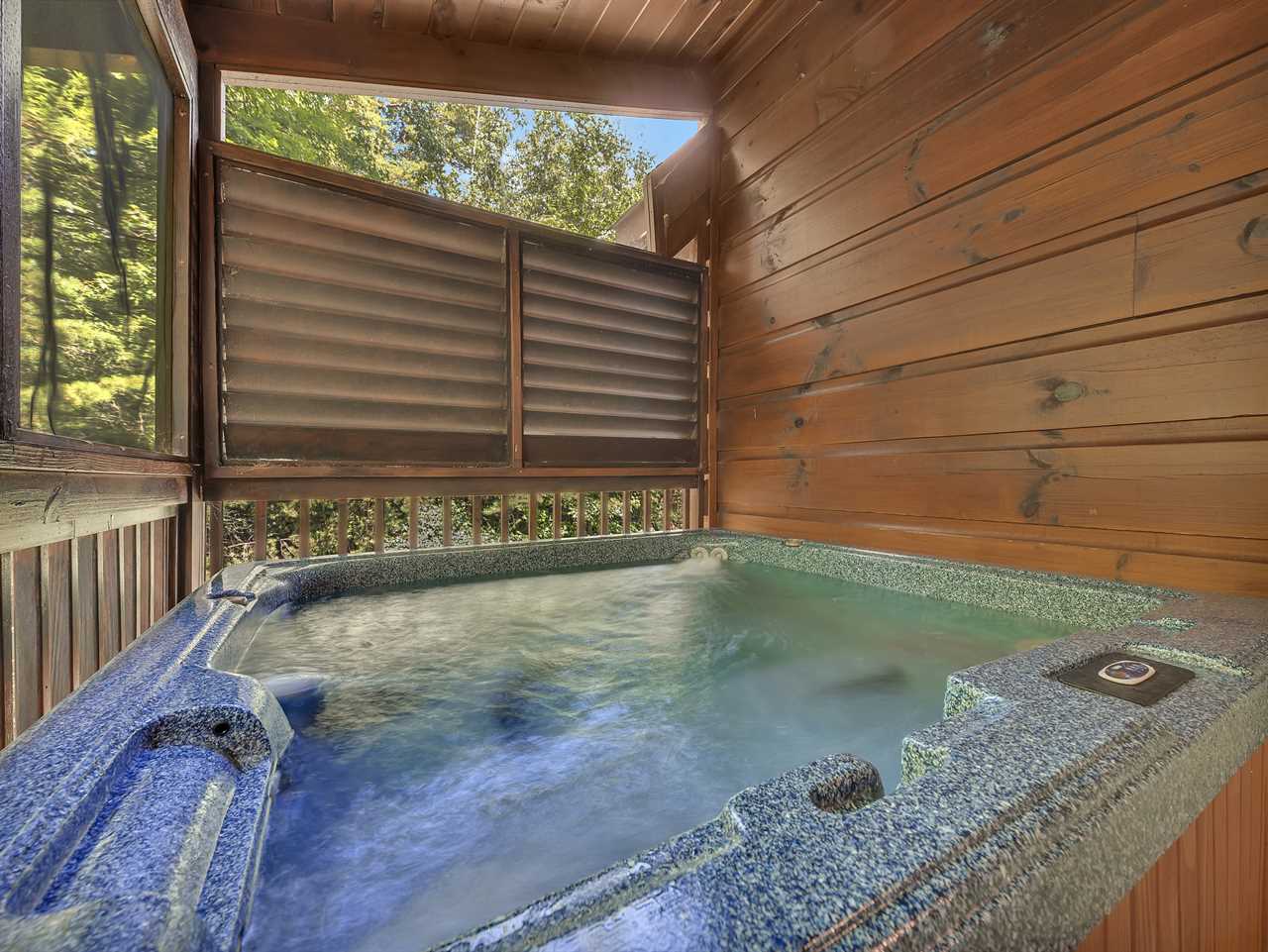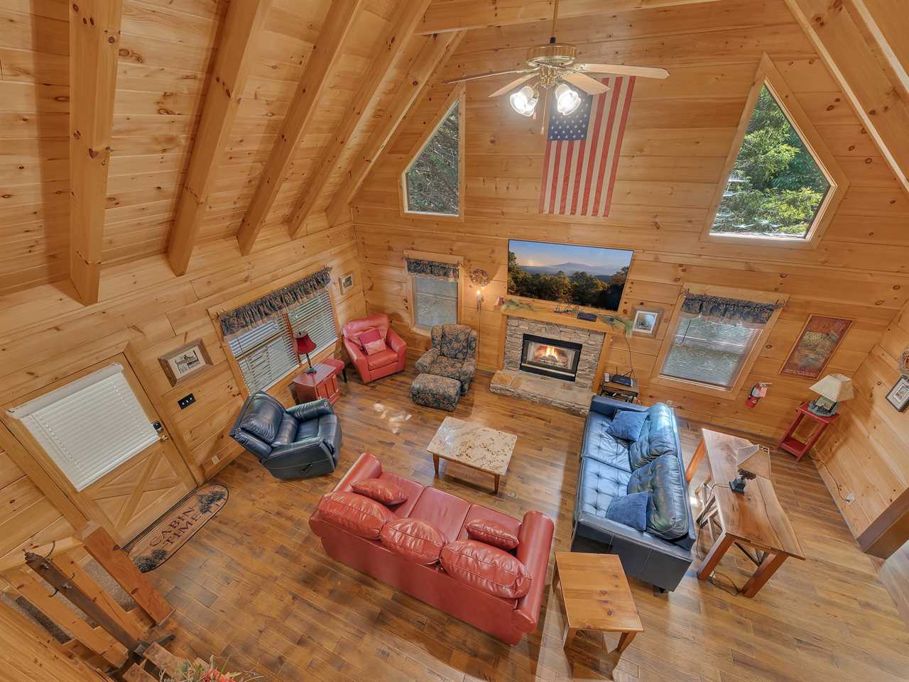 ER309, George's – 5-Bedroom Log Cabin in Pigeon Forge with Game Room, Hot Tub & More! Escape to the Smokies at George's, a spacious three-level log cabin tucked in a charming log cabin community with swimming pool access. Offering 5 bedrooms, 4 bathrooms, a private hot tub, game room, and Jacuzzi, this beautifully designed cabin is perfect for families, couples, or group getaways. Located just minutes from Pigeon Forge, Gatlinburg, and the Great Smoky Mountains National Park, you'll enjoy the best of both worlds—peaceful seclusion with easy access to all the action. Main Level Step into a cozy living area with a stacked stone gas fireplace, queen sleeper sofa, recliner, and plush seating. Enjoy entertainment on the 85" TV , all under a soaring vaulted ceiling with warm wood accents. The fully equipped kitchen features granite countertops, tile floors, 2 coffeemakers, and a Keurig (pods not included), along with a dining area that seats up to 10 guests comfortably. Two queen bedrooms with TVs are on this level, along with a full bathroom featuring a stand-up shower with grab bars for added convenience. Upper Level Retreat to the master suite with a king bed, private Jacuzzi tub, TV, and private en-suite with stand-up shower. Lower Level Get ready for fun in the game room with pool table, wet bar, complete with a TV, queen sleeper sofa, and a variety of seating options. Two additional queen bedrooms each have private bathrooms with a tub/shower combo, and there's a stacked washer/dryer for your convenience. Outdoor Amenities Front deck: Gas Grill - 4 wooden rockers, porch swing, and ceiling fans Back deck: picnic table, and private hot tub with privacy louvers Lower deck: Hammock Sitting area with 4 chairs, table and peaceful woodland views