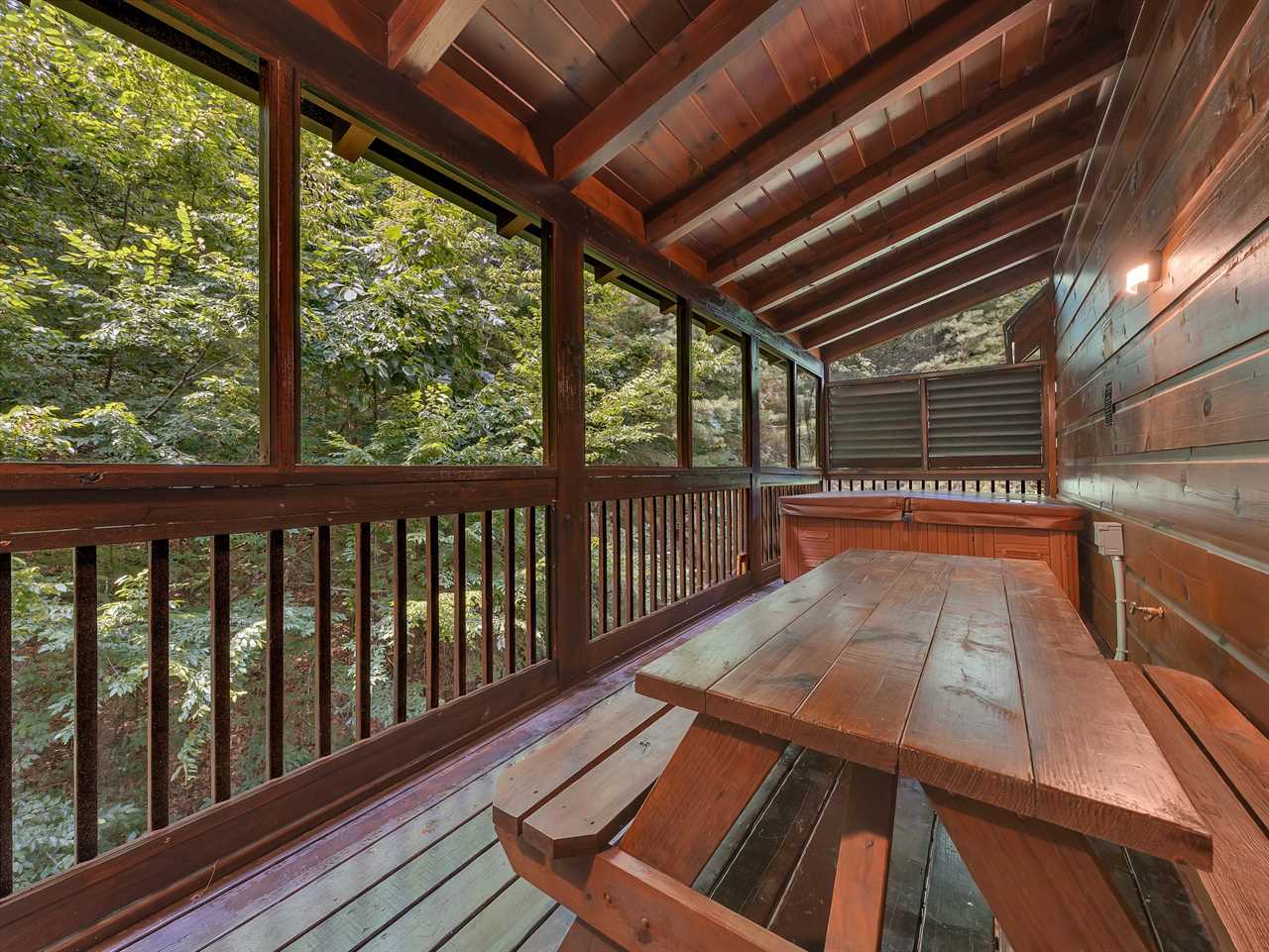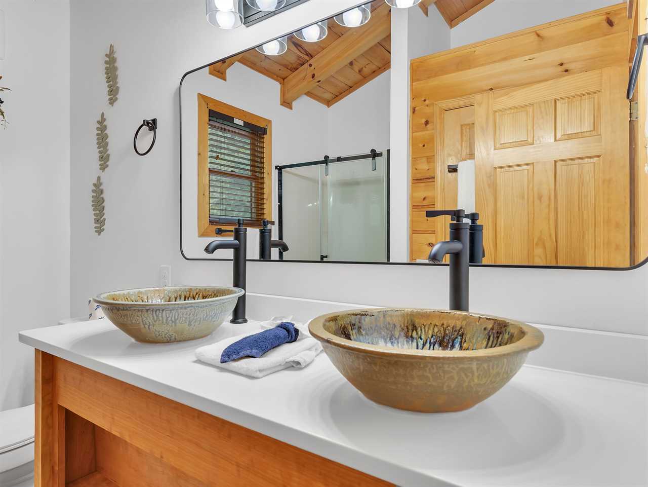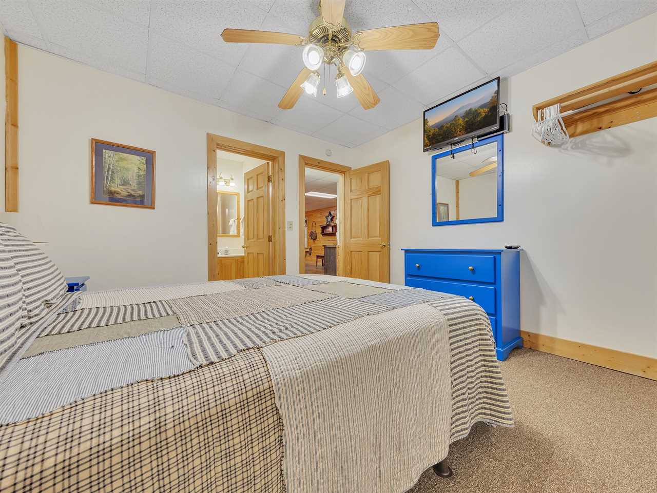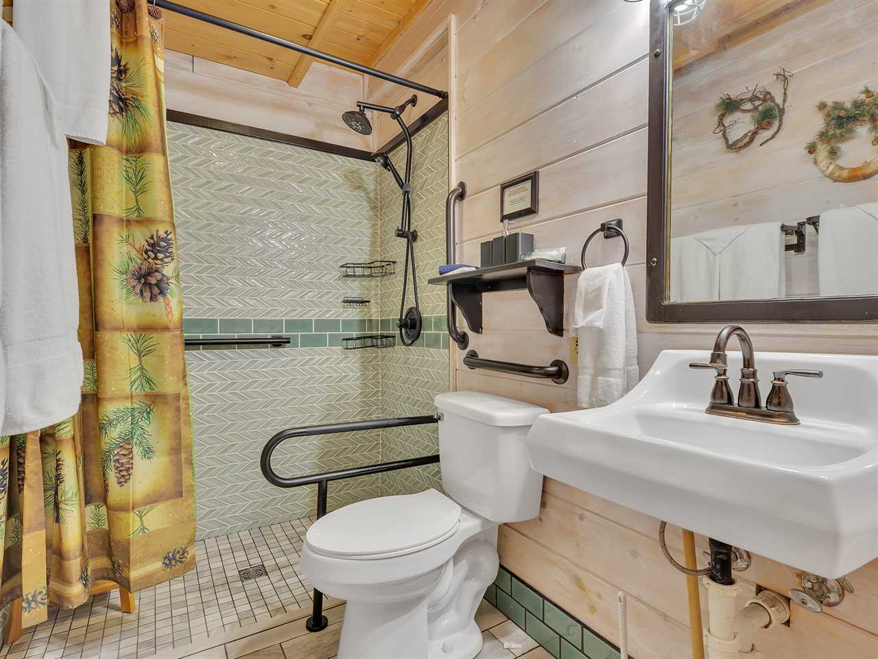 ER309, George's – 5-Bedroom Log Cabin in Pigeon Forge with Game Room, Hot Tub & More! Escape to the Smokies at George's, a spacious three-level log cabin tucked in a charming log cabin community with swimming pool access. Offering 5 bedrooms, 4 bathrooms, a private hot tub, game room, and Jacuzzi, this beautifully designed cabin is perfect for families, couples, or group getaways. Located just minutes from Pigeon Forge, Gatlinburg, and the Great Smoky Mountains National Park, you'll enjoy the best of both worlds—peaceful seclusion with easy access to all the action. Main Level Step into a cozy living area with a stacked stone gas fireplace, queen sleeper sofa, recliner, and plush seating. Enjoy entertainment on the 85" TV , all under a soaring vaulted ceiling with warm wood accents. The fully equipped kitchen features granite countertops, tile floors, 2 coffeemakers, and a Keurig (pods not included), along with a dining area that seats up to 10 guests comfortably. Two queen bedrooms with TVs are on this level, along with a full bathroom featuring a stand-up shower with grab bars for added convenience. Upper Level Retreat to the master suite with a king bed, private Jacuzzi tub, TV, and private en-suite with stand-up shower. Lower Level Get ready for fun in the game room with pool table, wet bar, complete with a TV, queen sleeper sofa, and a variety of seating options. Two additional queen bedrooms each have private bathrooms with a tub/shower combo, and there's a stacked washer/dryer for your convenience. Outdoor Amenities Front deck: Gas Grill - 4 wooden rockers, porch swing, and ceiling fans Back deck: picnic table, and private hot tub with privacy louvers Lower deck: Hammock Sitting area with 4 chairs, table and peaceful woodland views