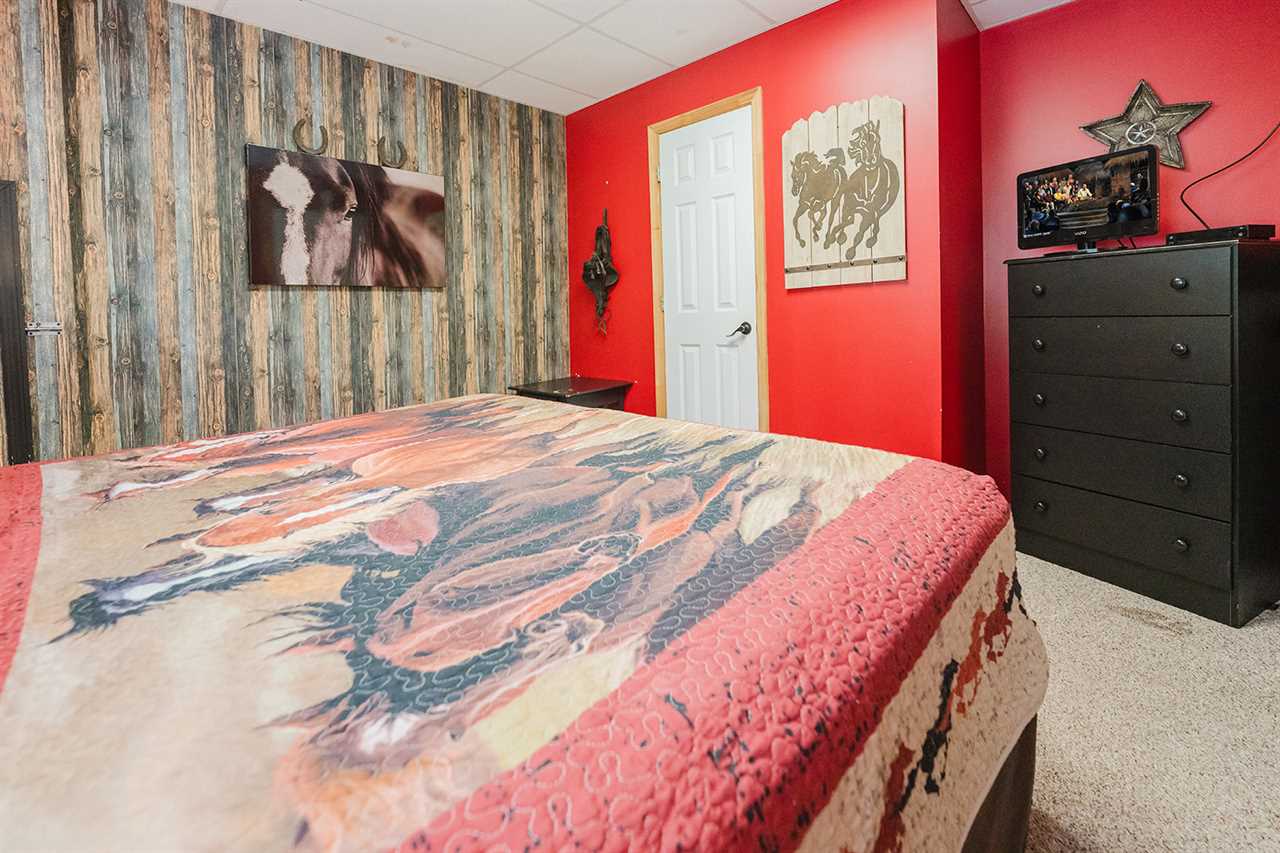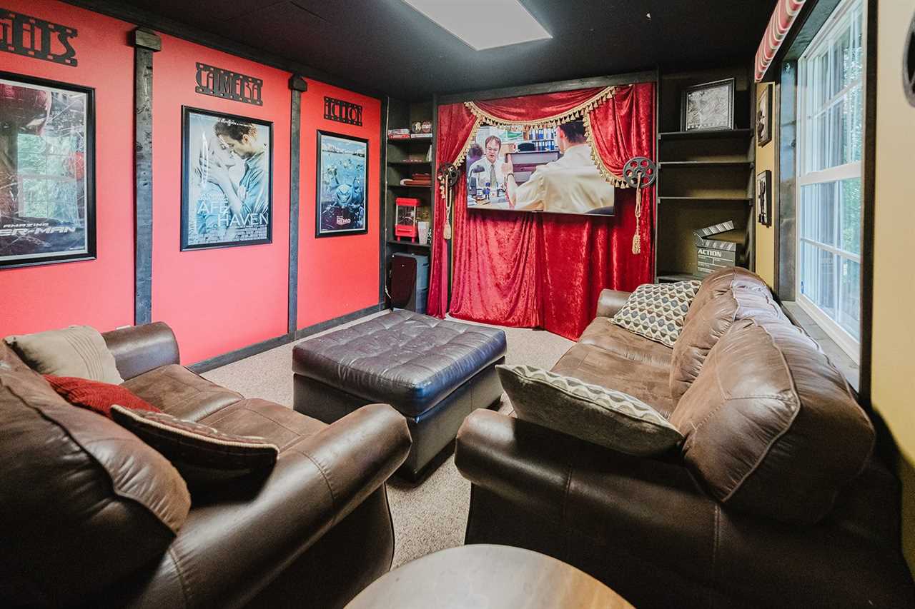 Get ready to have a blast in our game room, located on the lower level, the perfect retreat from the hustle and bustle of daily life. As you descend the stairs, you'll be transported into a world of fun and entertainment, complete with a regulation-sized pool table, perfect for challenging your friends and family to a game of billiards. The theatre room is designed to be a cozy retreat, with a comfortable 3-person couch and loveseat providing ample seating for relaxing and enjoying the flat-screen TV. Catch your favorite show, movie, or sports game while enjoying the comfort and warmth of this space. But it's not just about relaxation - this entertainment area is designed to be a space where memories are made. Everyone deserves some fun and relaxation, so we've designed the game room as the perfect spot to unwind and enjoy quality time with loved ones. Step out the door onto the deck if you need a breath of fresh air. So why wait? Head downstairs and start making some unforgettable memories today!