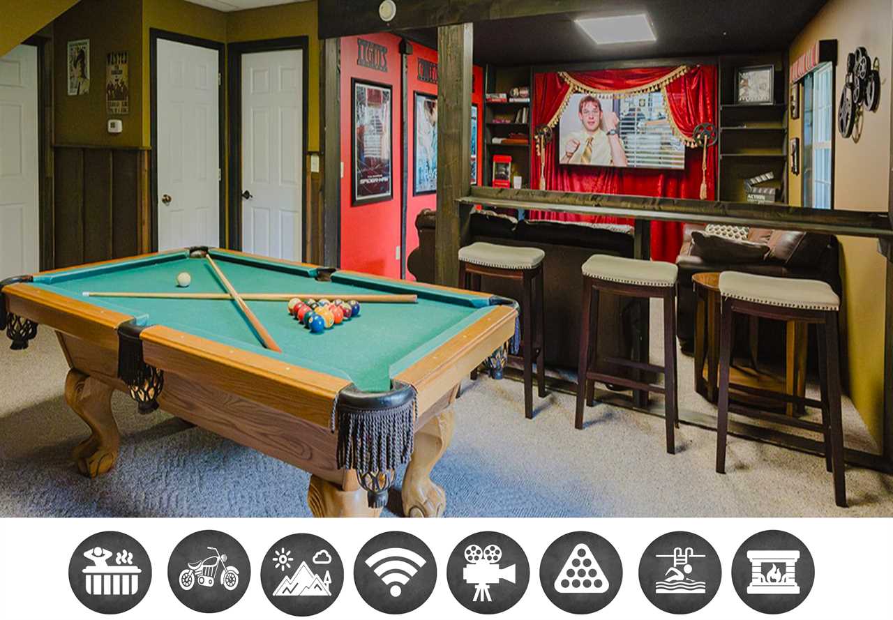 Escape to the heart of the Smoky Mountains and experience the ultimate family vacation at Barely Hidden Ridge in Gatlinburg, Tennessee! This spacious and cozy 5-bedroom, 3-bathroom retreat comfortably sleeps ten guests, making it the perfect destination for large families or groups of friends. As you step inside, you'll be greeted by the warm and inviting atmosphere of rustic charm, complete with comfortable furnishings and modern amenities. The open-concept living area features a gas fireplace, perfect for snuggling up on chilly mountain evenings. The fully equipped kitchen provides everything you need for a hearty meal. And with WiFi available throughout the cabin, you can stay connected without sacrificing your mountain getaway. But it's not all about indoor comforts - the stunning natural beauty of the Smoky Mountains surrounds this cabin. And when it's time to relax, unwind on any of the three private decks or take a soak in the hot tub under the stars. Enjoy the theatre room and pool table. With plenty of room to spread out and relax, this cabin has it all. We've thought of everything to make your family vacation unforgettable!