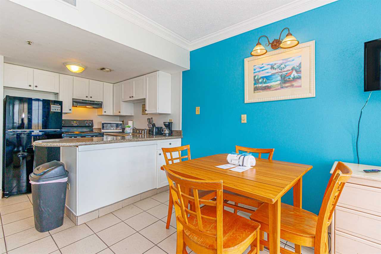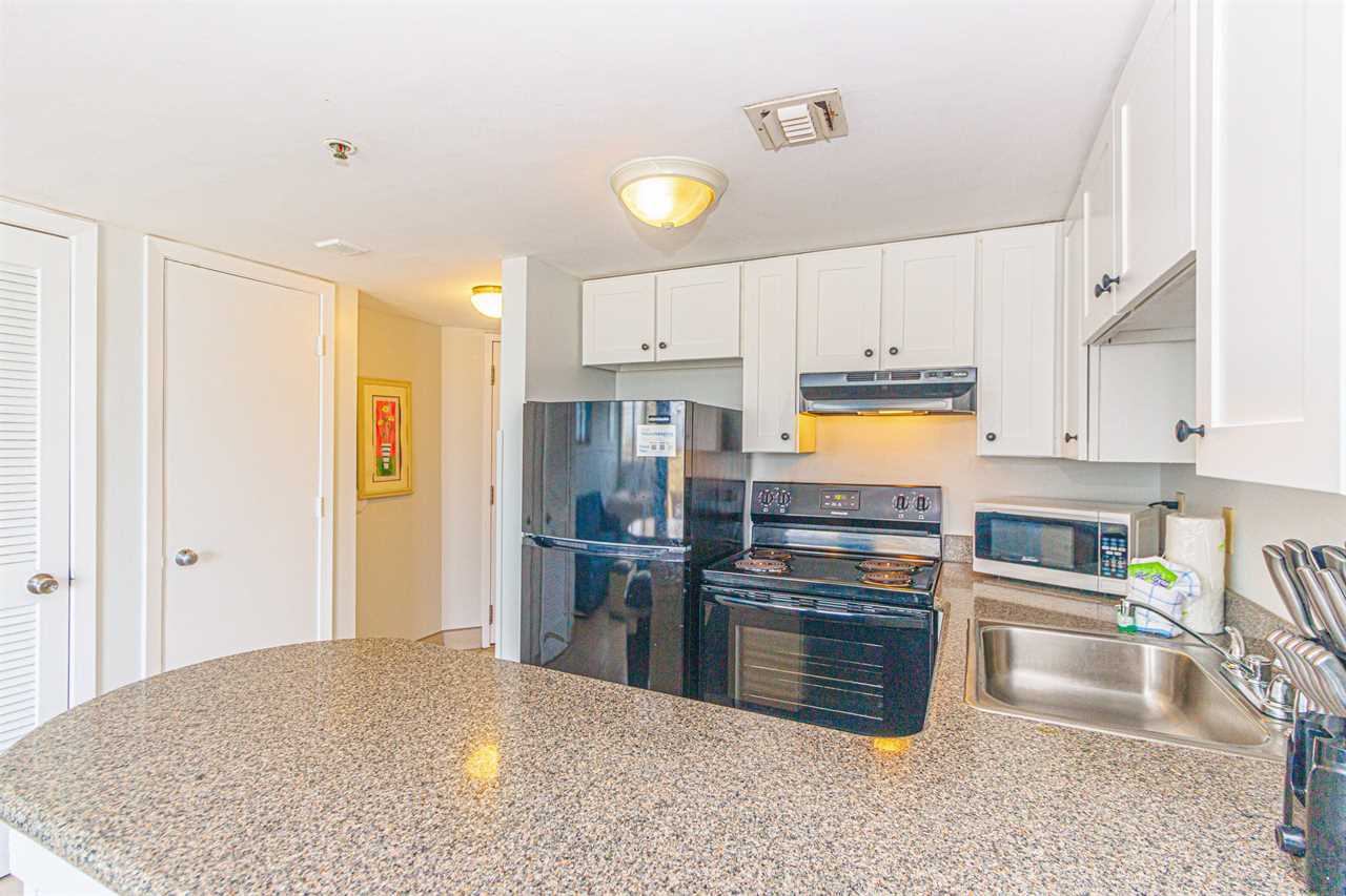 The full kitchen allows you to cook meals just the way you like them, whether it's a hearty breakfast before the beach or a cozy dinner after sunset. A full-size refrigerator, microwave, stove, and generous cabinet space make longer stays feel especially convenient. Gather around the small dining table for a meal, play a board game, or enjoy a cup of coffee before heading out. After a day of exploring, relax with the flat-screen TV, connect to the complimentary Wi-Fi, or step out onto your private balcony to breathe in the ocean air and listen to the waves roll in. Your private bathroom and additional closet space add to the comfort and ease of your stay.