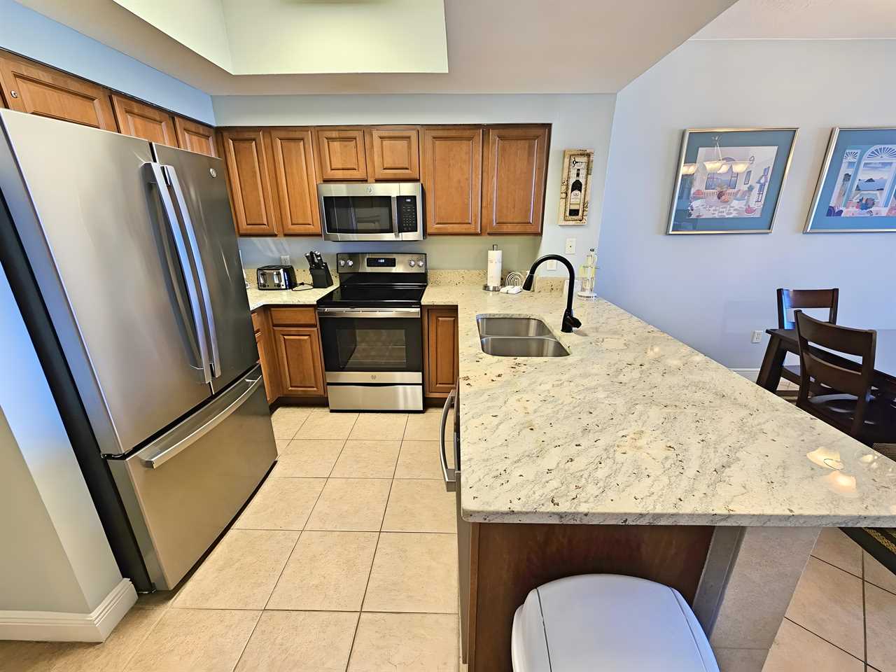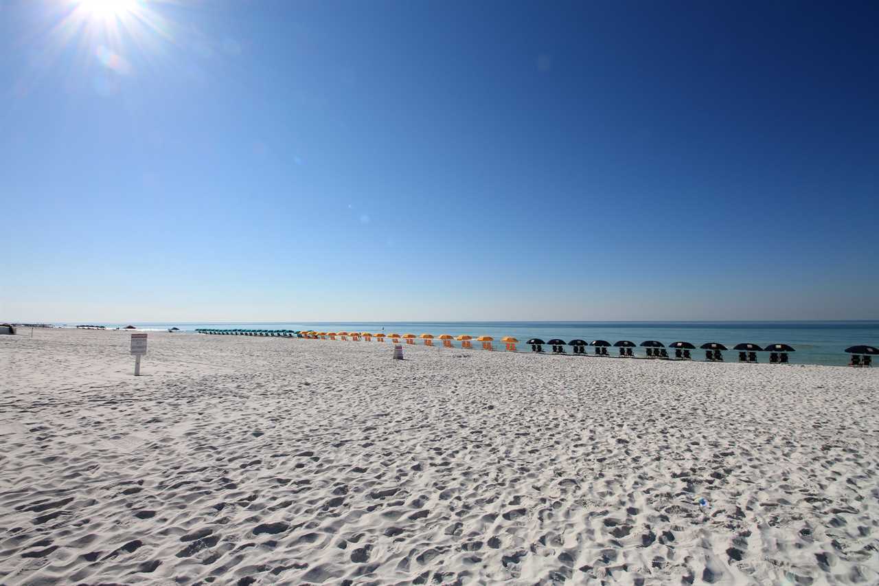 The kitchen is fully equipped with GE Profile appliances which include a 26-square foot side by side refrigerator with filtered ice and water, dishwasher, self-cleaning oven/range and a built-in microwave. In addition, the kitchen has been fully equipped with all utensils, plates, cookware, can opener and toaster for optimum convenience.Ariel Dunes is a brand new 24 story tower that has two huge pools total over 11,000 square feet and includes several fountains with large deck areas and plush landscaping.