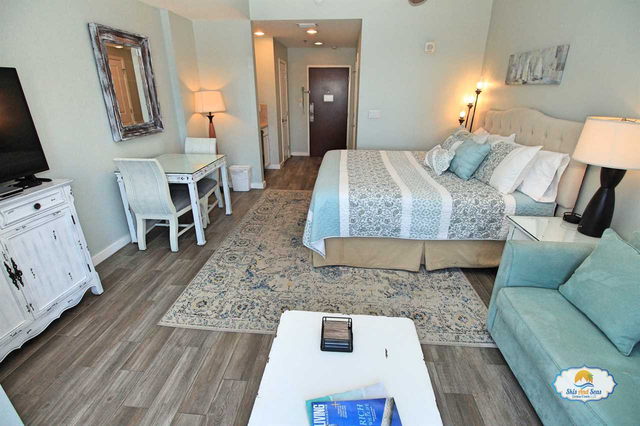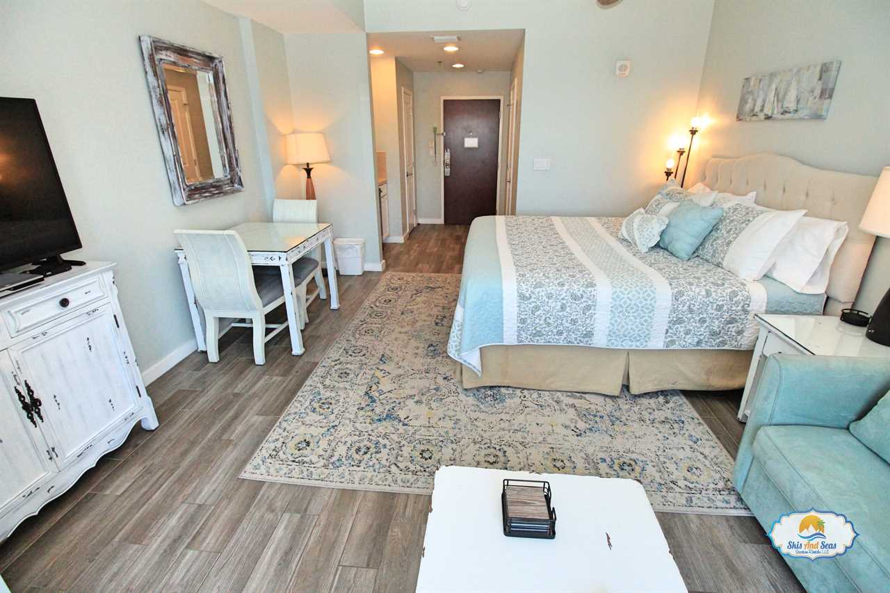 This fifth floor studio looks out over the Sandestin resort, the beautiful beaches and the Gulf of Mexico. The nicely appointed studio is part of a unique lock off set up and can be rented separately or in conjunction with the one bedroom condo next door. The studio option is perfect for a couple on a getaway weekend, a small family or if you have business or a conference at the Hilton.