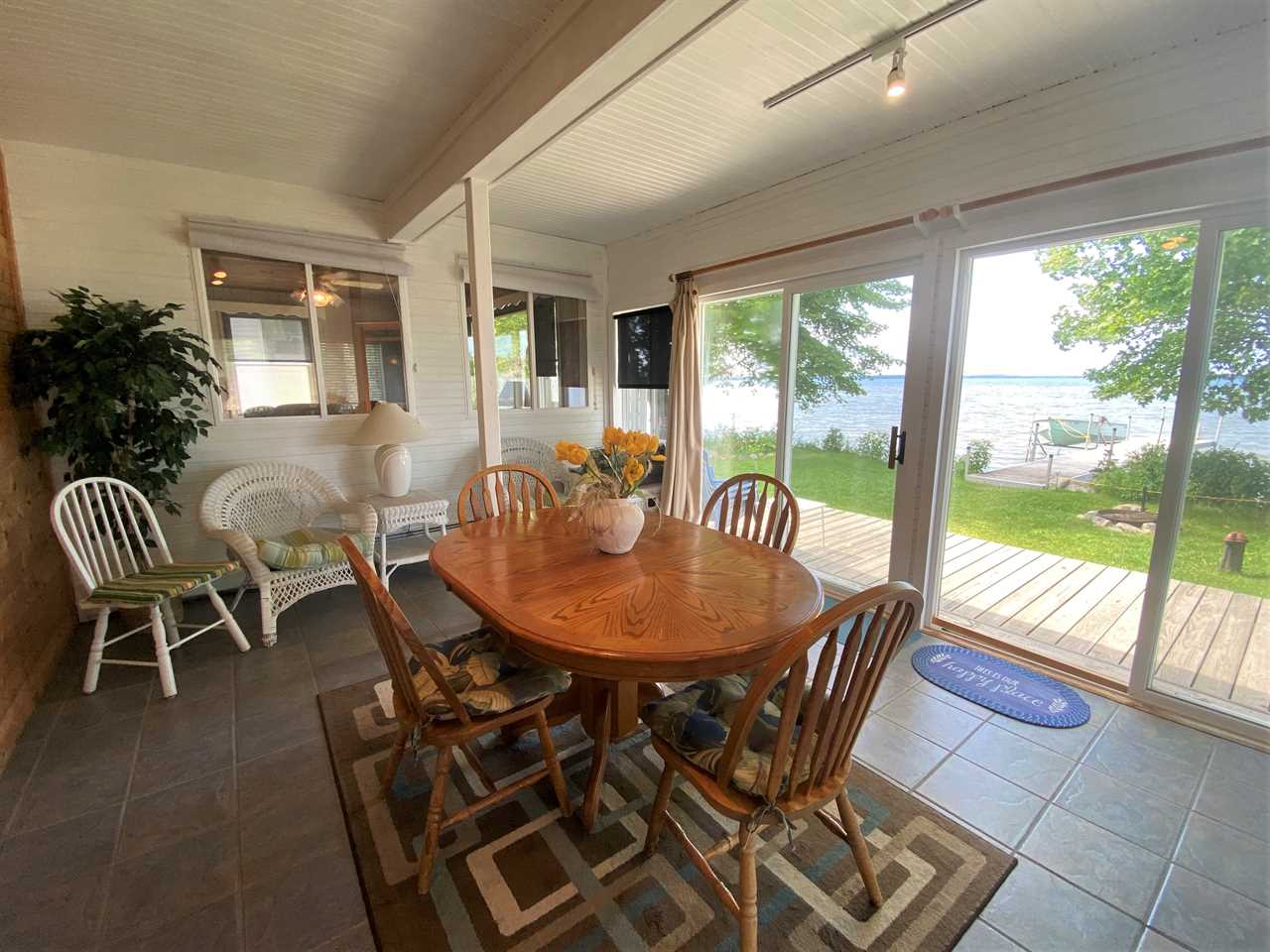 This cottage features 3 bedrooms, 2 baths, a sunroom, full kitchen, laundry room and is steps to great sandy swimming, perfect for children. There is a nice bonfire area in the front next to the lake, satellite TV, and wi-fi internet. Enjoy the enclosed lakeside porch for reading a book, eating breakfast or just gazing at the lake and incredible views. Note: 3rd bedroom is small den-type room with full bed, skylight only.