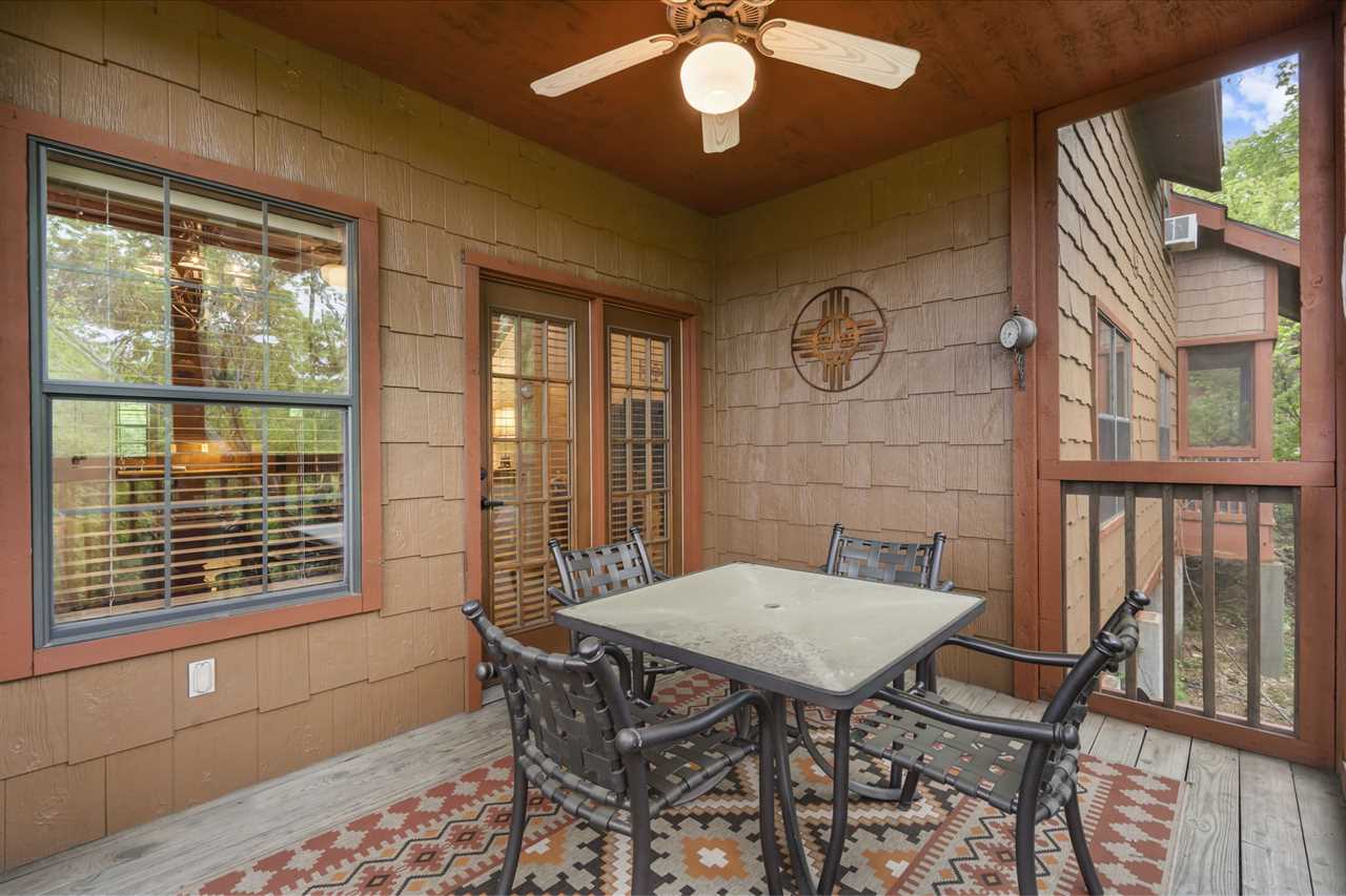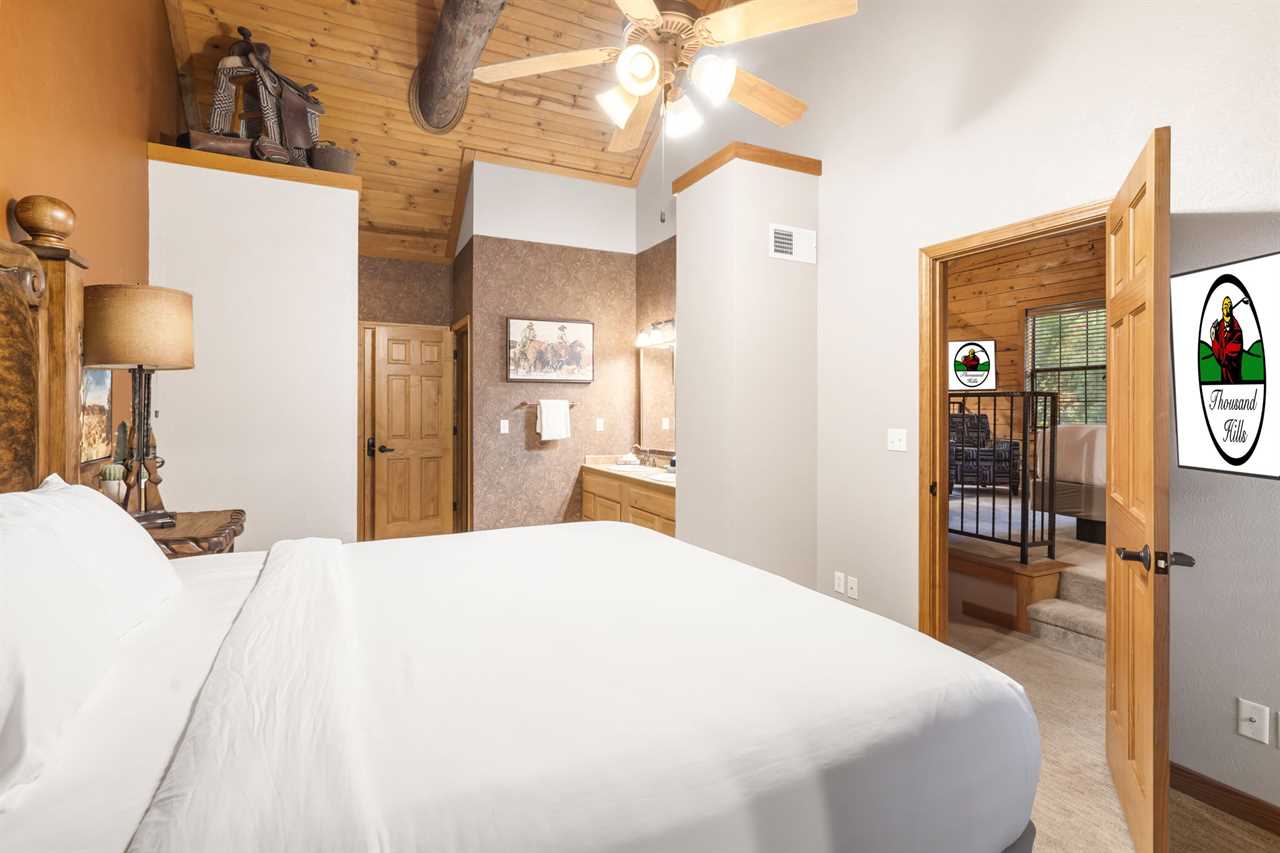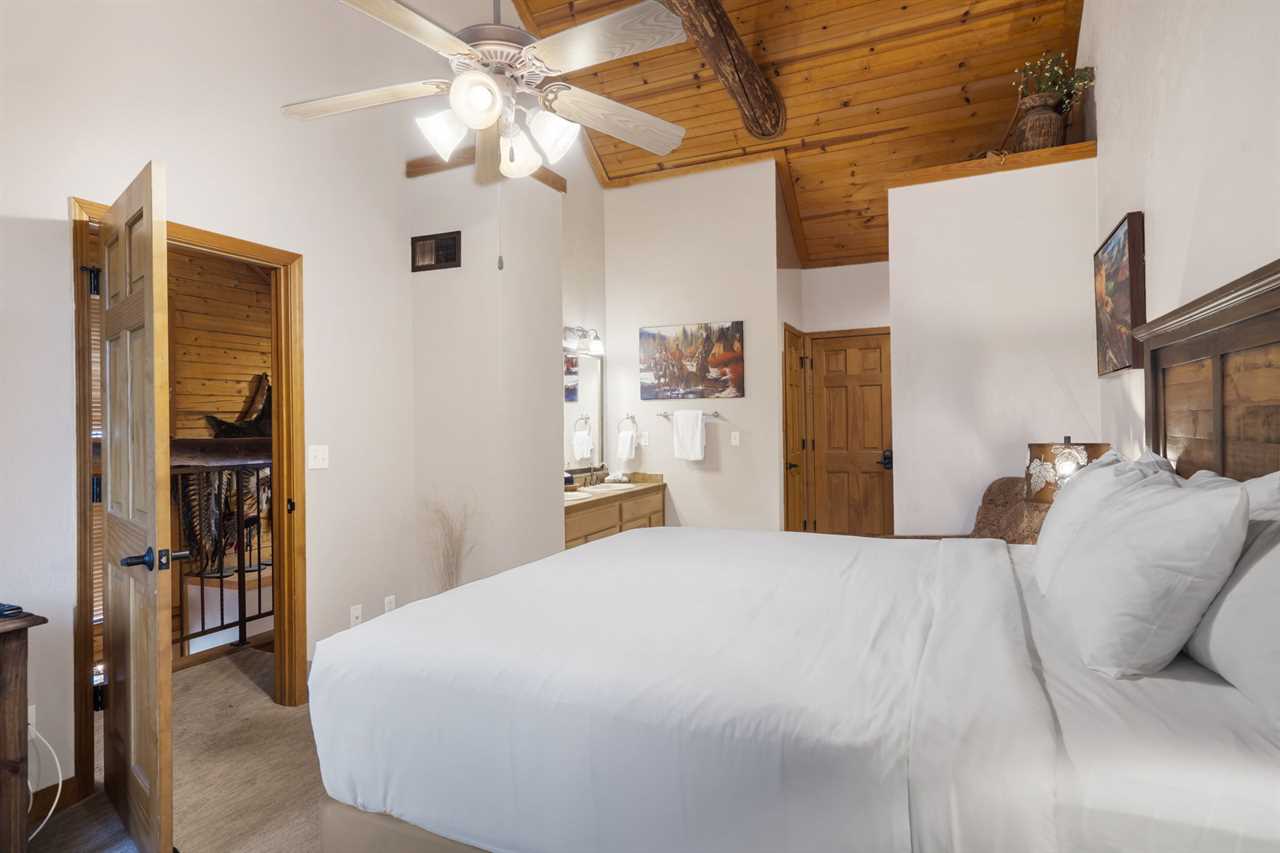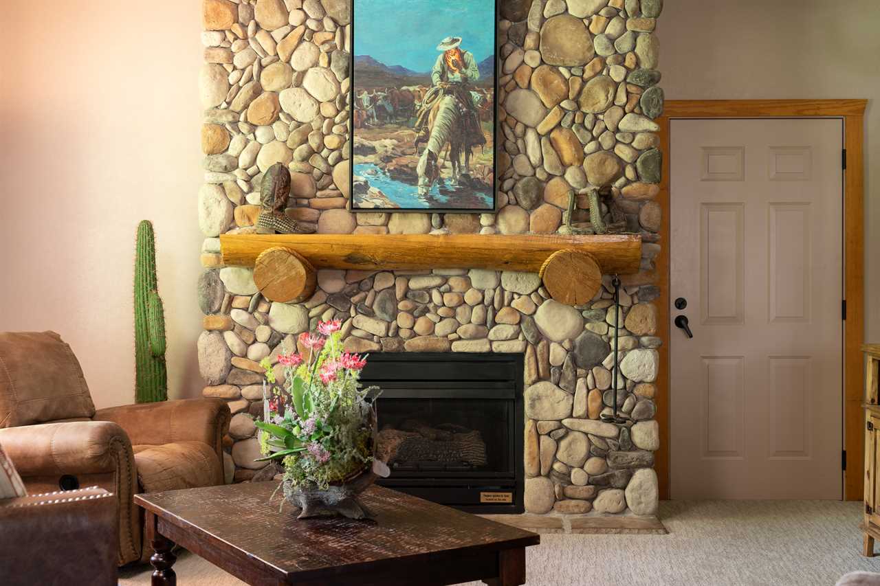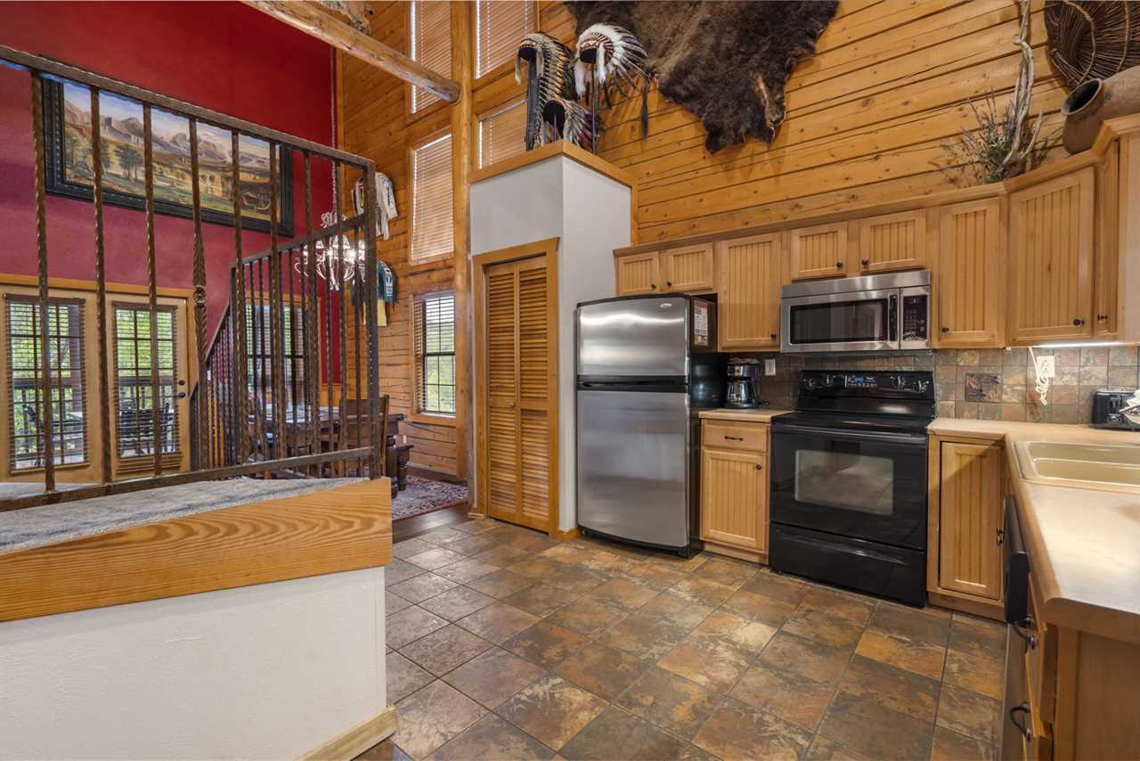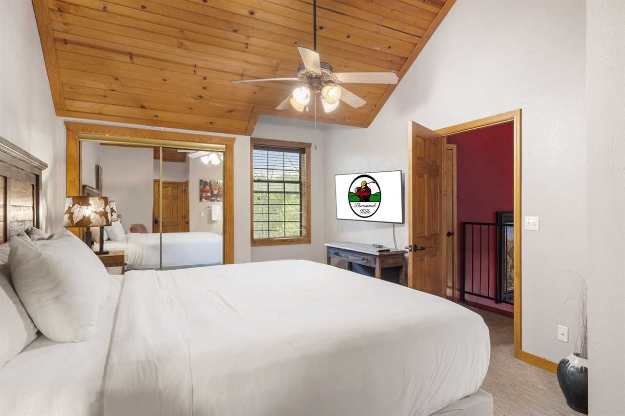 Perfect for two families or large groups traveling together, this walk-in level property features two fully connected lock-off cabins—each with its own distinct theme honoring Ozarkian heritage. One celebrates Native American art, the other captures the charm of the Old West. With plenty of space, privacy, and upscale amenities throughout, you'll enjoy an unforgettable stay in the heart of Branson—just minutes from top shows, restaurants, and golf.