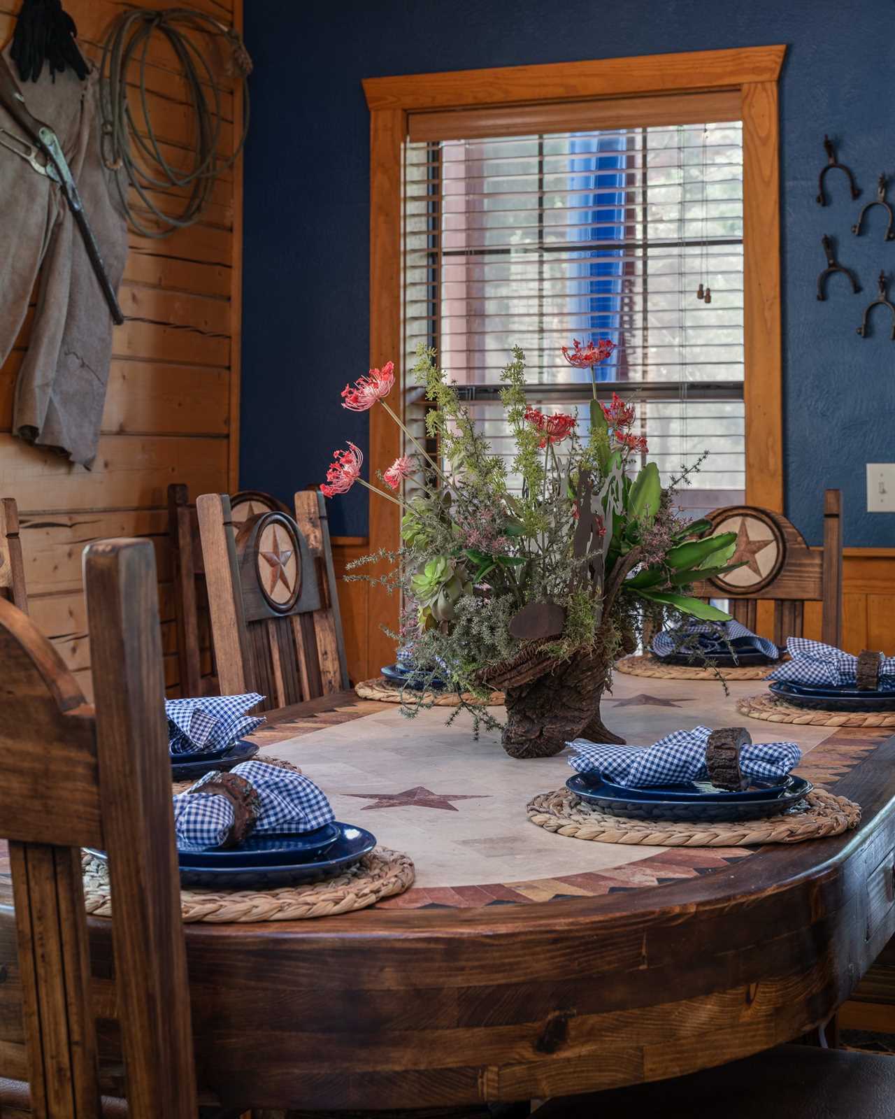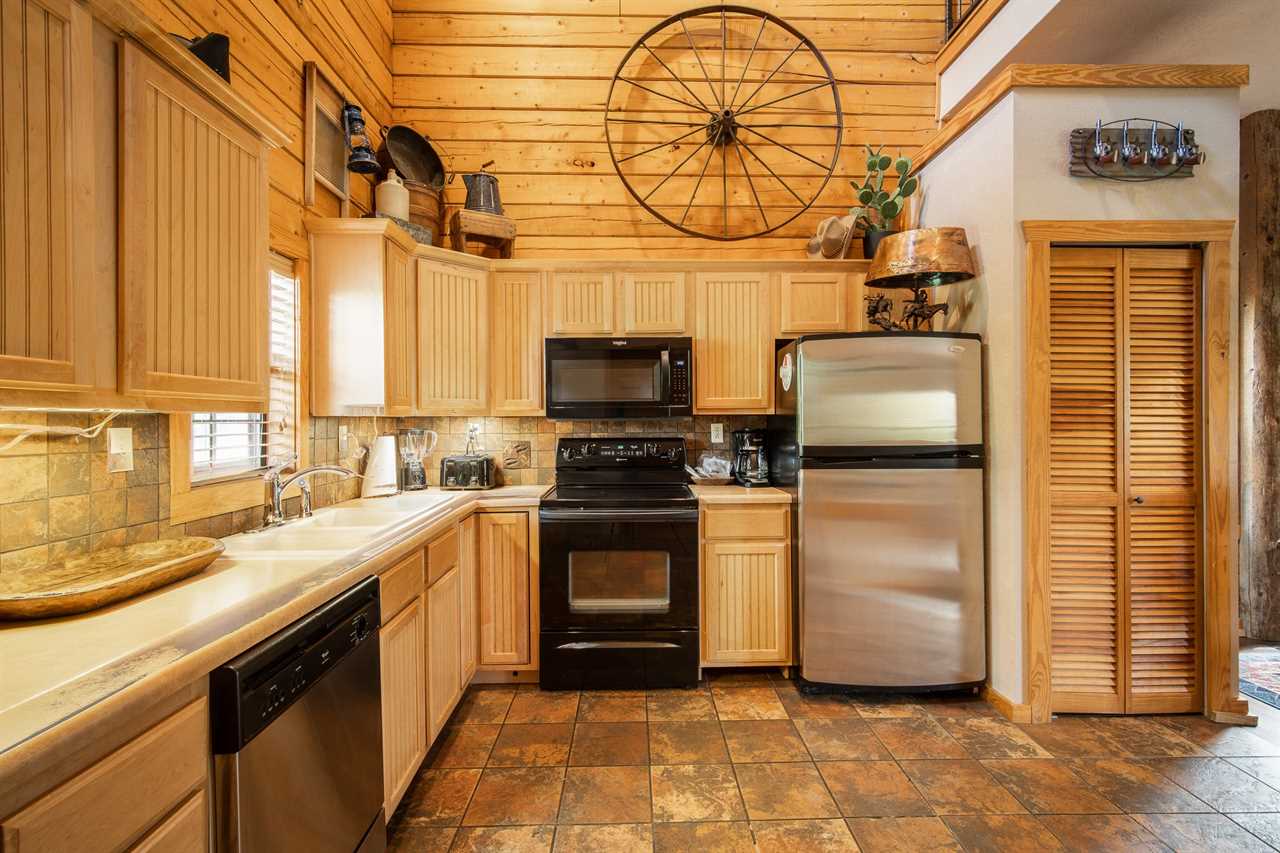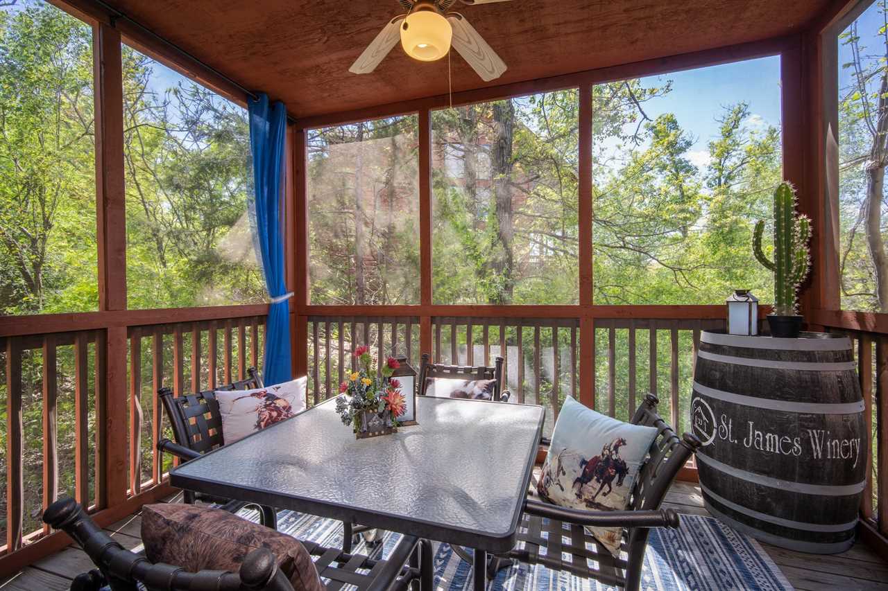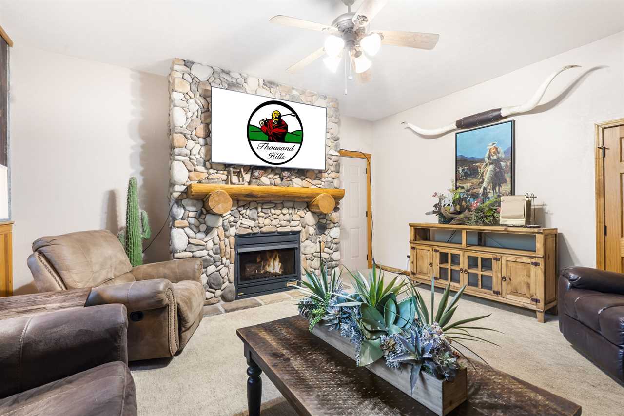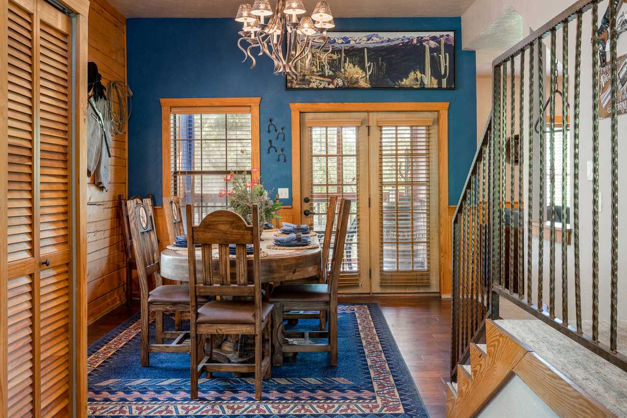 Perfect for two families or large groups traveling together, this walk-in level property features two fully connected lock-off cabins—each with its own distinct theme honoring Ozarkian heritage. One celebrates Native American art, the other captures the charm of the Old West. With plenty of space, privacy, and upscale amenities throughout, you'll enjoy an unforgettable stay in the heart of Branson—just minutes from top shows, restaurants, and golf.
