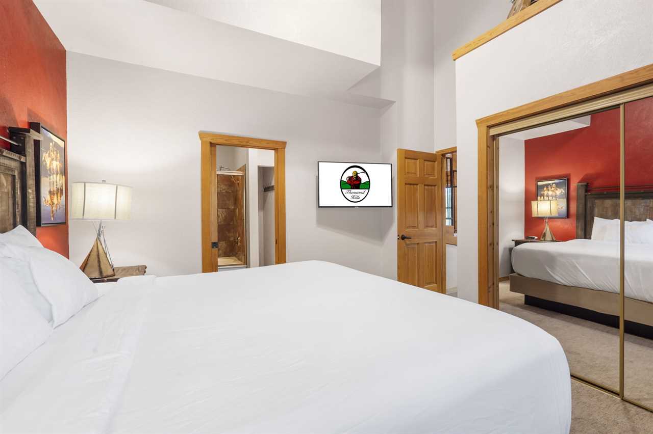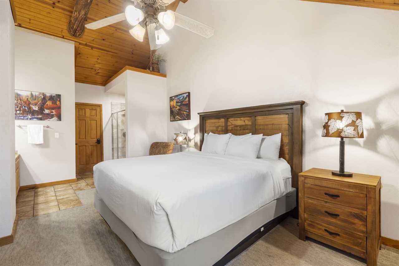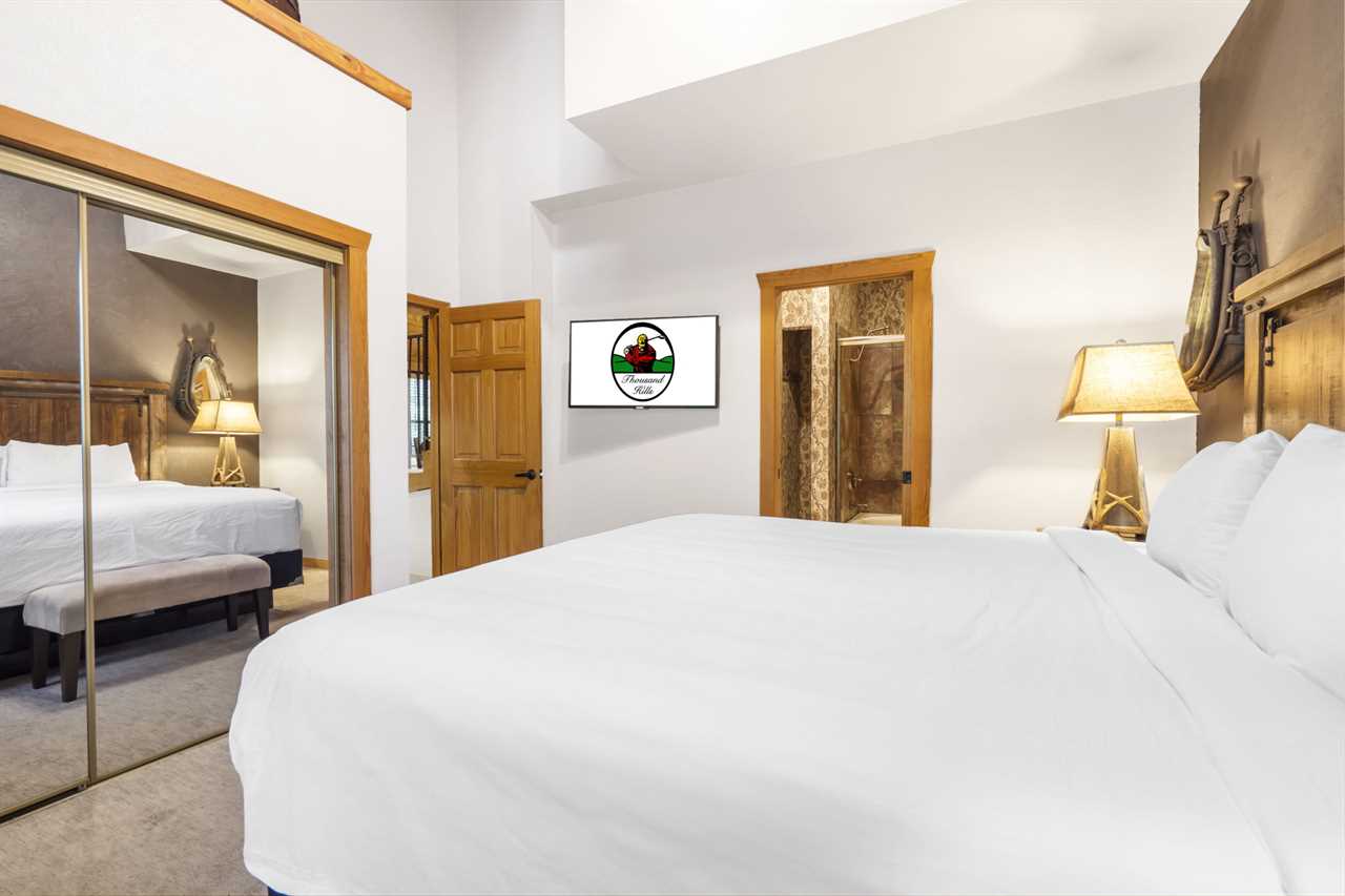 ✦ ✦ Bedroom 4 – King bed, TV, private bath with double copper rain shower