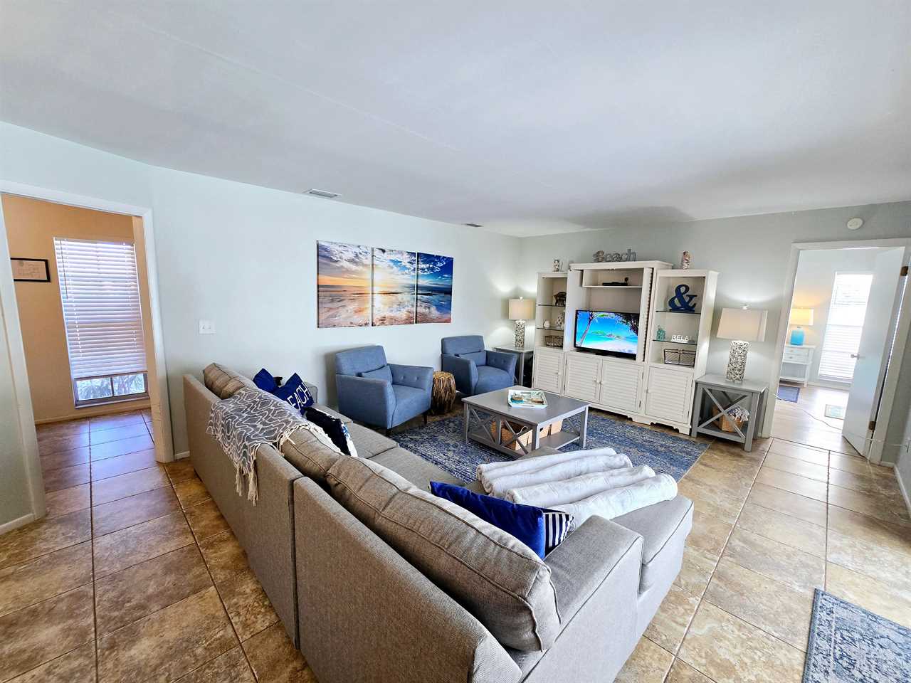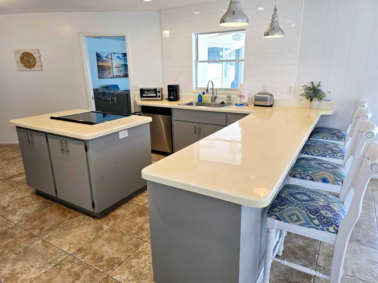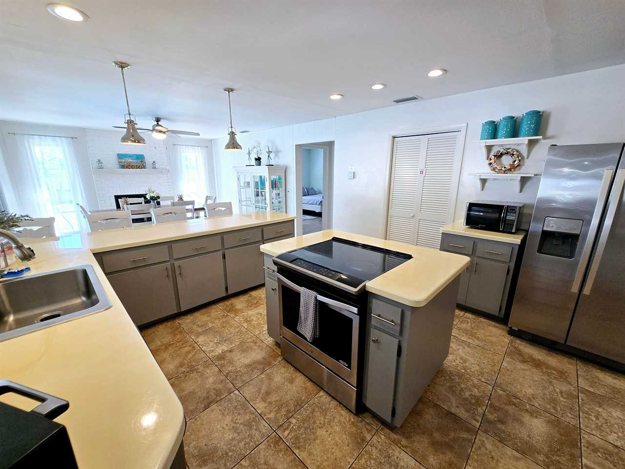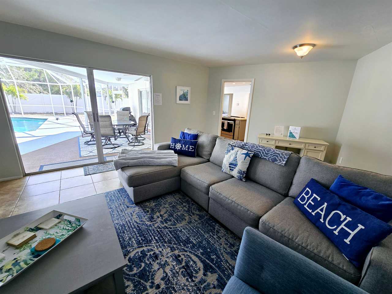 This Beach home is ready to host your next getaway in Bradenton, FL! The kitchen is open and airy and there is a big dining room off the kitchen with a slider out to the pool. The kitchen is fully equipped with everything needed to make your favorite home-cooked meals.