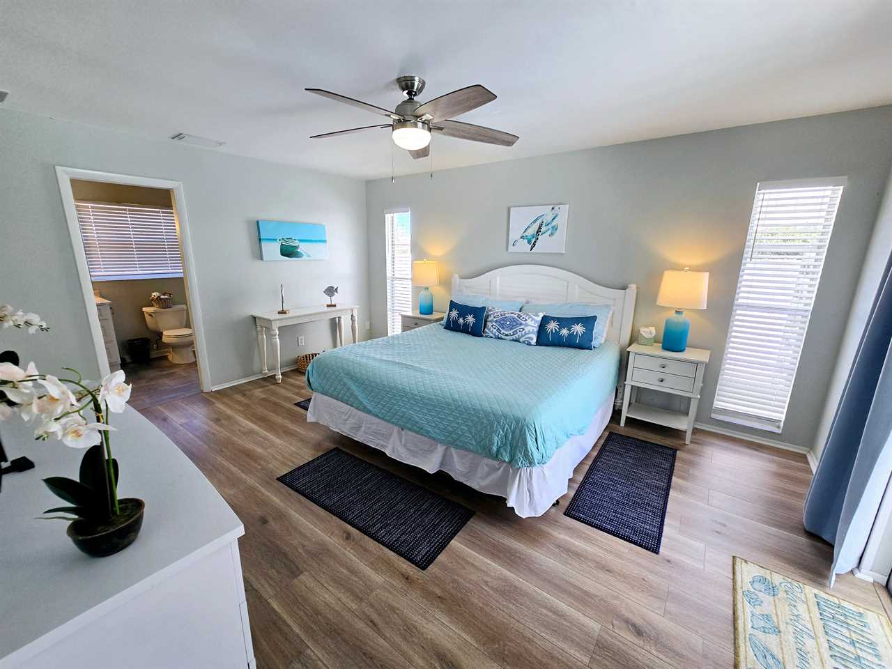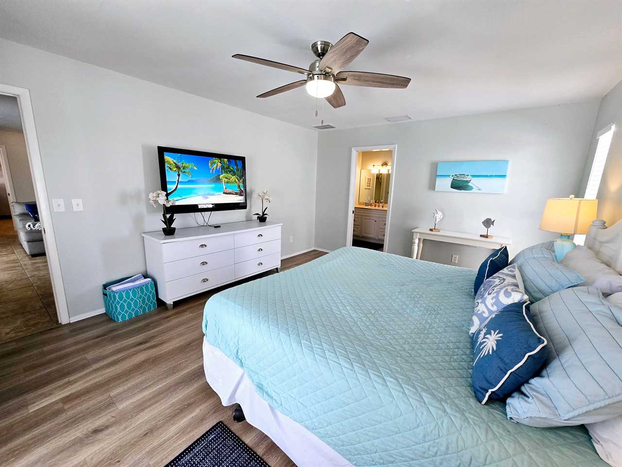 Bedroom 1: Master Bedroom, King Bed, Ensuite Bathroom, TV, Exit to Pool Deck