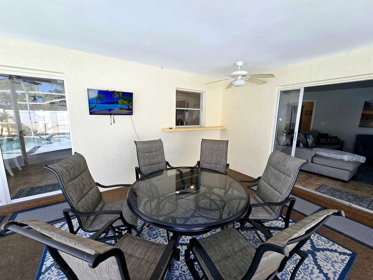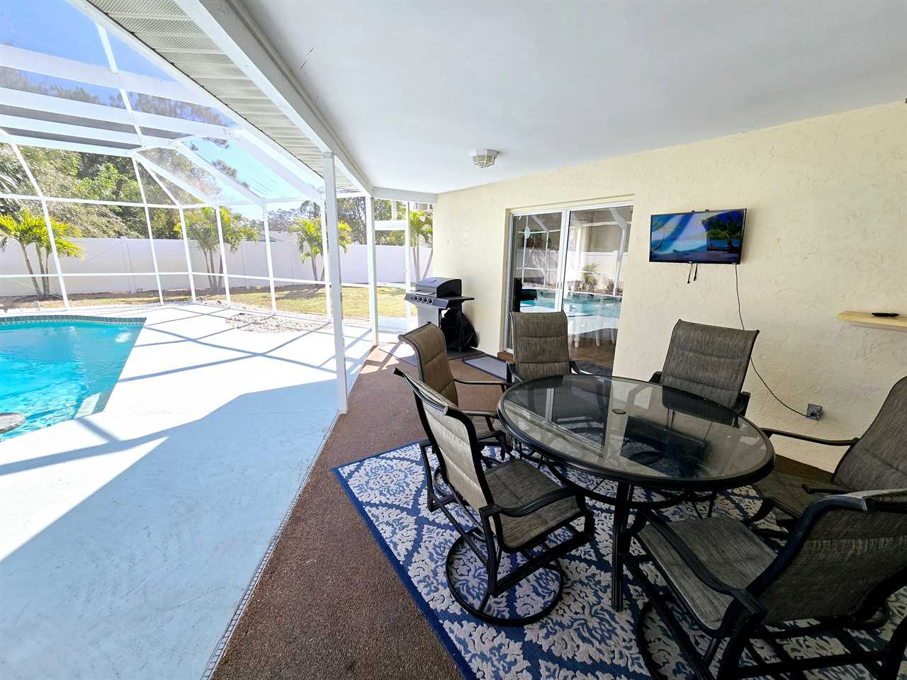 Spend your day relaxing by the beautiful Solar Heated pool, soak up some rays, take a dip, and enjoy the table inside the pool to rest your drinks! The exterior comes fully equipped with an additional table and chairs as well as a TV outside for your enjoyment. Enjoy cooking on the BBQ? One is conveniently located for your use during the stay.