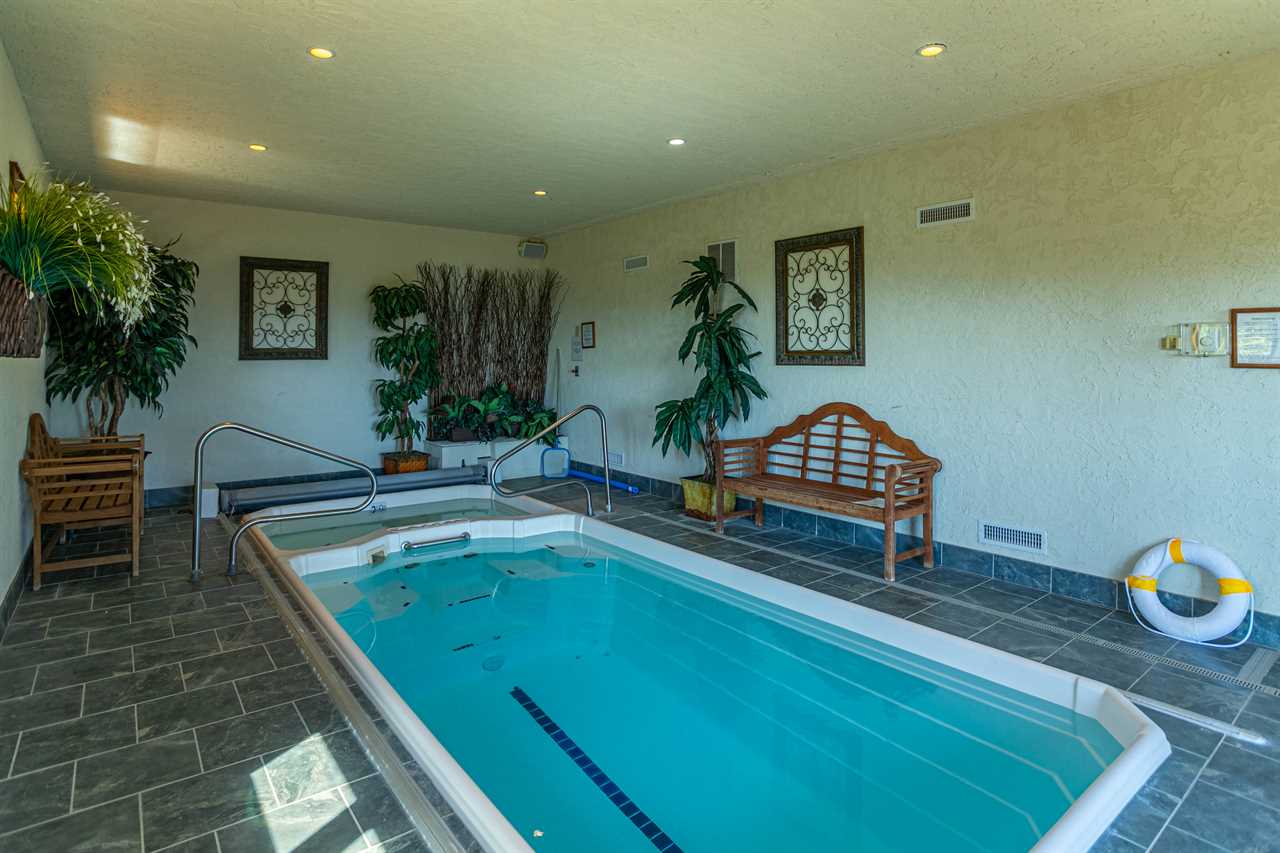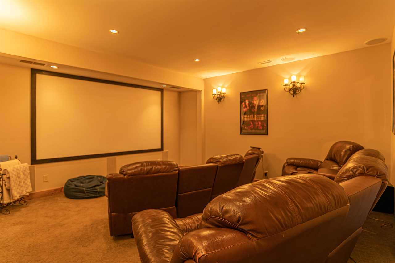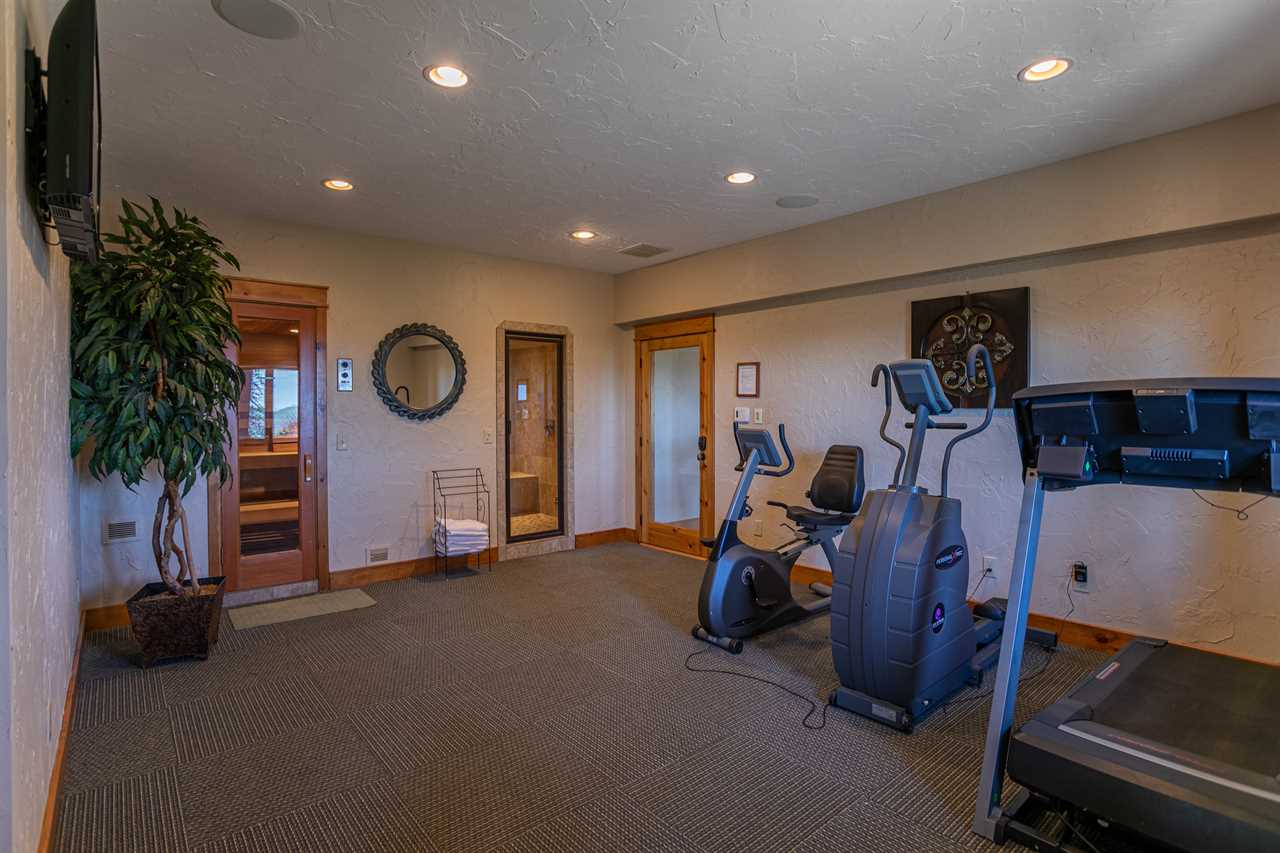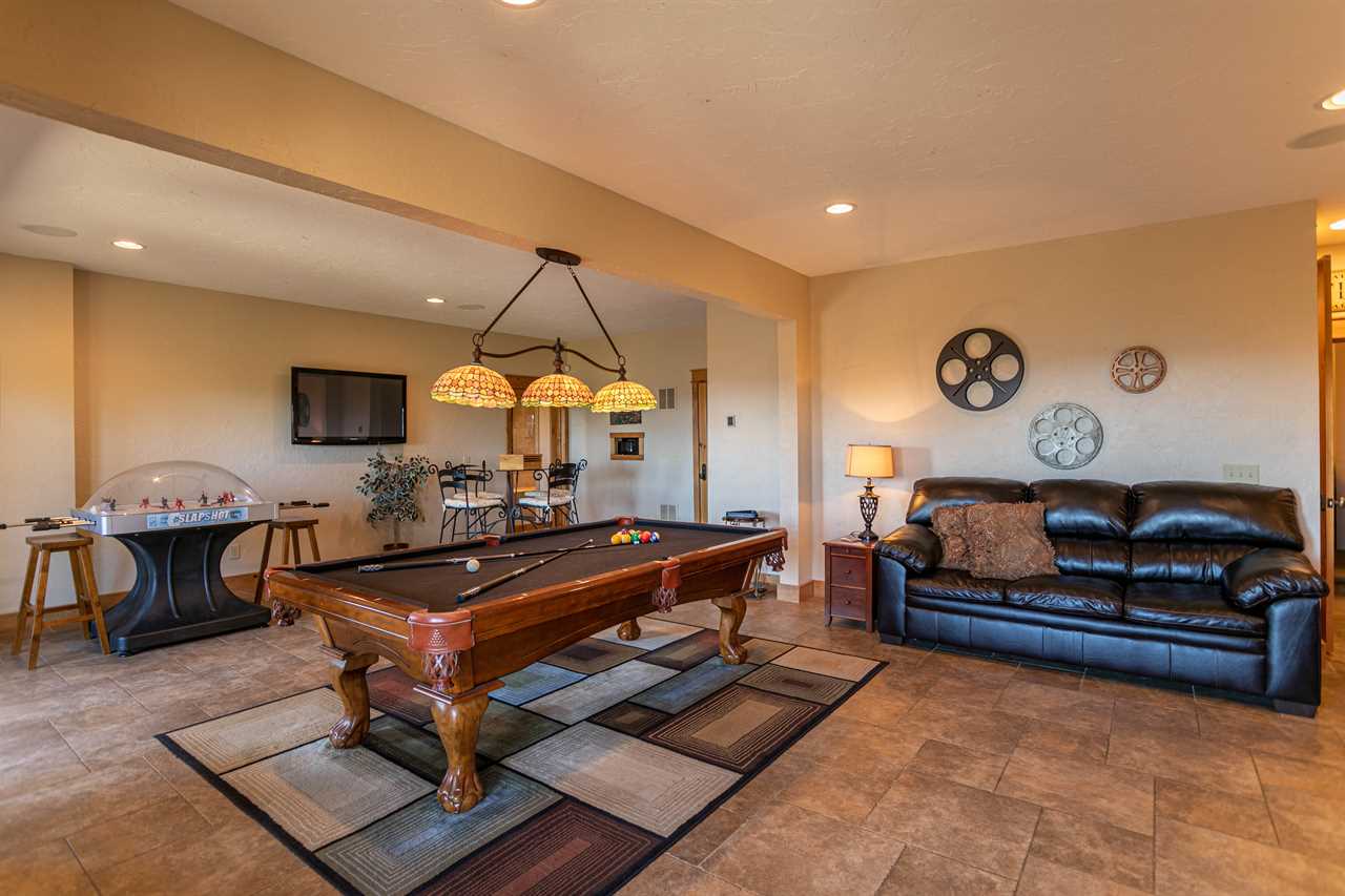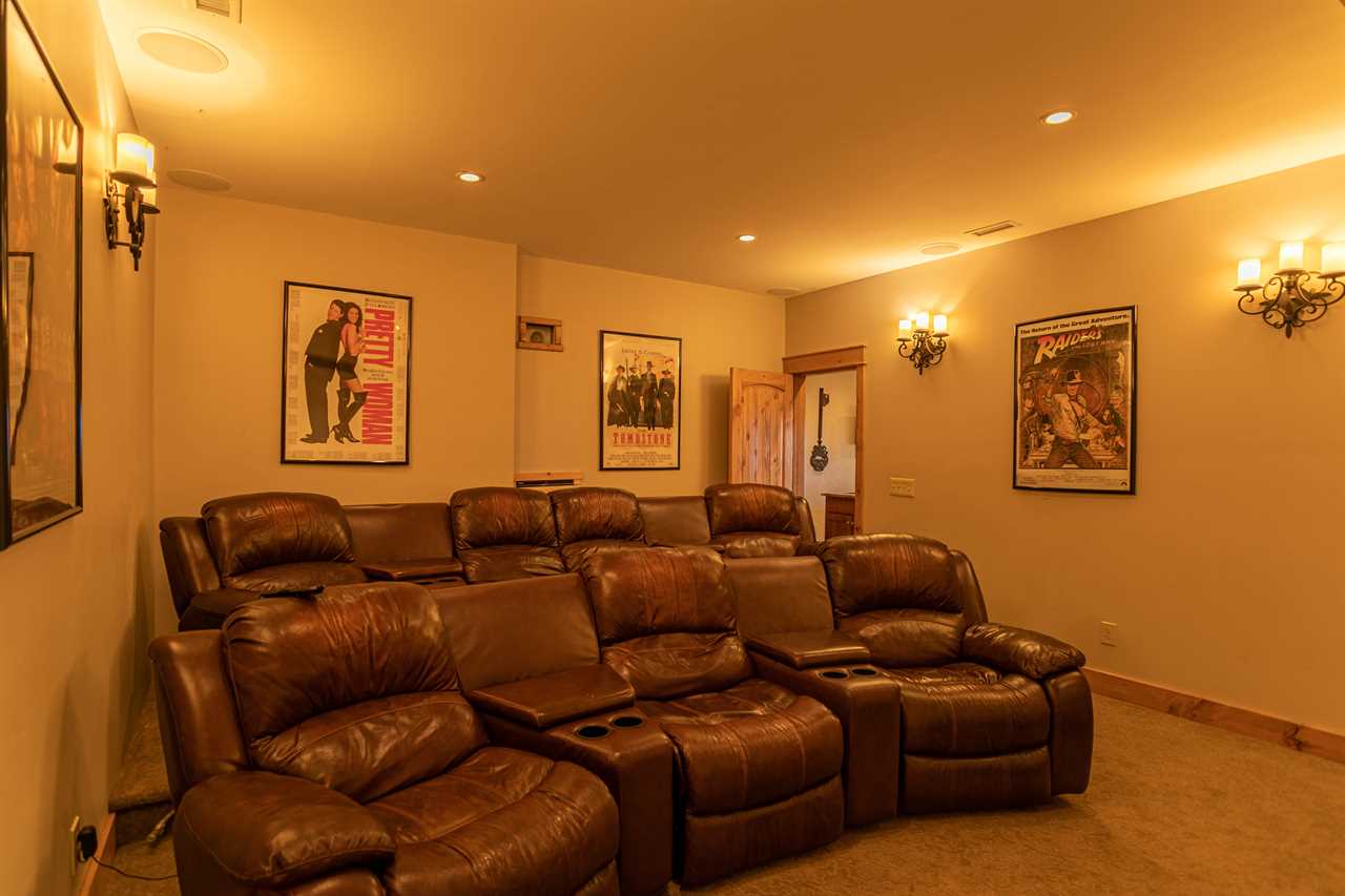 Downstairs is a 600 square-foot garage, a game room with a pool table and dome hockey table, sleeper sofa, a half bathroom, a full wet-bar with full-size refrigerator, microwave, dishwasher, wine chiller, sink and granite countertops, a theater with a 10-foot screen, 7.1 surround sound with butt-kicker, and 7 leather recliner theater seats, an exercise room with an elliptical trainer & recumbent bike, a steam room with ceiling shower, Swim Spa with hot tub, and a sauna. Gamers in the group will enjoy playing on the X-Box One and PlayStation4 consoles. Some games are provided but feel free to bring your favorites along!