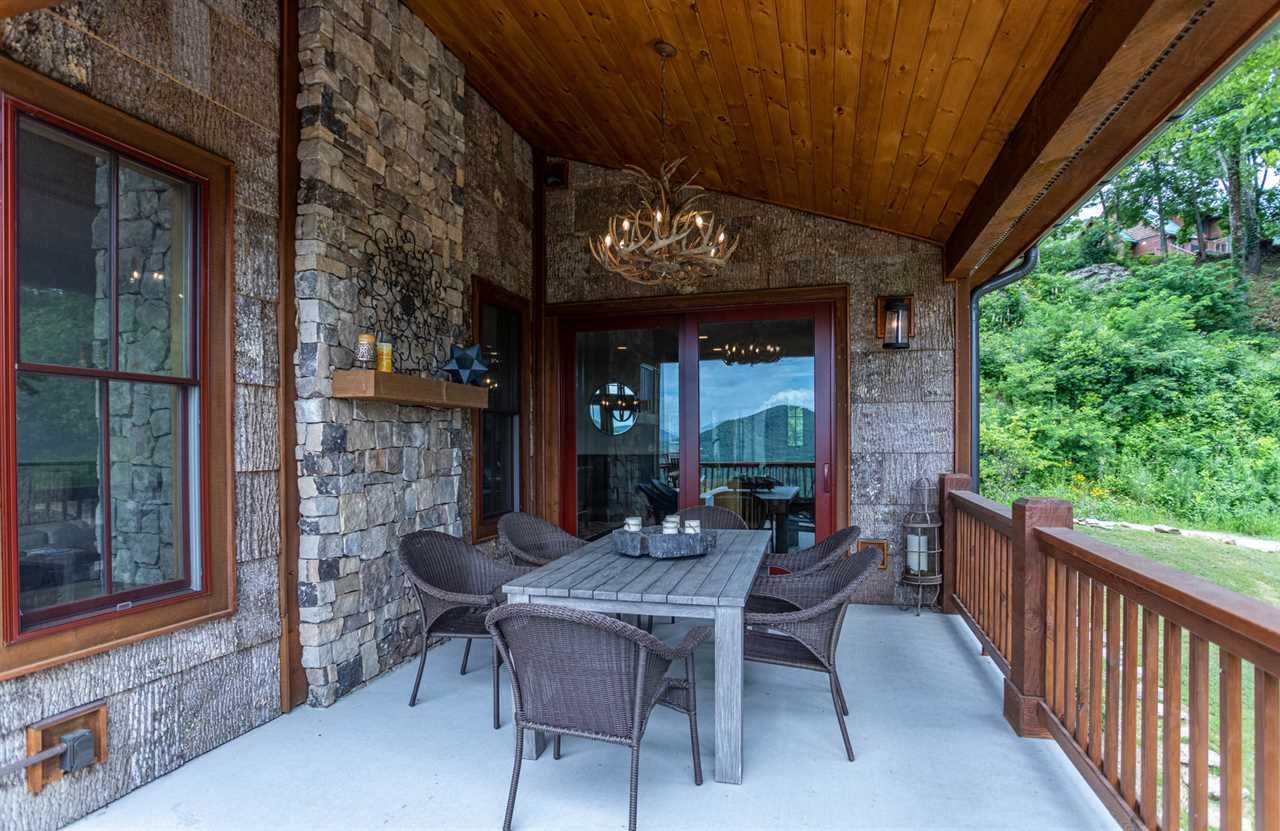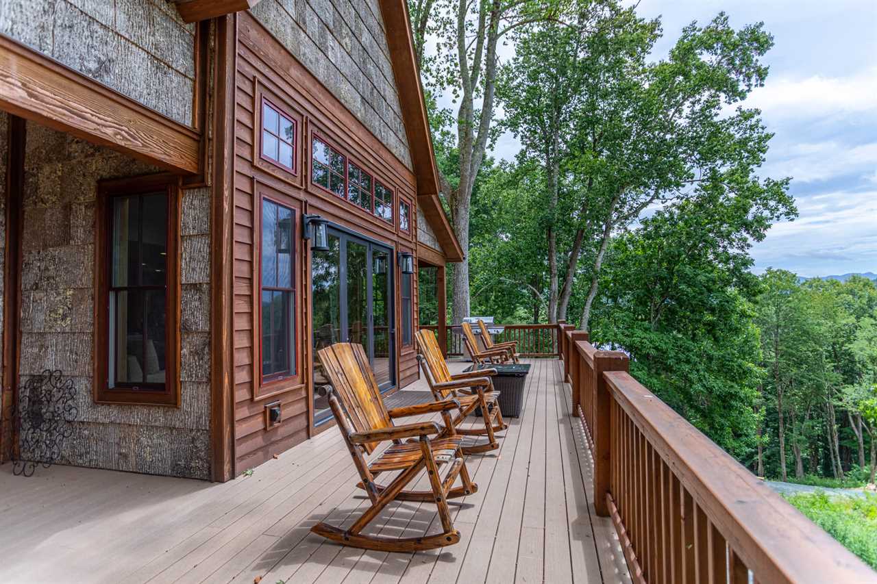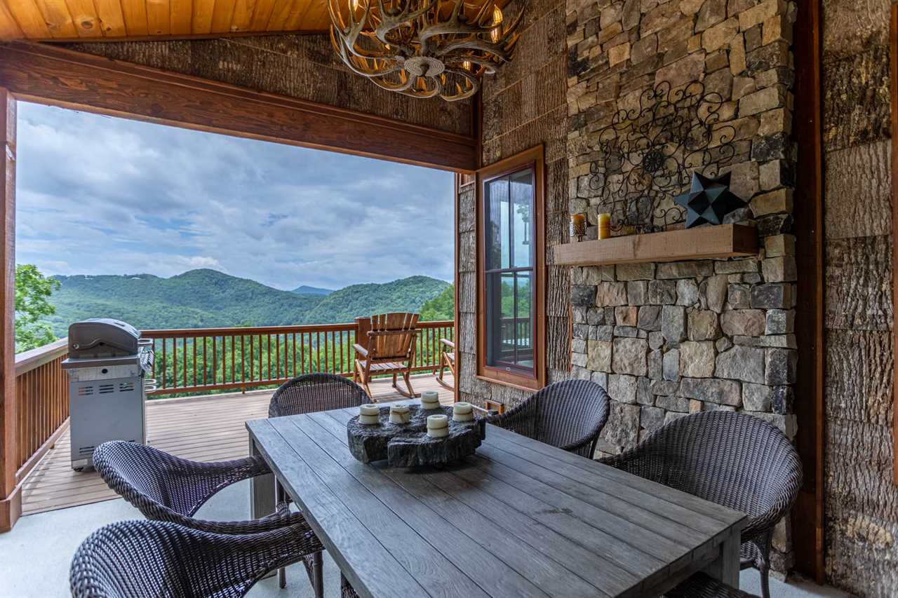 A lovely custom home with its level parking and easy one-step access, Bear Tracks is welcoming to all. Step in and soak up the mountain views. An upscale kitchen, complete with Commercial Thermador and Bosch appliances, prep sink, and a wine cooler, has space for all of your meal preparations. The dining table comfortably seats six, with seating for four at the bar. Just off of the kitchen is a covered deck with dining seats for six more and a gas grill. Facing the mountain view are four rocking chairs and a gas fire pit on the upper level.