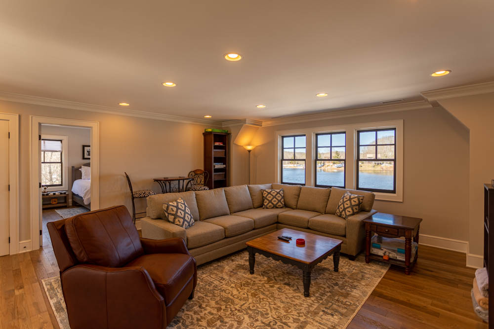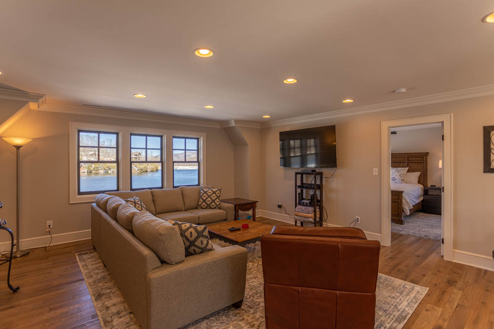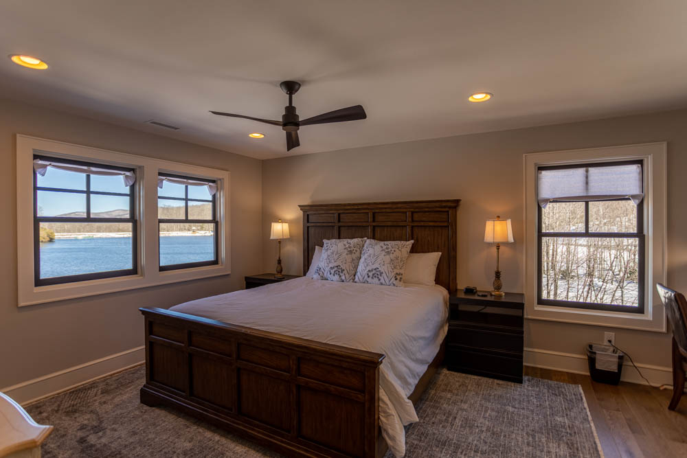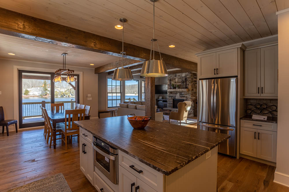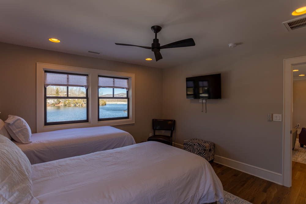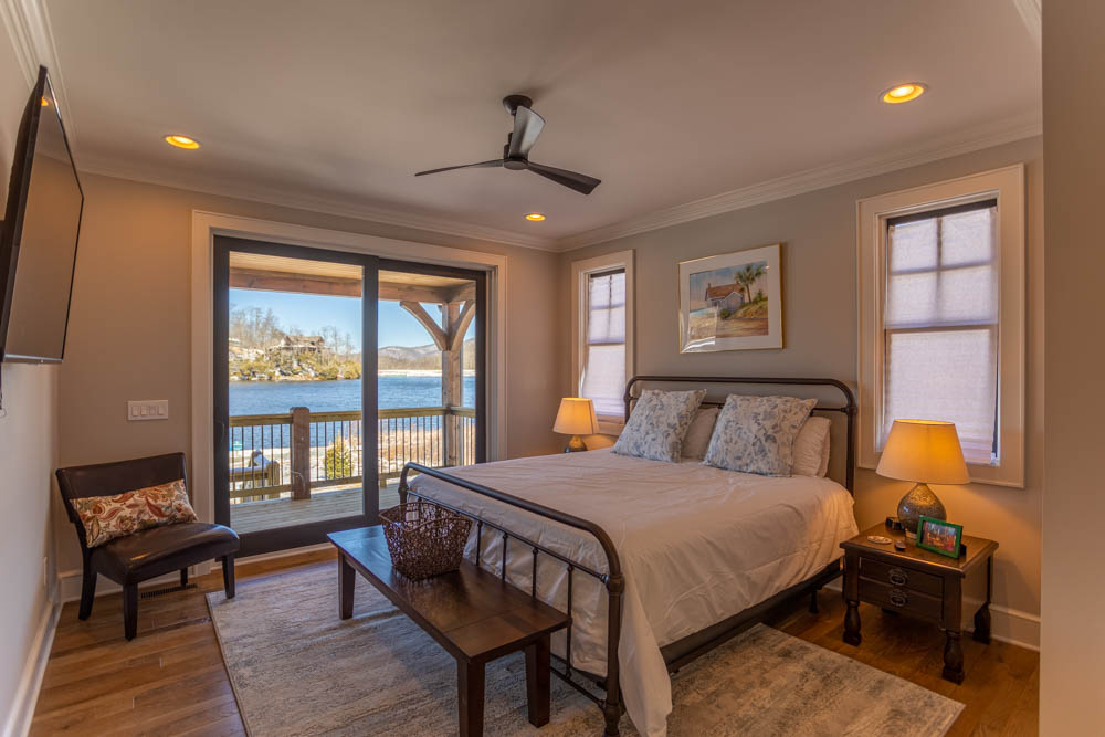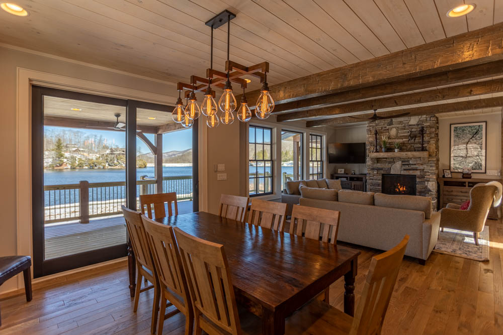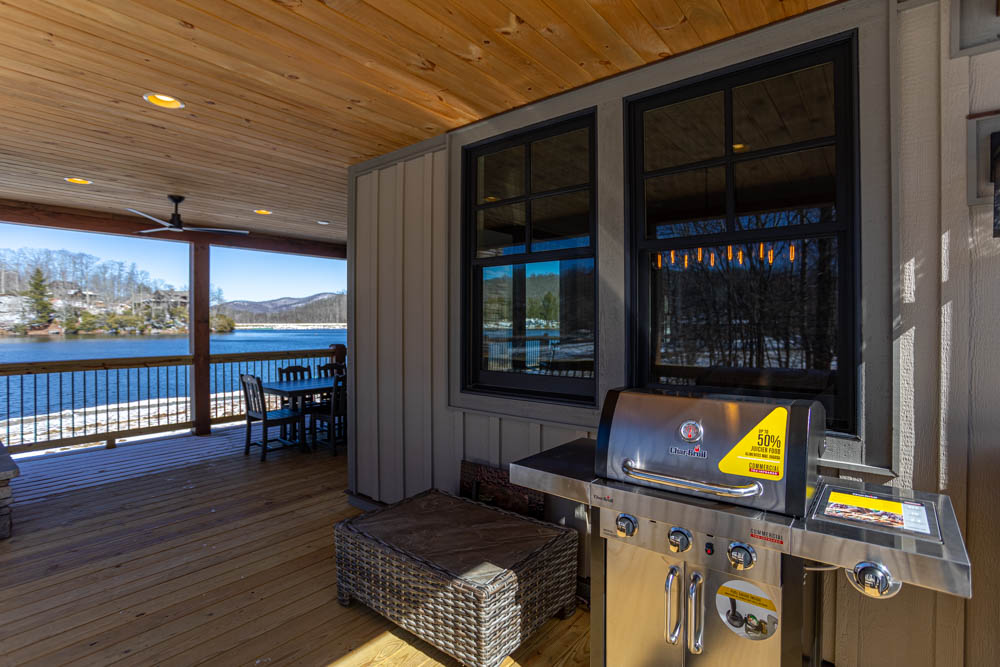 BEAUTIFUL HOME IN THE LUXURIOUS GATED SWEETGRASS COMMUNITY! LAKEFRONT LIVING AT ITS FINEST!! An easy 15 minute drive to Blowing Rock, Lakeshore Retreat is a gorgeous home just a few yards from the lake in the beautiful gated community of Sweetgrass. With paved, flat parking, there is easy access to this four bedroom, three and a half bath home. From the first step inside, you will fall in love with the view of the lake, lapping just a few yards away from the front deck. A large picture window means you can enjoy both the remote controlled gas-log fireplace, TV, and the ever-changing lake view with Grandfather Mountain behind it. Exposed distressed beams overhead evoke the mountain lodge style. The dining area easily seats 6, with room for several more at the island. In the kitchen, there is a coppered farmhouse style apron sink, live edge dark leathered granite, all stainless appliances including a gas range, a Keurig, and a standard coffee maker. Off of the kitchen is the laundry room with a sink for ease of cleaning up. The Master King bedroom is off of the living room. It features deck access, the lake view, a Roku TV, and a private bath. In the ensuite bath, there is a custom tiled shower, a large soaking tub, and double vanities. The leathered granite at the vanities matches the counters in the kitchen. There is also a half bath off the entry hallway. Upstairs is a second living area, great for families to unwind together. A large sectional invites you to sit and chat or watch a movie. A selection of board games are there for bonding on a quiet afternoon. Three bedrooms are upstairs. There is a second master with a California King bed, the lake view, a TV, and its own custom tiled bath. Two twin beds are in the third bedroom, which could also be put together for a king sized sleeping area. The fourth bedroom has a Queen bed along with a low profile twin over twin bunk bed. Between these two bedrooms is a third full bathroom. Outside, you'll have plenty to do and see. The deck has plenty of seating for dining al fresco, a woodburning fireplace, and a new grill. The deck leads down to the lawn on the shores of the lake. There is a walking trail that circles the lake, as well as other trails within Sweetgrass. Hike to the other side of the lake and gaze upon Lakeshore Retreat from across the water while you enjoy a picnic at the gazebo on the dam or visit with others in the neighborhood by the community firepit. ABOUT SWEETGRASS Within the neighborhood is Boone Fork Creek, which winds through the middle of Sweetgrass and has been designated as a North Carolina Outstanding Trout Stream. Just a little ways up the road at the heart of SweetGrass is the 22-acre lake fed by Boone Fork Creek! Bring your own canoes/kayaks and paddles to enjoy this beautiful lake! Sweetgrass features beautiful mountain vistas, a lake and stream, and miles of pristine mountain trails which are perfect for hiking, riding, and biking. At Sweetgrass you'll find a mountain playground like no other. Here, each season brings with it something spectacular. The springtime is ablaze with wildflowers, the summers are filled with warm days and cool nights which are perfect for daytime outdoor adventures and evenings around the firepit, fall's foliage is absolutely stunning, and the snows of winter transform the area into a picturesque winter wonderland. Each season is perfect for outdoor recreation, but there is much more to do here than simply enjoy the splendor of nature. There are also a variety of festivals, community events, upscale shops, and gourmet restaurants to enjoy in Blowing Rock. Combining the welcoming mountain living of Lakeshore Retreat, Sweetgrass, and Blowing Rock will enable you to enjoy a lifestyle that is unrivaled by that of any other High Country location. Located just 2 minutes from the Blue Ridge Parkway, 12 minutes from Main Street Blowing Rock, 15 minutes from Tweetsie Railroad Theme Park and Appalachian Ski Resort, 20 minutes from Boone and Grandfather Mountain, 30 minutes to Hawksnest and Sugar Mountain, you may find that Lakeshore Retreat is your new favorite place to call home. Please note this community has new development and construction on neighboring lots. Due to how sound travels, you may hear heavy vehicles & equipment during your visit. Located just 2 minutes from the Blue Ridge Parkway, 12 minutes from Main Street Blowing Rock, 15 minutes from Tweetsie Railroad Theme Park and Appalachian Ski Resort, 20 minutes from Boone and Grandfather Mountain, 30 minutes to Hawksnest and Sugar Mountain, you may find that Lakeshore Retreat is your new favorite place to call home. ADDITIONAL NOTES: - Sweetgrass is an environmentally conscious community that observes a catch and release fishing policy to ensure a sustained fish population. - The Sweetgrass neighborhood is a peaceful haven, and therefore does not permit firearm discharge, fireworks, golf carts, dirt bikes, four wheelers, loud music, or other objectionable noises that disrupts the quiet enjoyment of the natural environment. During quiet hours (10PM – 8AM), all outdoor noise should be kept to a minimum. - Rental guests have access to the grounds around the lake house, all hiking trails, and may fish in the lake. Guests are not permitted inside the lake house or on its patio. ATVs are not permitted on the hiking trails. - All BRMR homes offer well stocked kitchens with all utensils needed to cook meals. There is also a "starter set" of paper products at the house: a roll of toilet paper per bath, several garbage bags, a small vial of dishwashing liquid, a few tablets of dishwasher detergent, some laundry pods, a roll of paper towels, hand soap, shampoo, conditioner, body wash, and some makeup remover cloths. There are enough of these items for one night, or maybe two. We do not provide hair dryers. Towels and linens will be provided. - Check in is after 4pm and Checkout is by 10am - Must be at least 25 years old to reserve. This pers