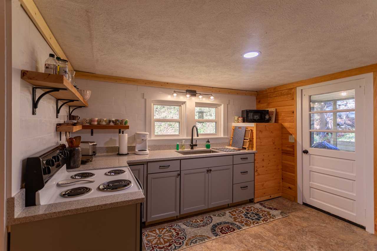As you drive down the gravel road that leads you to this home you feel your worries and stresses leave you. The next several days will be spent fishing and playing in the stream or just simply listening to the rushing water flow by from the front porch. Enter the home via 10 steps and welcome yourself to this simple cozy cottage. You will find the living room, dining area and kitchen as soon as you enter. There are several games for folks to choose from in the living room in case of a rainy day. The kitchen will be fully stocked with a Keurig coffee maker, cooking & eating utensils and best yet - just outside the back door you will find a cleaning station should you want to filet and eat what you caught earlier in the day.
