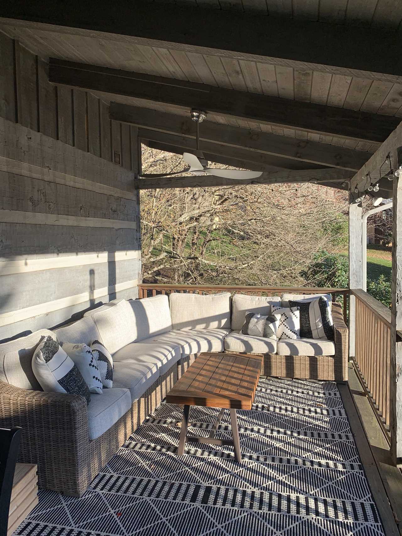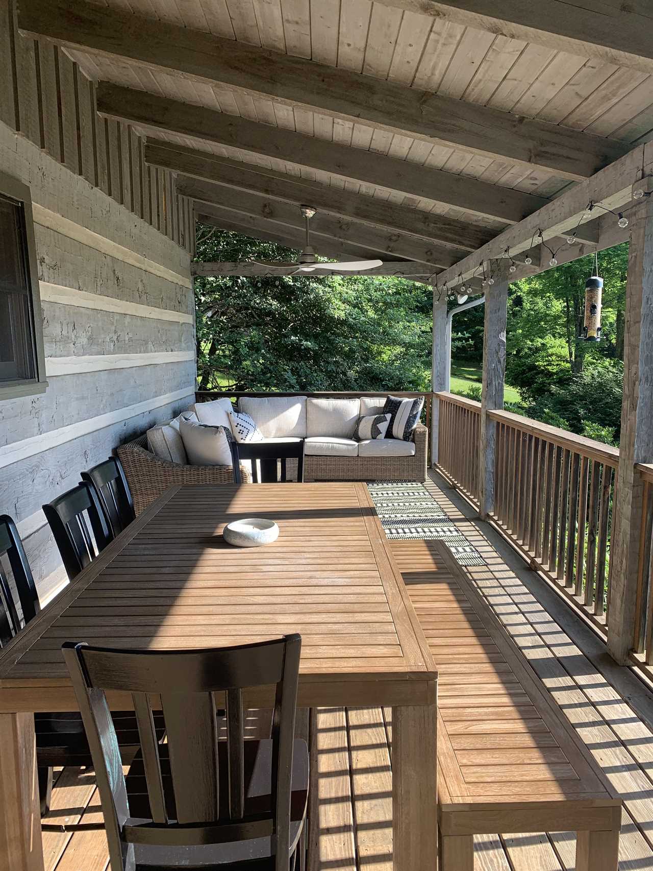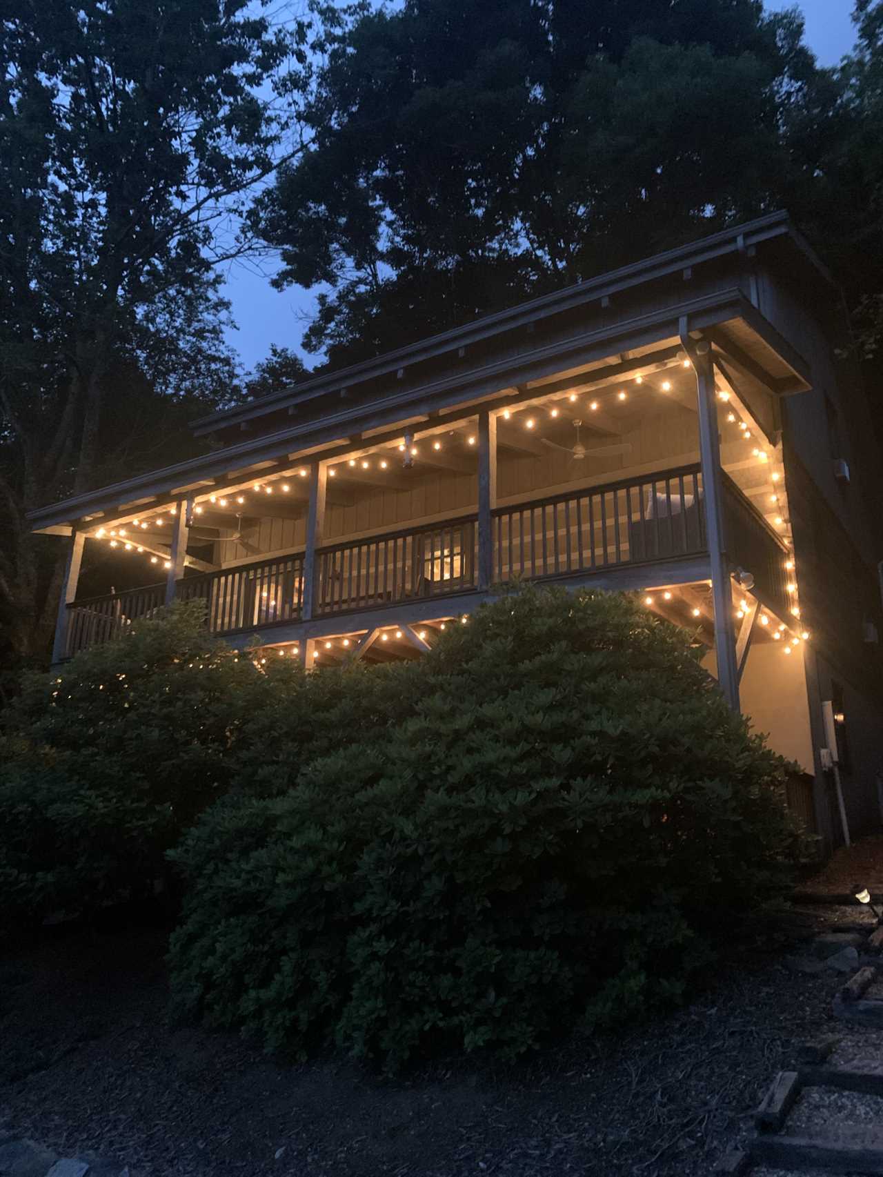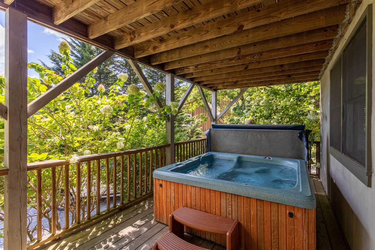 Enjoy the mountain air and views from the 2 covered decks at 4000 feet above sea level. The private 6-person hot tub is located on the lower covered deck.