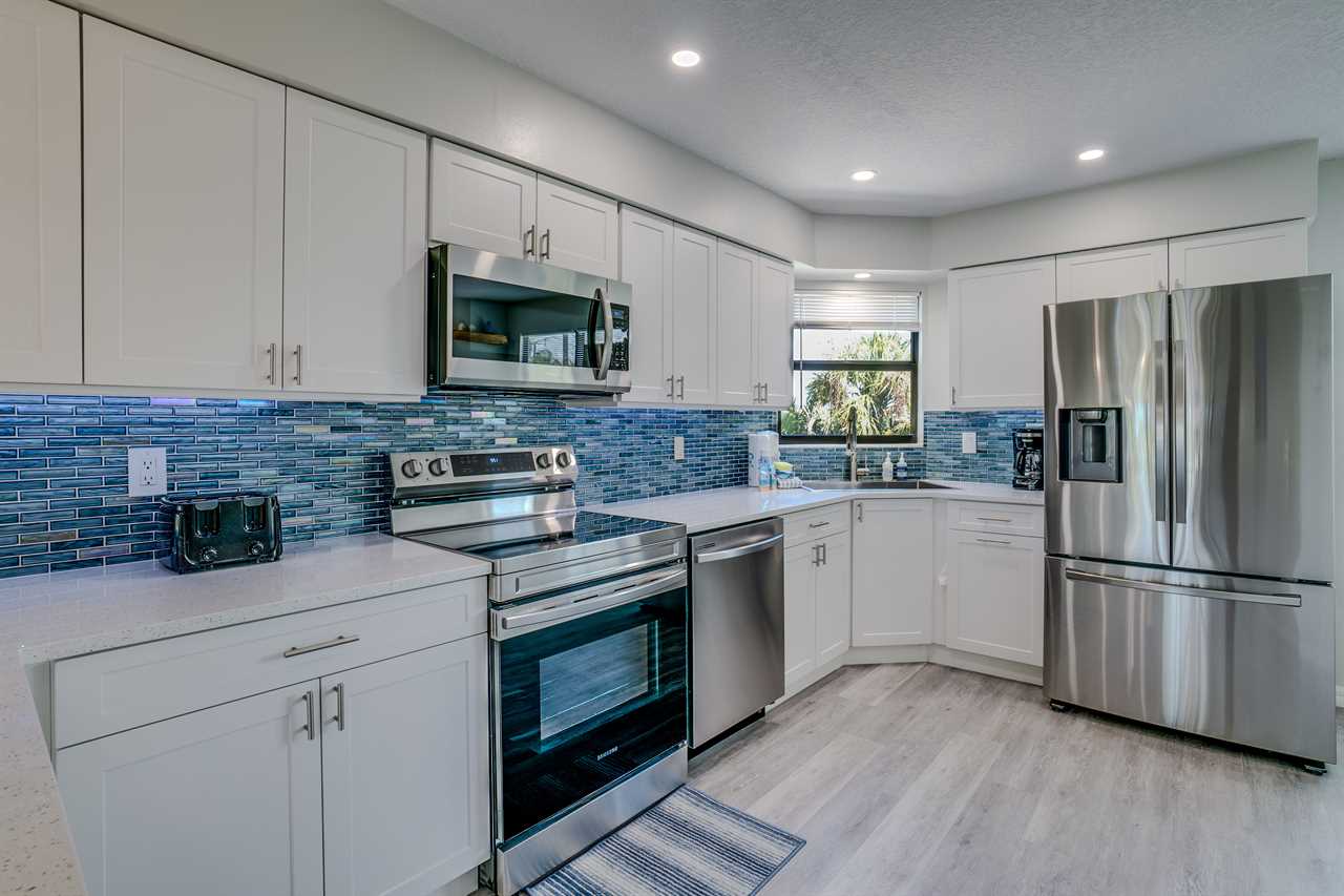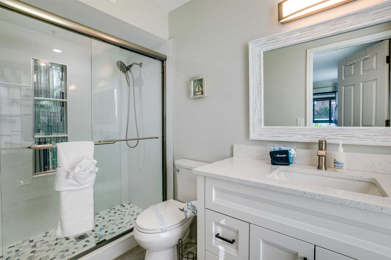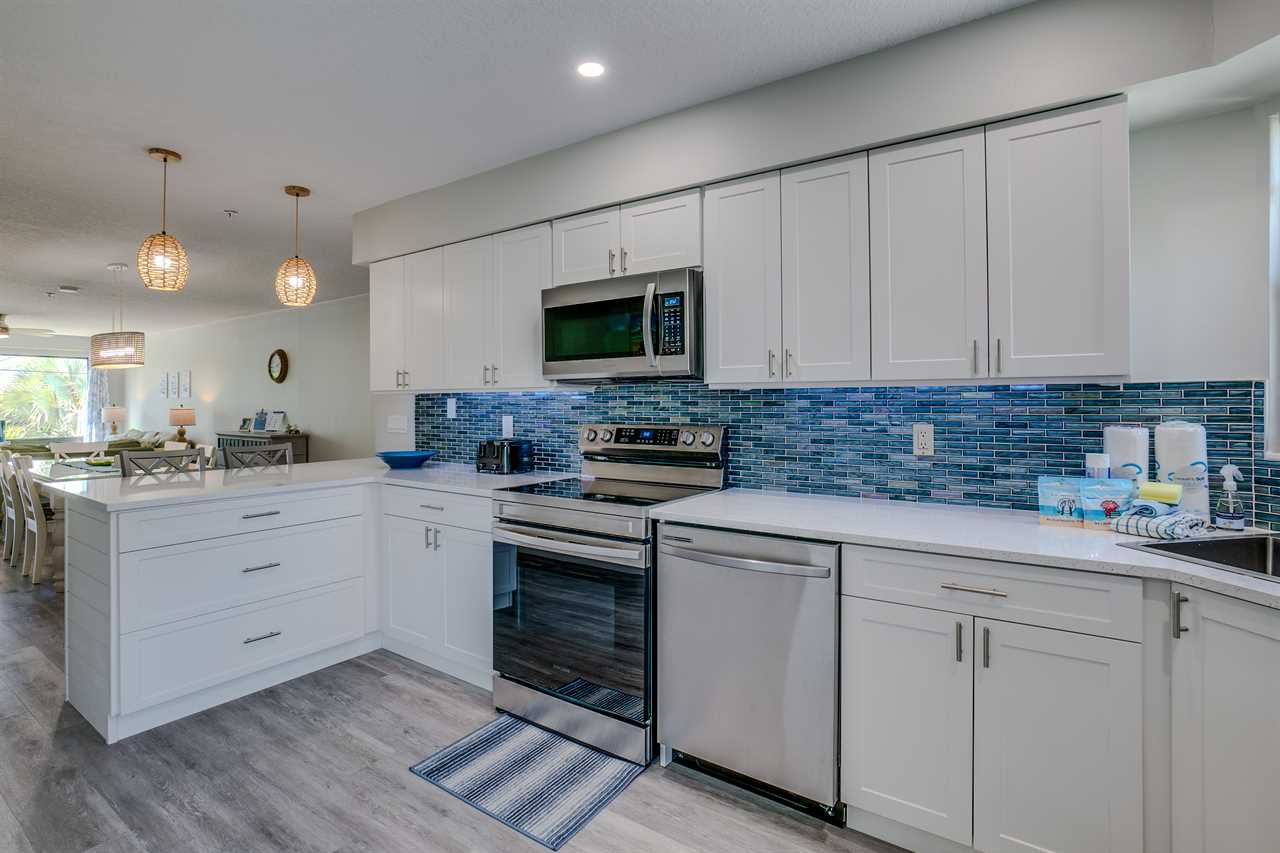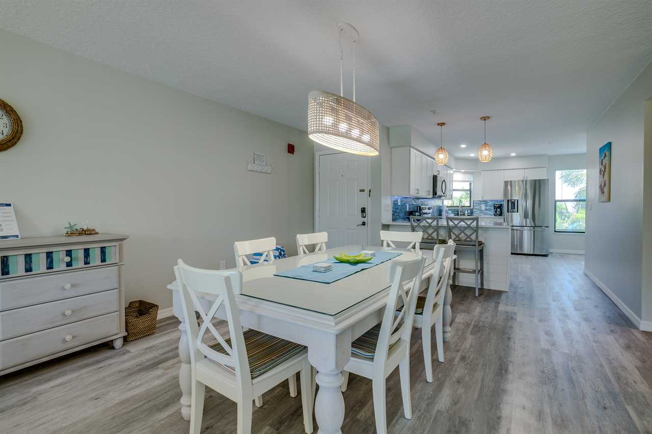 This unit is only one of four in the building which adds to its private appeal. With tons of natural light and an open and spacious feel, the living room/TV room (with a sleeper sofa) is beautifully decorated with a coastal feel and has sliding doors to the glass-enclosed balcony. Enjoy WiFi throughout the unit. Right off the kitchen is a large dining table. The fully-equipped kitchen has everything you will need to prepare the family dinner or a quick snack. For your convenience, there is a full-size washer and dryer in the unit.