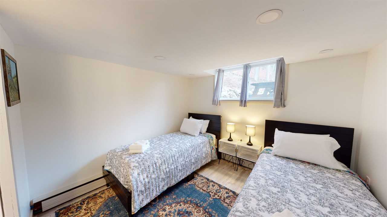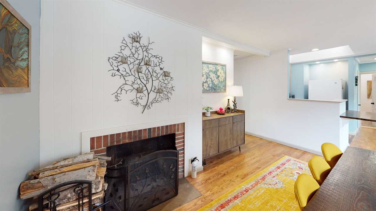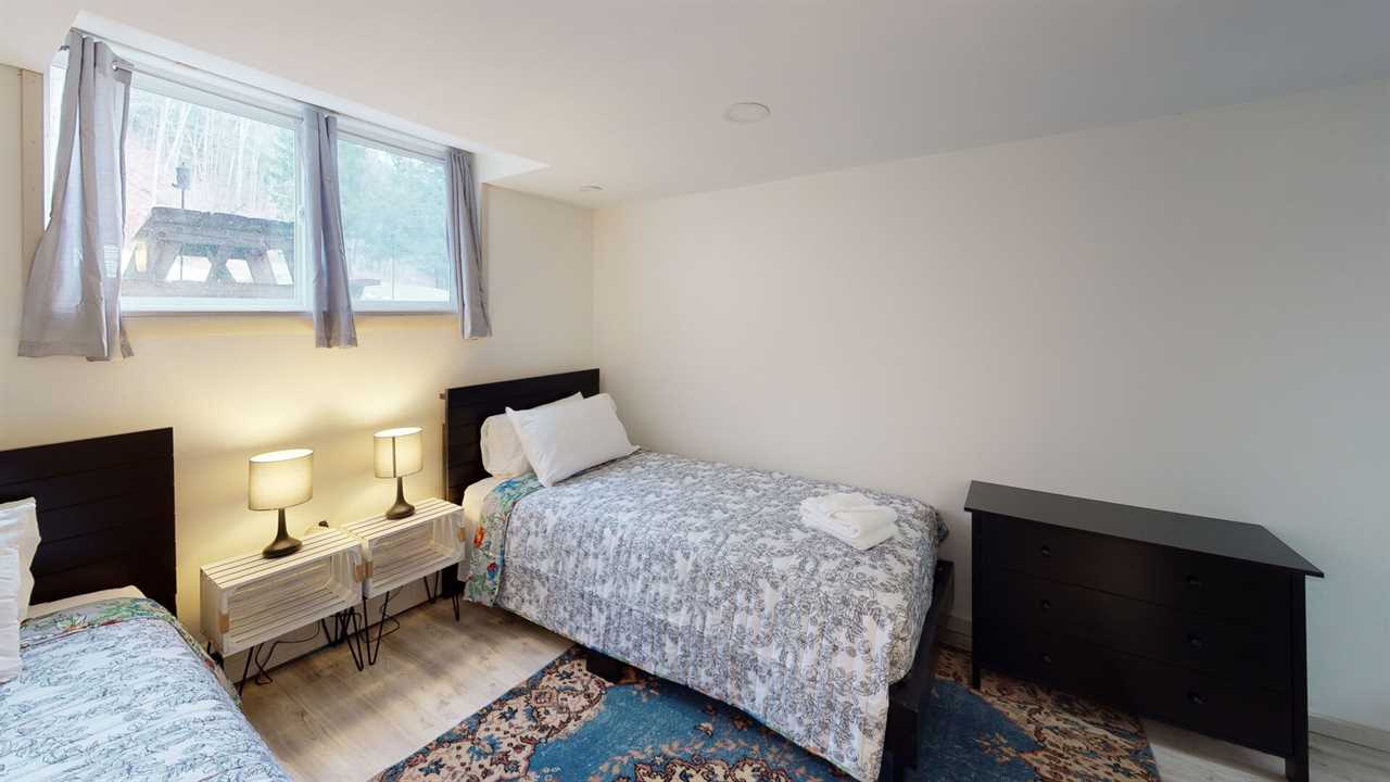 Inside, you'll find a beautifully curated home filled with warmth and character. The main level features a bright, open kitchen fully equipped for home-cooked meals, a dining area framed by large picture windows, and a cozy wood-burning fireplace that sets the mood for memorable evenings together. Just beyond, the living room offers two plush sofas, a 55-inch smart TV, a writing desk, and a charming reading nook — the perfect spot to unwind after a day outdoors.
