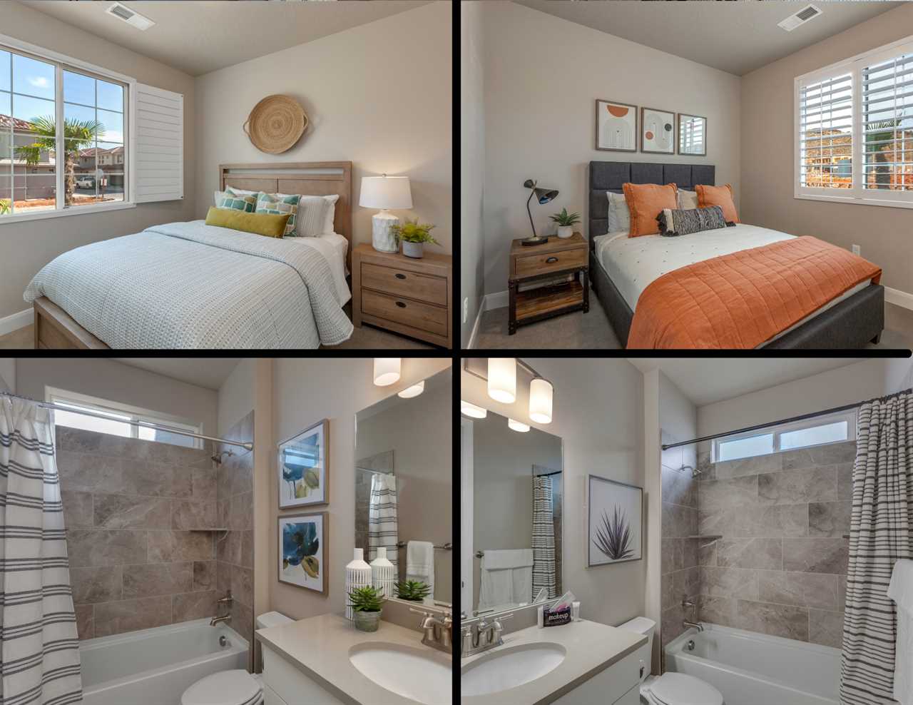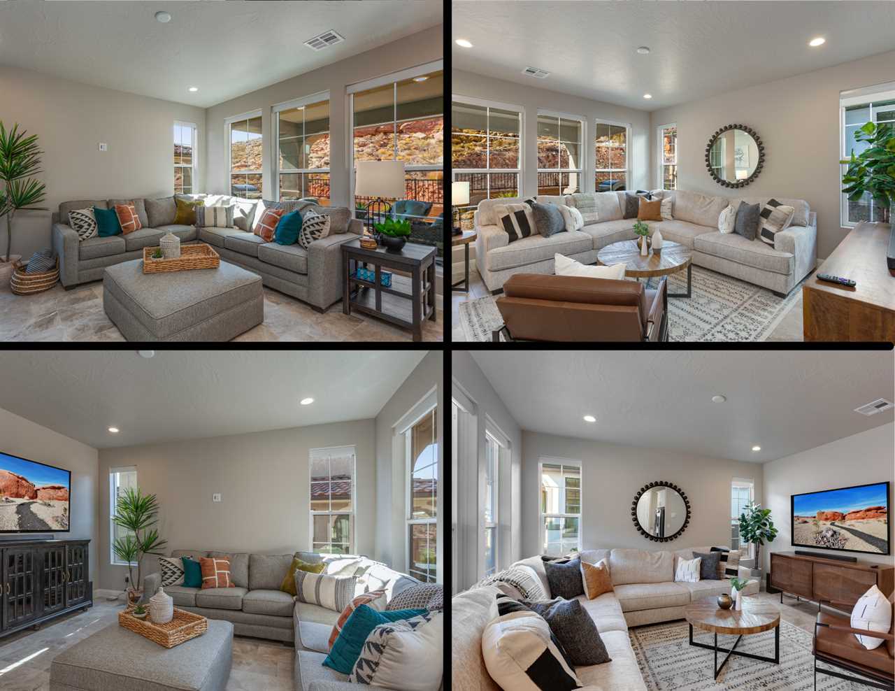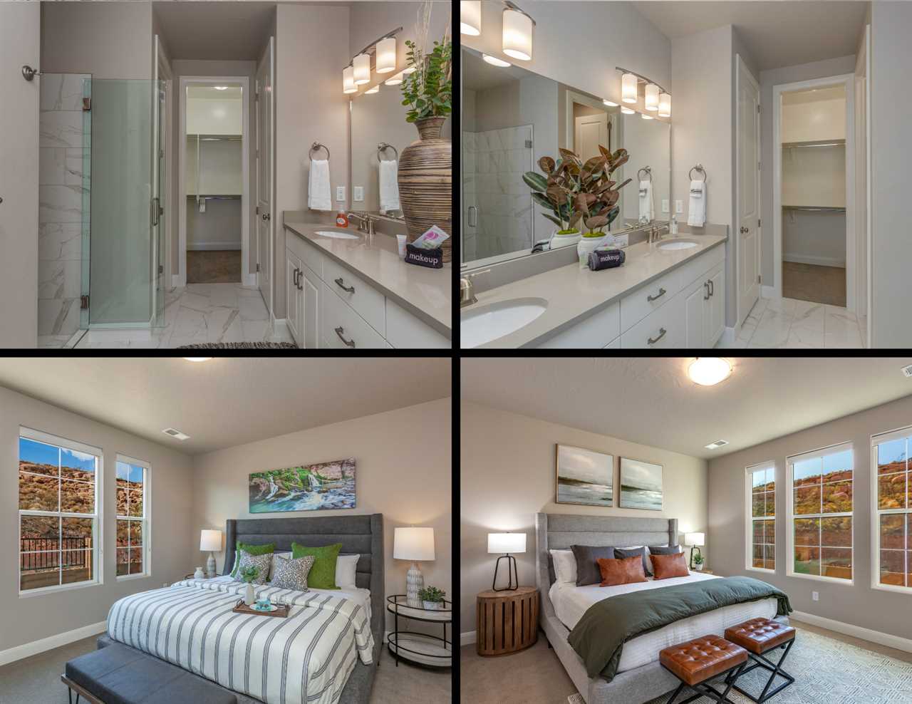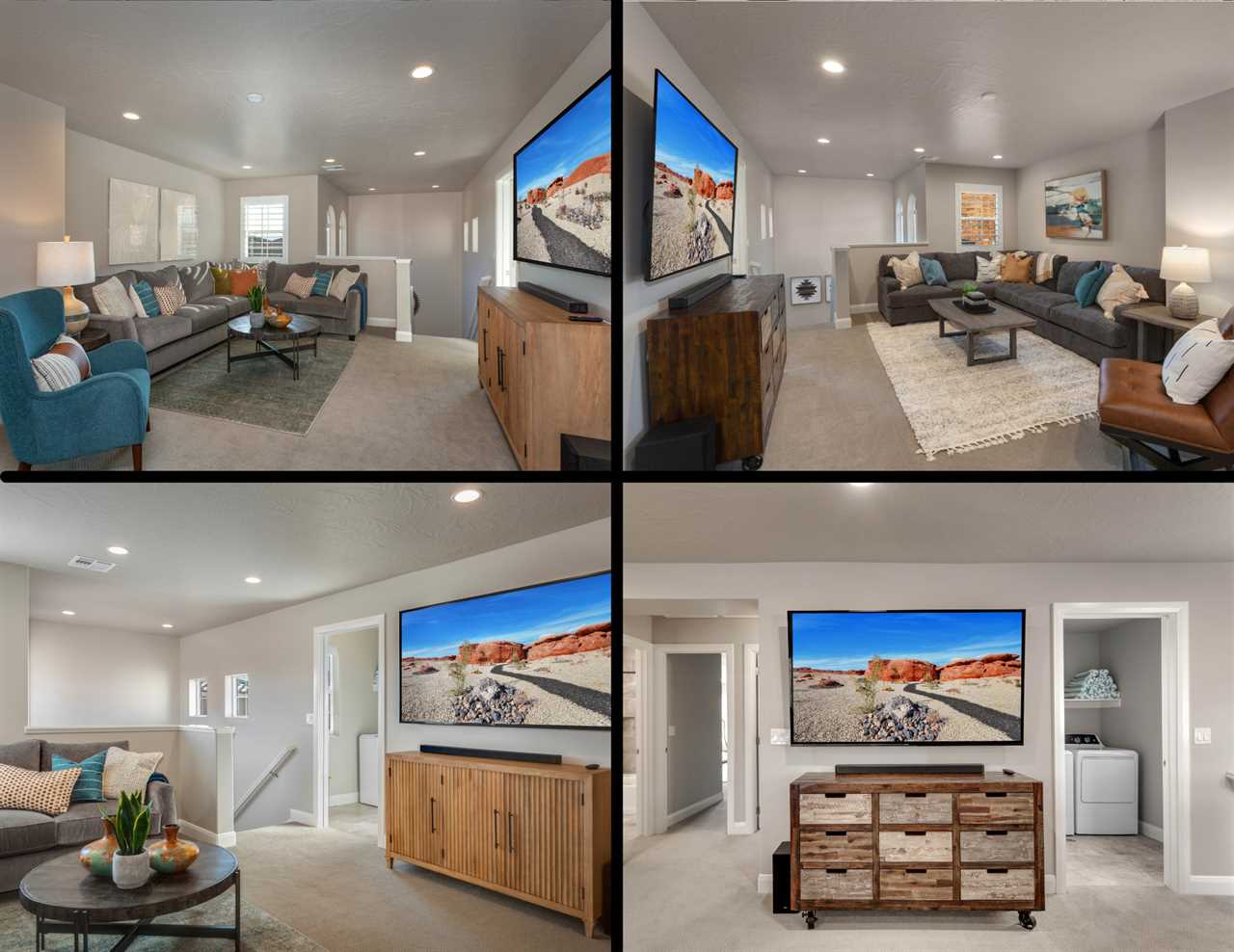 The first home is a beautiful 5 bedroom / 4 bathroom townhome that can comfortably sleep up to 18 guests. Located just outside of sunny Saint George, you will be surrounded by stunning red rock mountains and scenery, local petroglyphs, and fossils. Each bedroom is equipped with a Smart TV, perfect for relaxing and watching a movie after a long day of exploring. There are 2 bedrooms downstairs, including the master bedroom. The floor plan is open-style with tons of room for entertaining and spending time with your loved ones. There are 3 additional bedrooms upstairs that surround the loft area, as well as 2 more bathrooms.