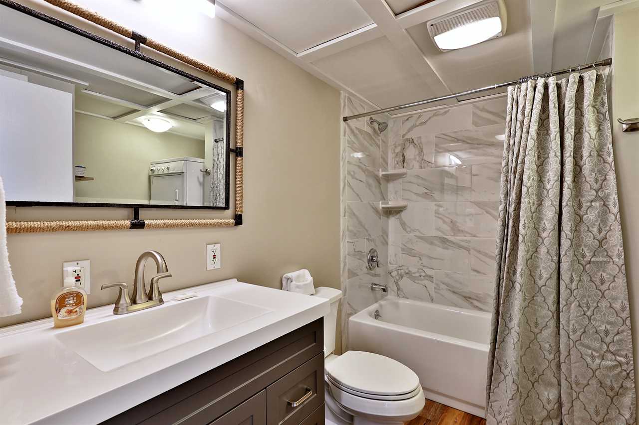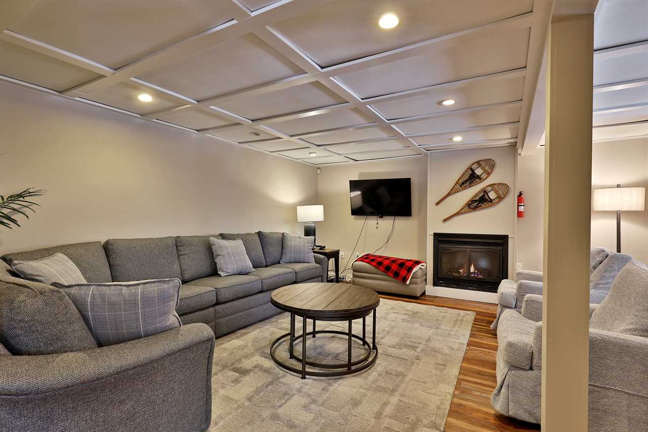 As you enter, a welcoming mudroom provides a convenient spot for your gear. This level features a cozy bedroom with a bunk bed (a full-size mattress over a queen), a full bathroom, and a spacious family room complete with a large sectional and a queen sleeper sofa. Enjoy movie nights on the widescreen TV with Chromecast, or warm up by the gas fireplace for a relaxed atmosphere.