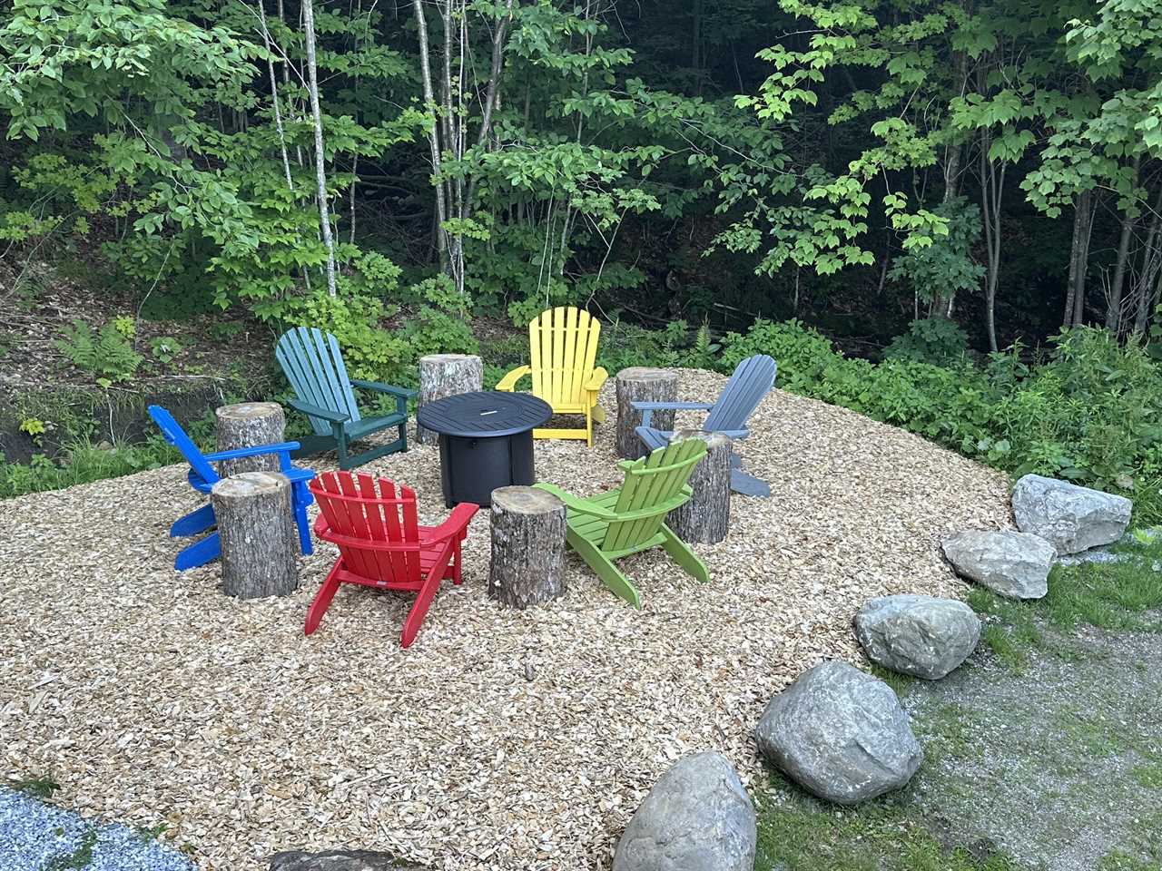 Step outside to a generous wrap-around deck that showcases breathtaking mountain vistas. Unwind in the outdoor hot tub after a day of adventure, or gather around the cozy propane fire pit (unavailable in the winter), surrounded by six colorful Adirondack chairs—perfect for evenings spent sharing stories and laughter.