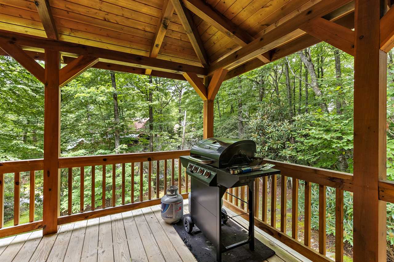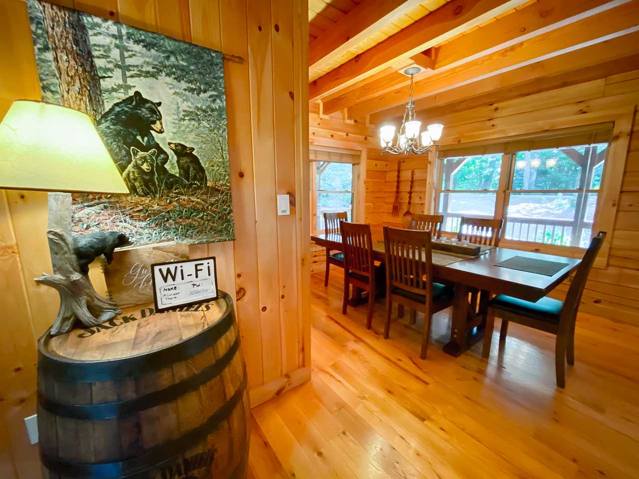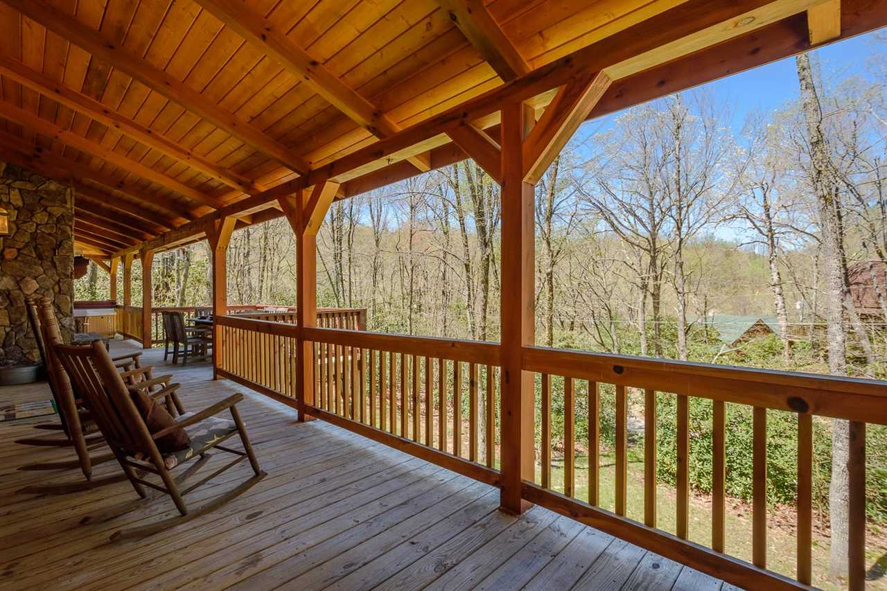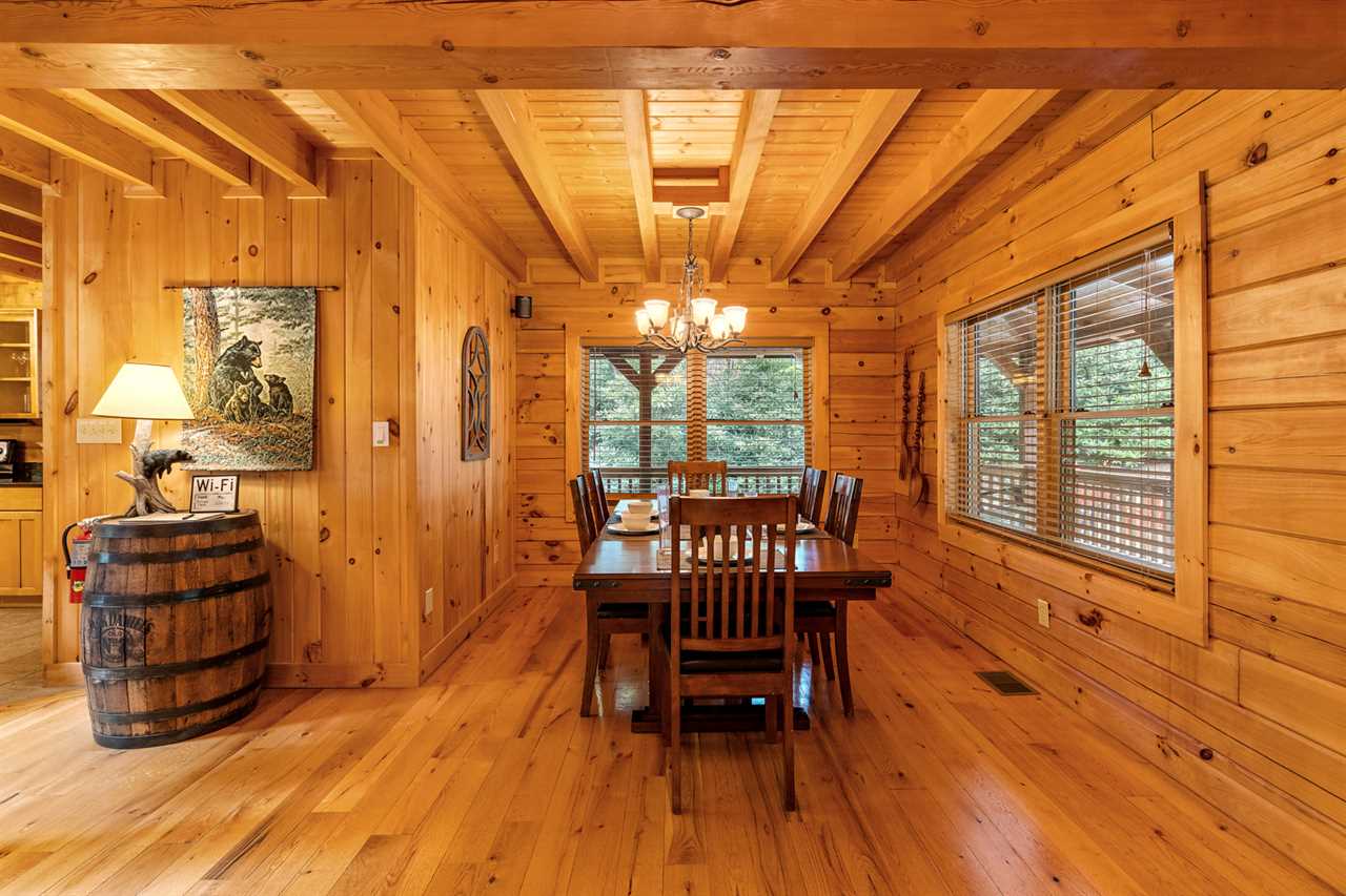 There is a large backyard to play in, with a fire pit where you can roast marshmallows as the sun goes down. The wrap-around deck is perfect for sitting or relaxing in the 5-person hot tub as you listen to the sounds of nature or enjoy dinner by the outdoor wood-burning fireplace.