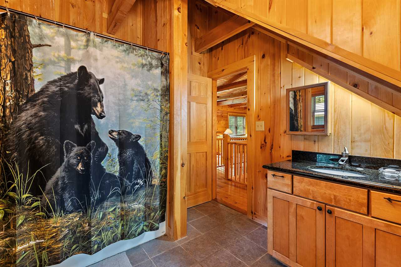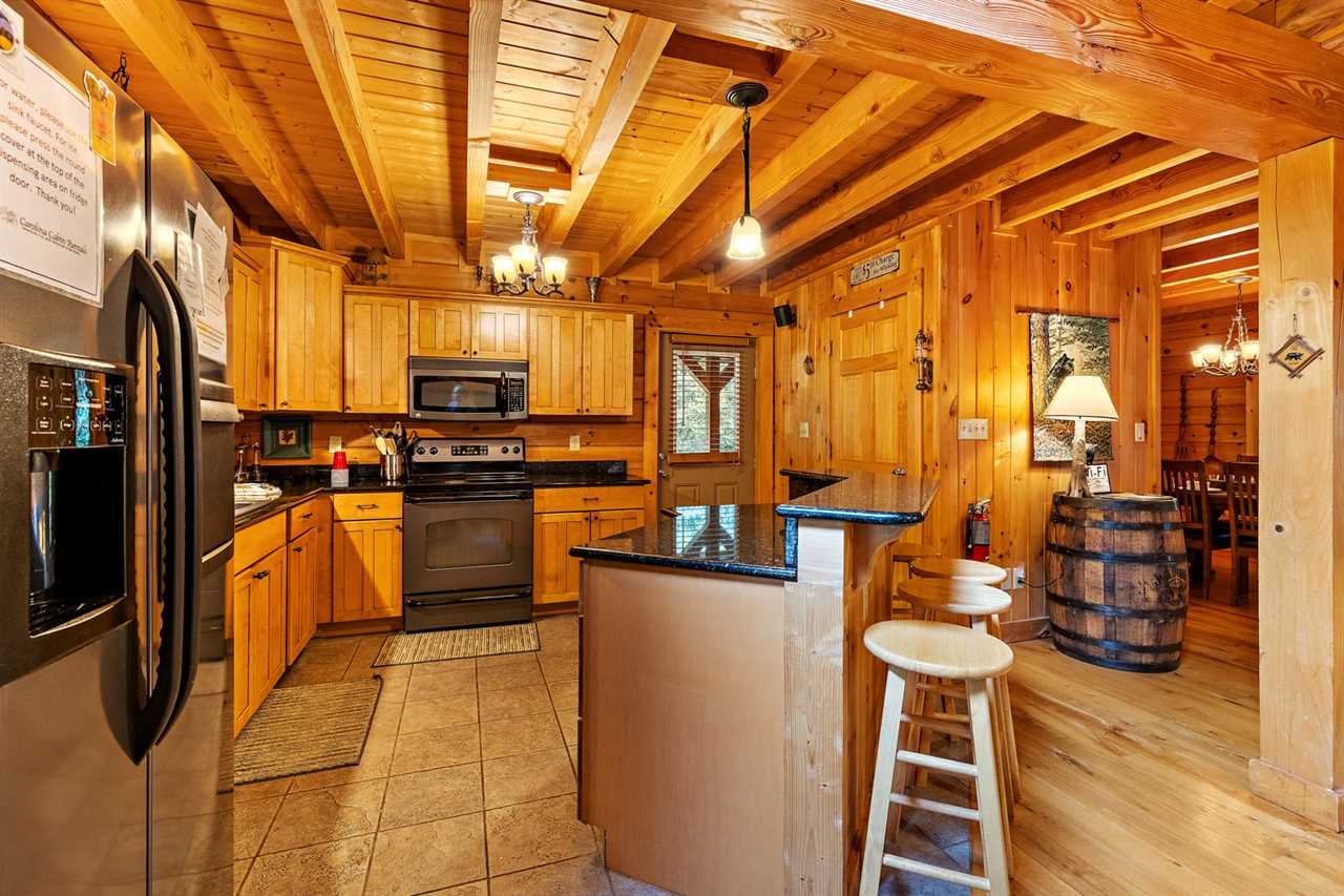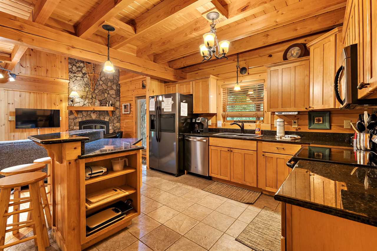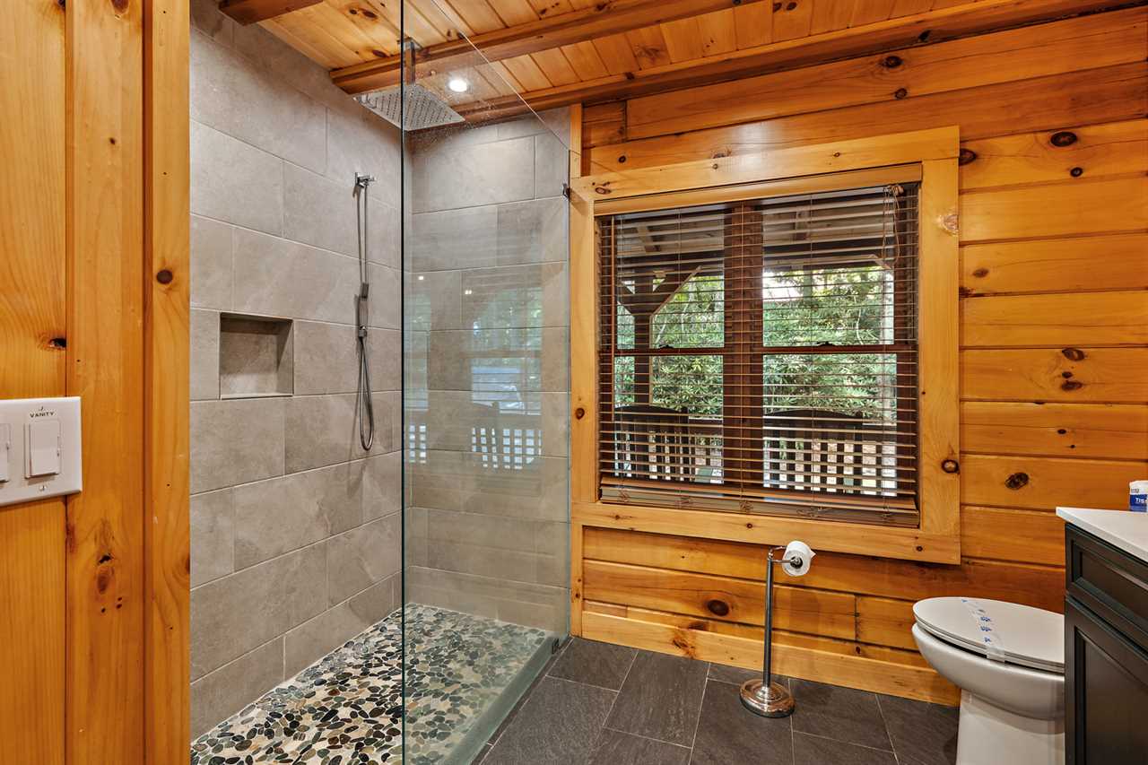 There is a large backyard to play in, with a fire pit where you can roast marshmallows as the sun goes down. The wrap-around deck is perfect for sitting or relaxing in the 5-person hot tub as you listen to the sounds of nature or enjoy dinner by the outdoor wood-burning fireplace.
