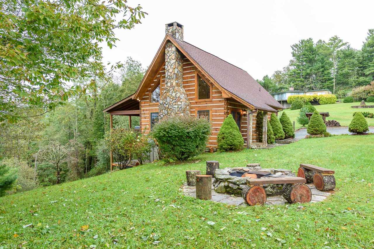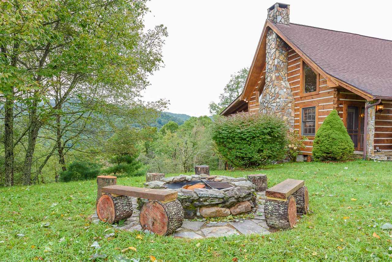 Valle View, perched at the top of a quiet ridge in Valle Crucis with a handful of other cabins spread out to offer elbow room and some privacy, delivers delightful long-range layered mountain views. The property has a level front and side yard with lots of room to play, a wood-burning fire pit with cherry log stools, and a small fenced-in side yard, nice for guests with a dog. The backyard and covered rear deck are private. The village of Valle Crucis, with the original Mast General Store, restaurants and shops, a wonderful park, and access to the Watauga River, are all just minutes away.