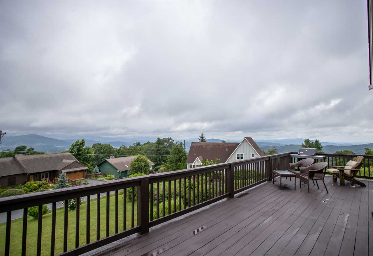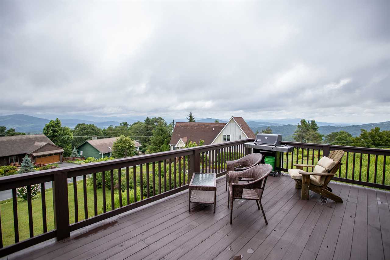 Walk out of the great room to a large open-air patio with outdoor seating and a gas grill. The views stretch out in front of you and to the sides. Enjoy the horizon, the many layers of mountain ranges, and the picturesque view of Appalachian Ski Mountain below.
