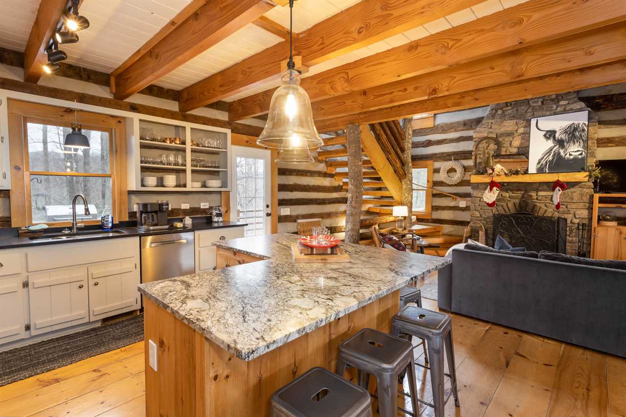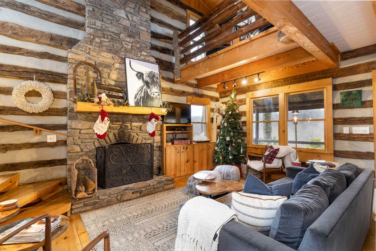 Speckles is a charming rustic log cabin nestled on a large property with pastoral mountain views in the quaint community of Todd, between Boone and West Jefferson. Its convenient location makes it the perfect base for exploring the area, with both Boone and West Jefferson just a short drive away. The cabin offers numerous living and entertaining areas and comfortable sleeping accommodations for 10 guests, spread throughout three levels of rustic cabin living with a fresh contemporary update.