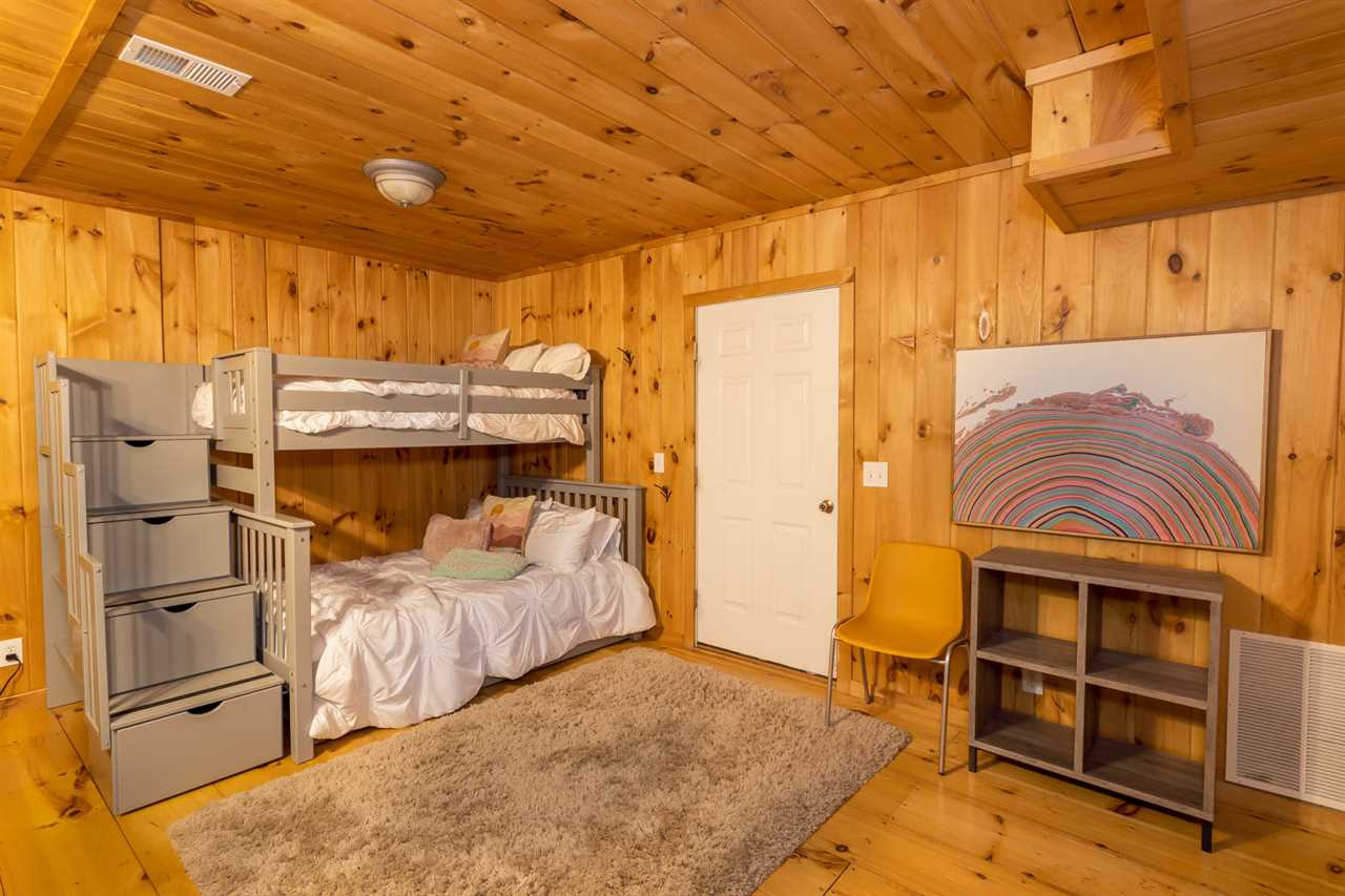 Lower level Twin over Full Bunkbed and full Sleeper Sofa (sleeps up to 4 comfortably)