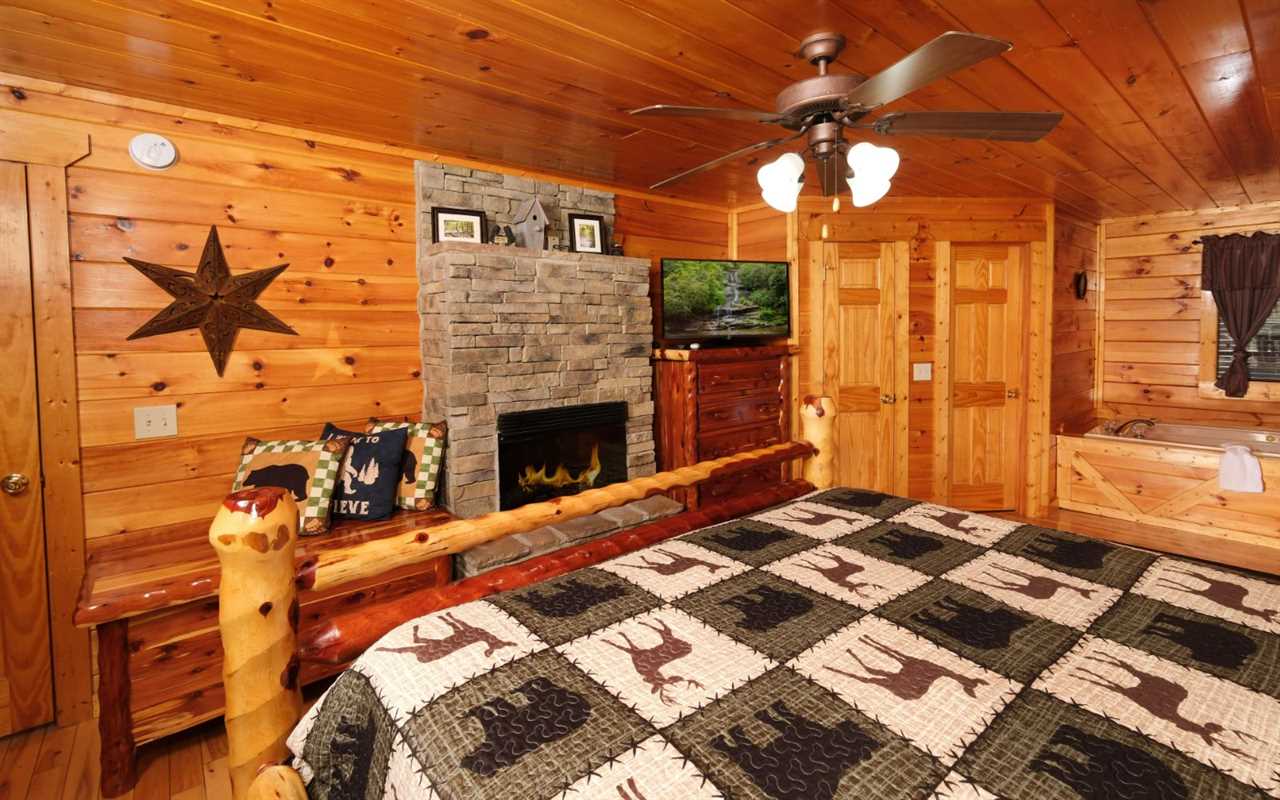 • KING BEDROOM WITH STACKED-STONE FIREPLACE