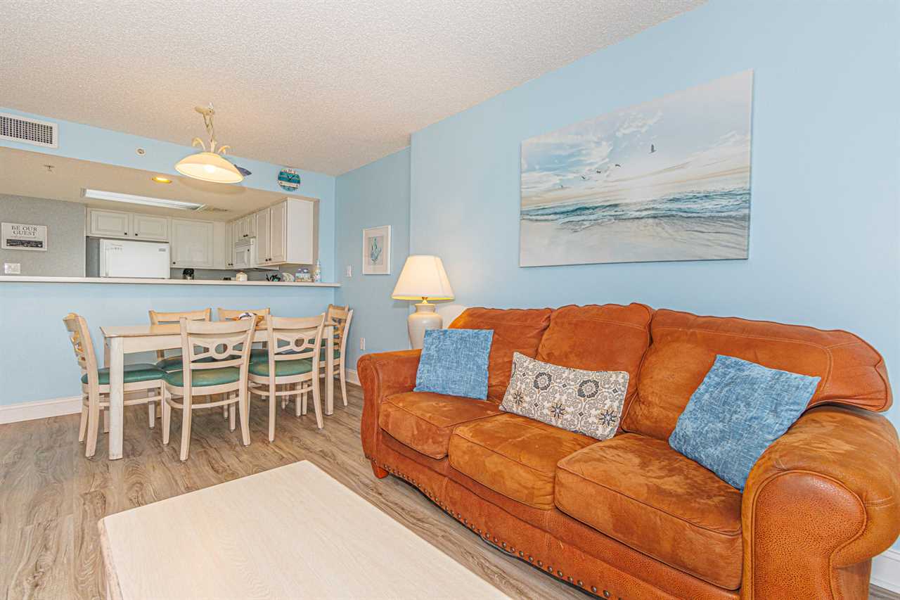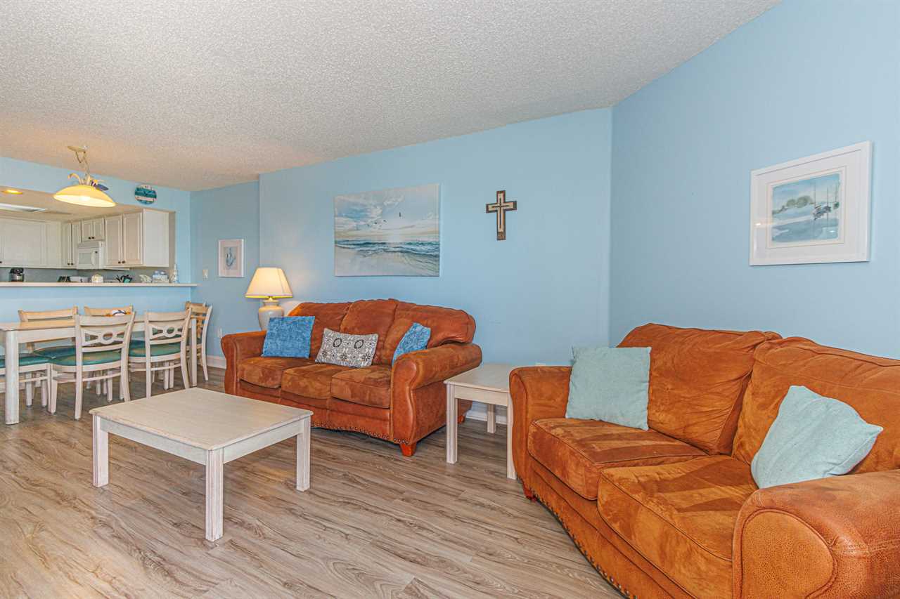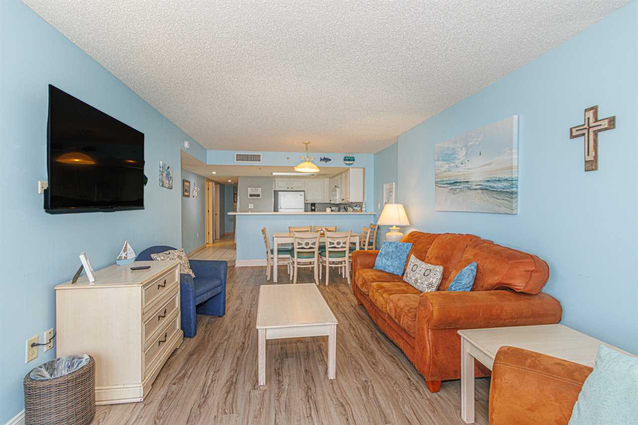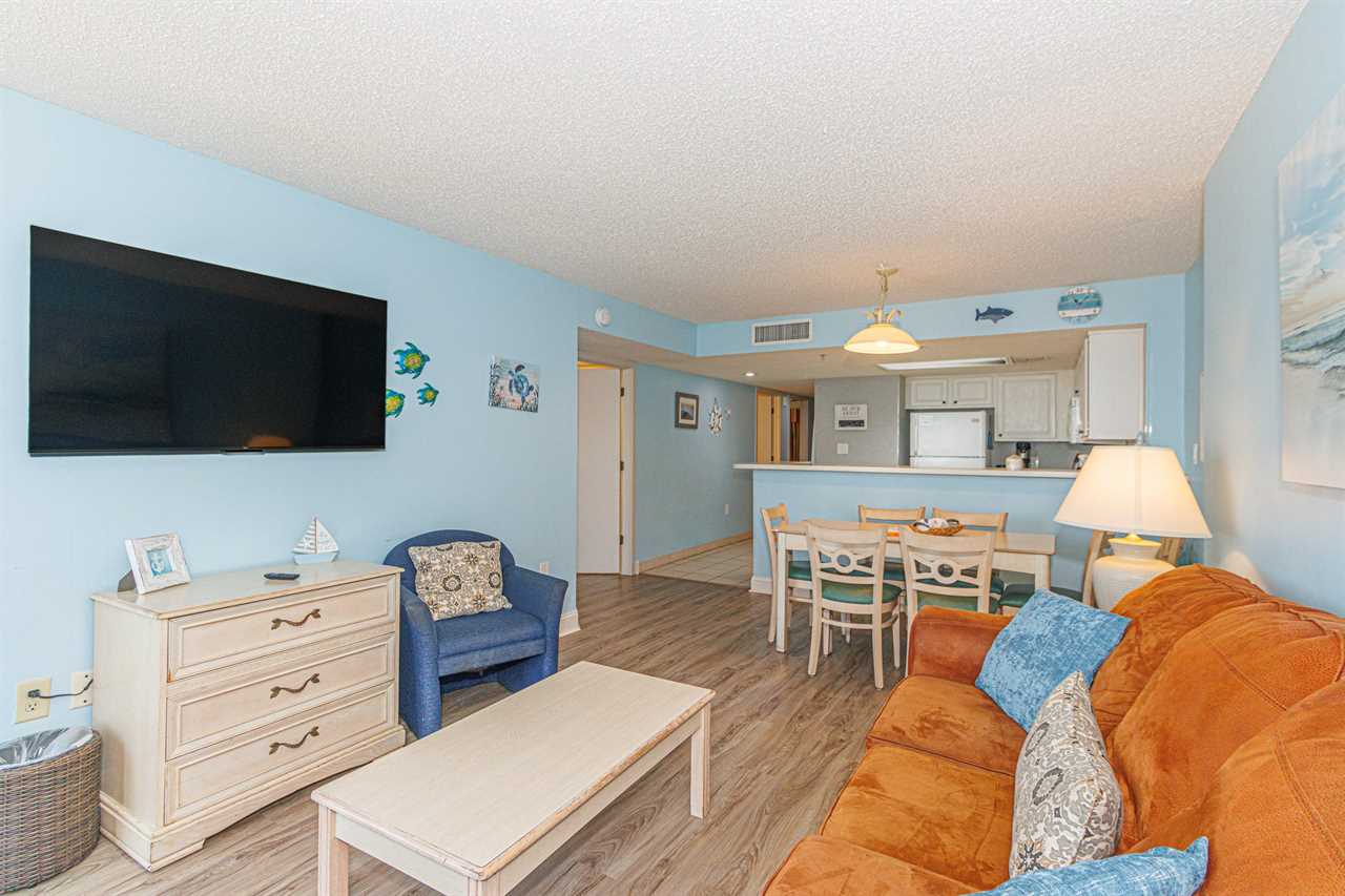 If you are looking for your next vacation spot in Myrtle Beach, SC, the search ends here! You will be blown away by this newly renovated, 3-bedroom, 2-bathroom, apartment located at the highly sought-after complex of Sand Dunes Resort in Myrtle Beach, SC. This ocean view condo is perfect for a large family, or a large group who is looking to stay in the same apartment! This condo will comfortably accommodate a total of 12 guests! As of April 2024, this condo has had some beautiful renovations! We could not be more excited to share. For starters, all new LVP flooring and baseboards were installed throughout. In the bedrooms new bi fold doors were installed. Lastly all 4 TVs were replaced with new smart TV's! Upon arrival, guests will enter through a small hallway. As you make your way through the condo, there are a total of 3 bedrooms. The bedroom layouts and bed sizes are as follows: Bedroom 1: This room is the first bedroom on the left and offers 2 full beds. This bedroom features a closet for storage, dresser, TV with basic cable, overhead lighting, and a window for natural light. Bedroom 2: This bedroom is located on the right and is directly across from bedroom #1. This room is almost identical to the room across the hall and features two full size beds, closet for storage, dresser, TV with basic cable, overhead lighting. The bedroom window provides great natural light. As you continue through the apartment, guests will find a full bathroom between the kitchen and the first two bedrooms. This bathroom features a vanity, sink, mirror, tub, shower, and toilet. Directly across the hall from the bathroom is where the laundry center is located. Guests will enjoy the convenience of being able to wash and dry their clothes without having to leave the condo. If bulk laundry is needed, it's important to note that Sand Dunes offers a very large coin-operated laundromat in the oceanfront building. The next stop is the kitchen, and our guests will not be disappointed! Guests will be pleased with the oversized counter space and cabinets. The kitchen features oversized counter space, full size appliances, tile flooring, and more. The spacious cabinets are perfect for storing food and snacks, and many of them are stocked with all basic kitchenware and cooking utensils. All dishes, plates, silverware, pots, pans, and cookware are provided! For guests who prefer to dine out, Myrtle Beach offers hundreds of incredible dining options, and many of them are within walking distance or a short drive from Sand Dunes Resort. To name a couple, River City Cafe is onsite at Sand Dunes. Within a mile, there is an Outback Steakhouse, Fiesta Mexican Restaurant, and the upscale Flamingo Grill. (These restaurants are subject to change). The living room is located at the very front of the condo. The living area features ample seating for several guests and is fully furnished with a sofa and multiple accent chairs. Guests will enjoy the sofa, accent chairs, entertainment stand, TV, and access to the ocean view balcony. Being on the 16th floor, the view is absolutely incredible, and guests will enjoy unobstructed North-facing views for as far as you can see! So many of our guests have sent us photos of dolphins, boats, gorgeous sunrises, and colorful sunsets. The dining table and chairs are located in this area as well. The custom table and bench are super unique and make for perfect seating arrangements. Bedroom 3: The last bedroom is the master, and it's located on the ocean side of the condo and is just off from the living room. This bedroom features 2 full beds, closet for storage, dresser, TV with cable, and access to a private bathroom. Guests will be able to access the balcony from the bedroom. The bathroom features a stand-up shower, tub, toilet, and an oversized mirror. All bath towels, toiletries, bedding, bedding, and linens are provided. We also provide starter amenities such as toilet paper, paper towels, soap, shampoo, lotion, and conditioner for each reservation. Each bathroom is stocked with 8 towels, 8 wash cloths, 1 hand towel, and 1 bathmat. Sand Dunes also offers numerous indoor and outdoor pools, jacuzzis, sauna, onsite restaurants, huge arcade, and even more amenities for you and your family to enjoy before relaxing in this beautiful unit. Other Amenities and Entertainment: **PLEASE NOTE** Our guests do NOT have access to the on-site waterpark or the movie theater. They do, however, have access to many other amenities such as: Pool bands are not required from September 2022- through Memorial Day The smaller lazy river (outside of the waterpark) Fitness Indoor pool Outdoor pool Arcade ATM on premises Coin operated laundry facility Vending and ice machines Convenience store on site On-Site Restaurants: (Seasonal hours may apply) Oceanfront Cafe - Located in the Ocean Dunes building Oceanfront grill- Located in the Sand Dunes Building Pizza & Pasta shop - Located in the Sand Dunes building Oceanside Lounge - Located in Sand Dunes Ocean Sweet - Located in Sand Dunes Please note that Sand Dunes Resort is a non-smoking property, and smoking is strictly prohibited inside the condo and on the balcony; any evidence of smoking will result in the forfeiture of the full security deposit and may incur additional charges. Motorcycles and pets are not permitted at the resort. The kiddie water park located behind the property is privately owned and not included with this rental. Guests must be 25 years of age or older to book and stay at this property, and reservation holders under 25 are subject to fines and possible eviction. We are confident that you are going to love this rental and the location. It is truly one-of-a-kind, and we are very excited to have you as our guest! Please keep in mind that this rental is privately owned and managed, and we have no affiliation with the resort staff, resort maintenance, or resort housekeeping. Should you have any maintenance or housekeeping needs, or have any questions, 