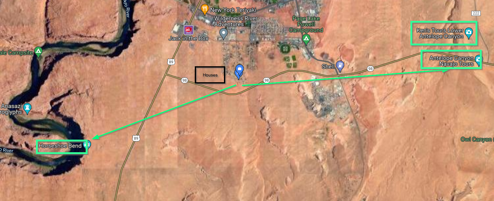 The town of Page is quite small, so nothing is very far away.