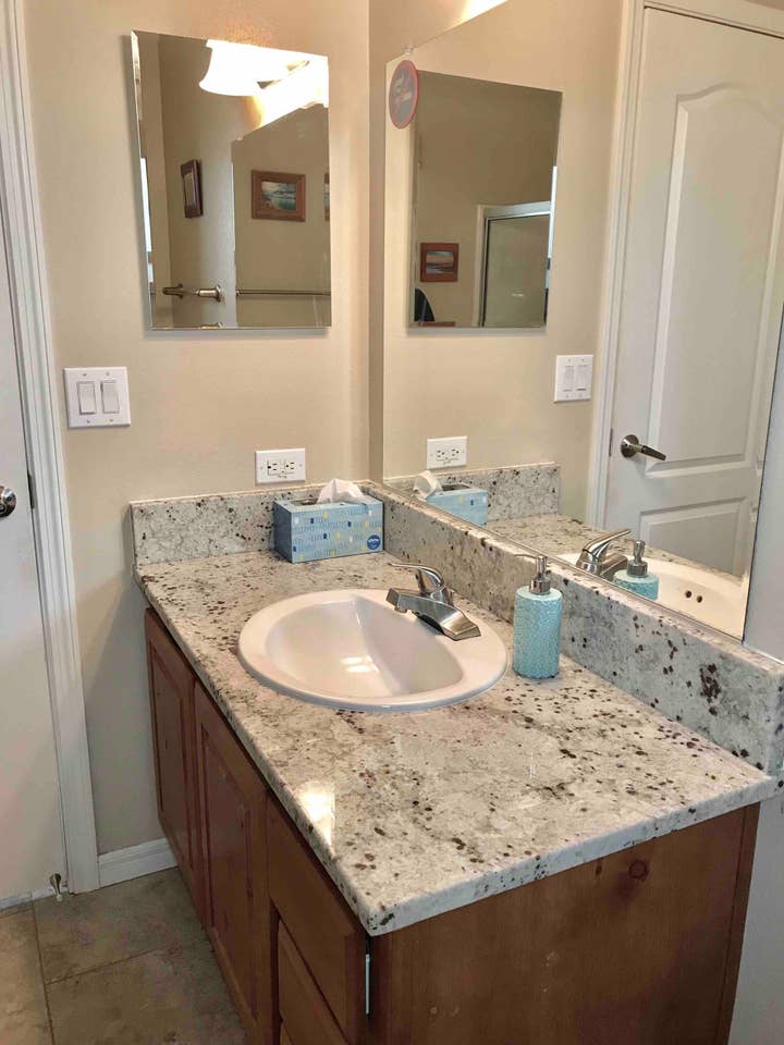 🍲Kitchen with granite counter tops and fully outfitted with electric cook top, stainless steel fridge, full size oven & microwave, dishwasher, double-basin sink with garbage disposal, stainless steel pans, mixer, toaster, drip coffee maker, food processor, standard dishes, utensils and flatware provided. You'll find most common spices available for cooking use