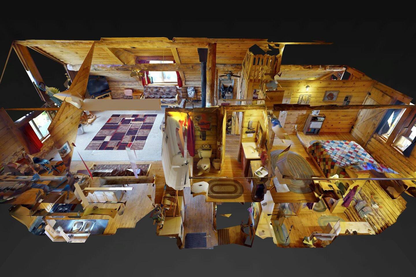 Featuring a spacious main level Master Suite with a full bathroom and shower. Also has a full kitchen, dining table, and a plush sofa. The upper level features two additional bedrooms (each with a queen bed), a full bath w/ tub/shower, a large family room with three queen futons, and big-screen TV! And don't forget the extra loft w/ carpet and a full bed! Cable tv w/DVD player, wi-fi, and all linens are provided. There is high speed fiber Internet – Perfect for Travelers who need to stay online!