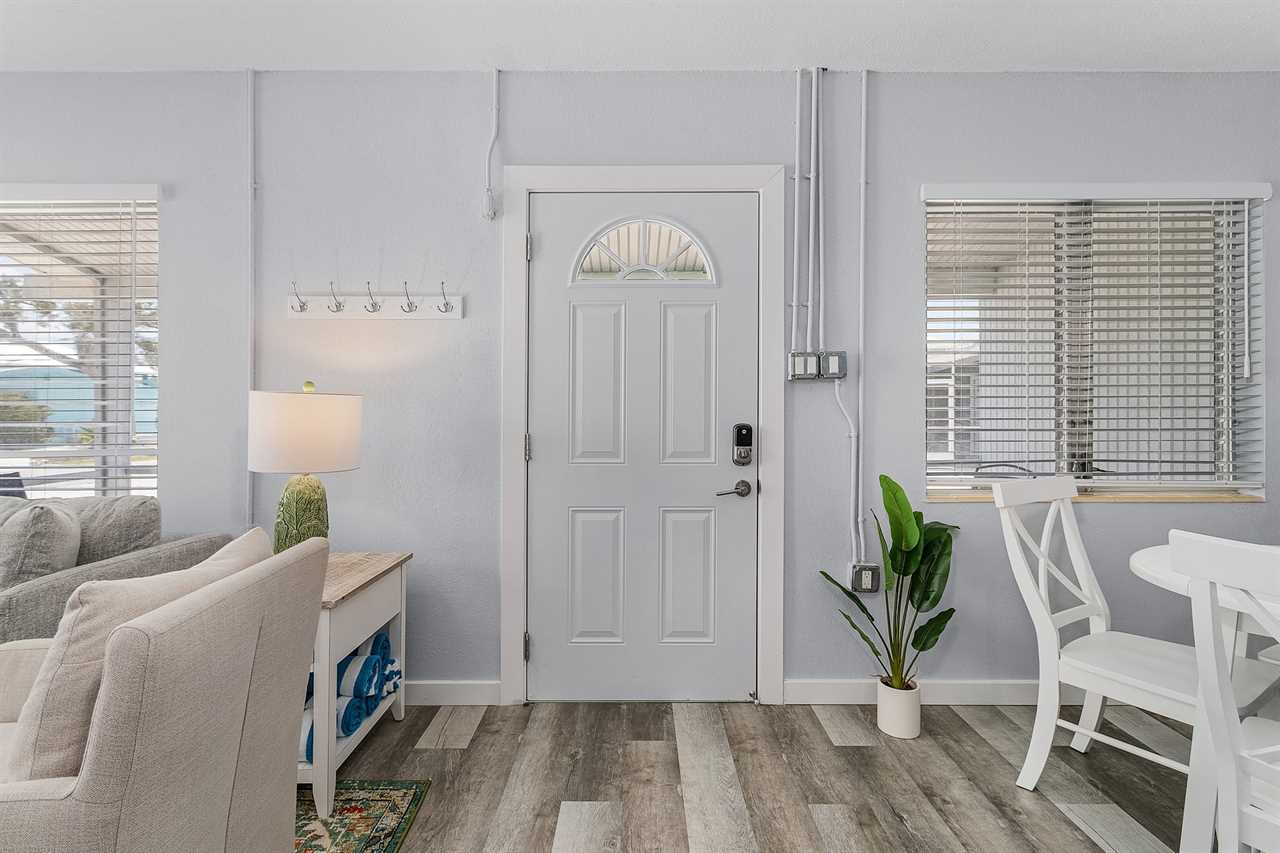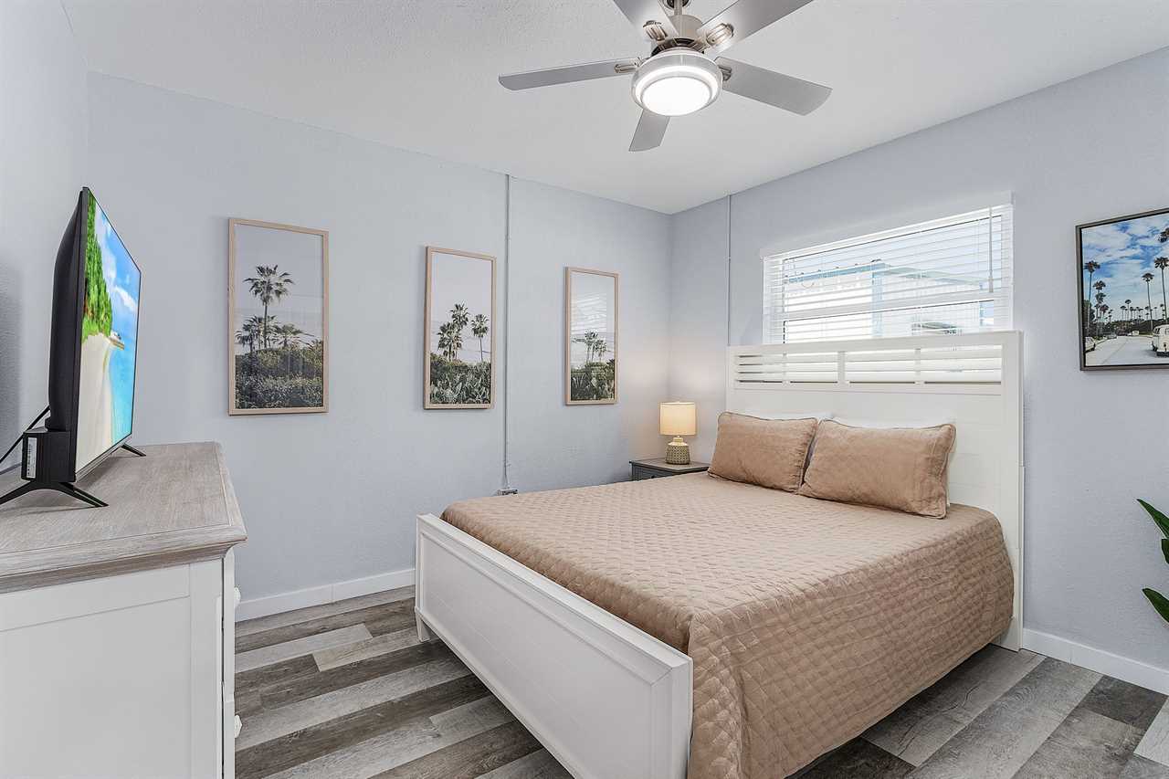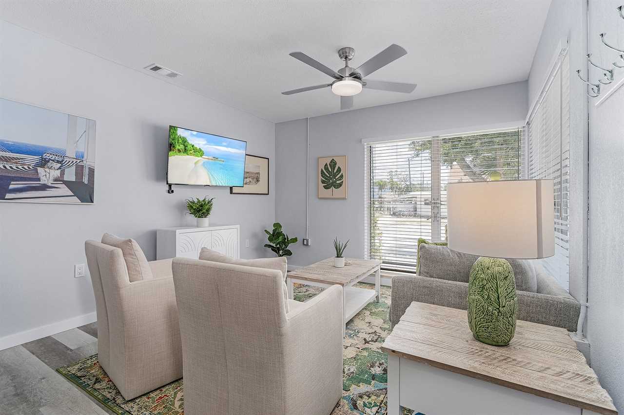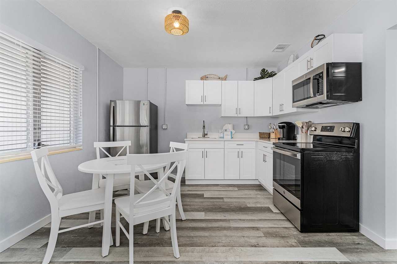 License # 22-0052 Washington Avenue "Dune Our Thing" Unit D Welcome to Washington Avenue Villas Unit D. This recently renovated and redecorated two-bedroom, one-bath vacation destination is nestled in with three other villas, all surrounding a large heated swimming pool with sun deck and located mid-way down the beautiful Estero Island, your tropical paradise that still maintains its Olde Florida charm. Beach access is just a short hop across Estero Boulevard to a 7-mile stretch of white, sugar sand beach providing a place for daytime beach activities and to view the endless variety of sunsets. Trolley service along the boulevard is available to transport you to Times Square with all of its restaurants, clubs, and night life. One of the island's largest supermarkets and the upscale Bayfront Bistro are just a short car ride away. Amenities include central air conditioning, complimentary WiFi, remote-controlled ceiling fans, all linens and towels provided, and shared on-site laundry facilities. Upon arrival, there is ample off-street parking. Enter through the furnished screened-in front porch and into the open-plan kitchen, dining, and living areas. There is beautiful wood flooring throughout, and décor is a beachy motif. The kitchen has a quartz counter space, a stainless-steel sink, and well-stocked cabinets with everything necessary to cook full-course meals if desired. Appliances include a refrigerator/freezer, a 5-burner glass top range with a self-cleaning oven, a microwave oven, and a Keurig coffee maker. The dining area adjacent to the kitchen has a table seating four. This flows into the living area furnished with a queen-size sleeper sofa and area rug, as well as a corner accent table and lamp. Opposite the sofa are two matching side chairs and a wall-mounted large flat-screen TV. The first bedroom has a queen-size bed with nightstands and lamps, ample closet space, and a double dresser with a flat screen TV. The second bedroom has a queen-size bed, nightstands and lamps, ample closet space, and a double dresser with a flat-screen TV. The hallway bath between the two bedrooms has a lavatory, commode, and a walk-in shower with a mini-tub. For those with a group of friends or extended family, the other three units can be reserved at the same time. If Washington Avenue Villas Unit D sounds like something you would like to experience, then give us a call or book online today! This property accommodates parking for a maximum of 2 vehicles. Our homes are not inventoried or stocked with beach gear or baby items; however, previous guests sometimes leave these behind. If you're considering renting such items, we recommend checking the property upon arrival for any available gear. Additionally, while all bed configurations and room details are accurate, furniture and décor may vary slightly from what is shown in photos. This property allows one dog 35lbs and under with a $150 non refundable pet fee. Following Hurricane Ian some services and amenities are currently limited, please refer to https://www.visitfortmyers.com/beach-conditions & https://www.fortmyersbeach.org/whos-open-for-business/ for more information.