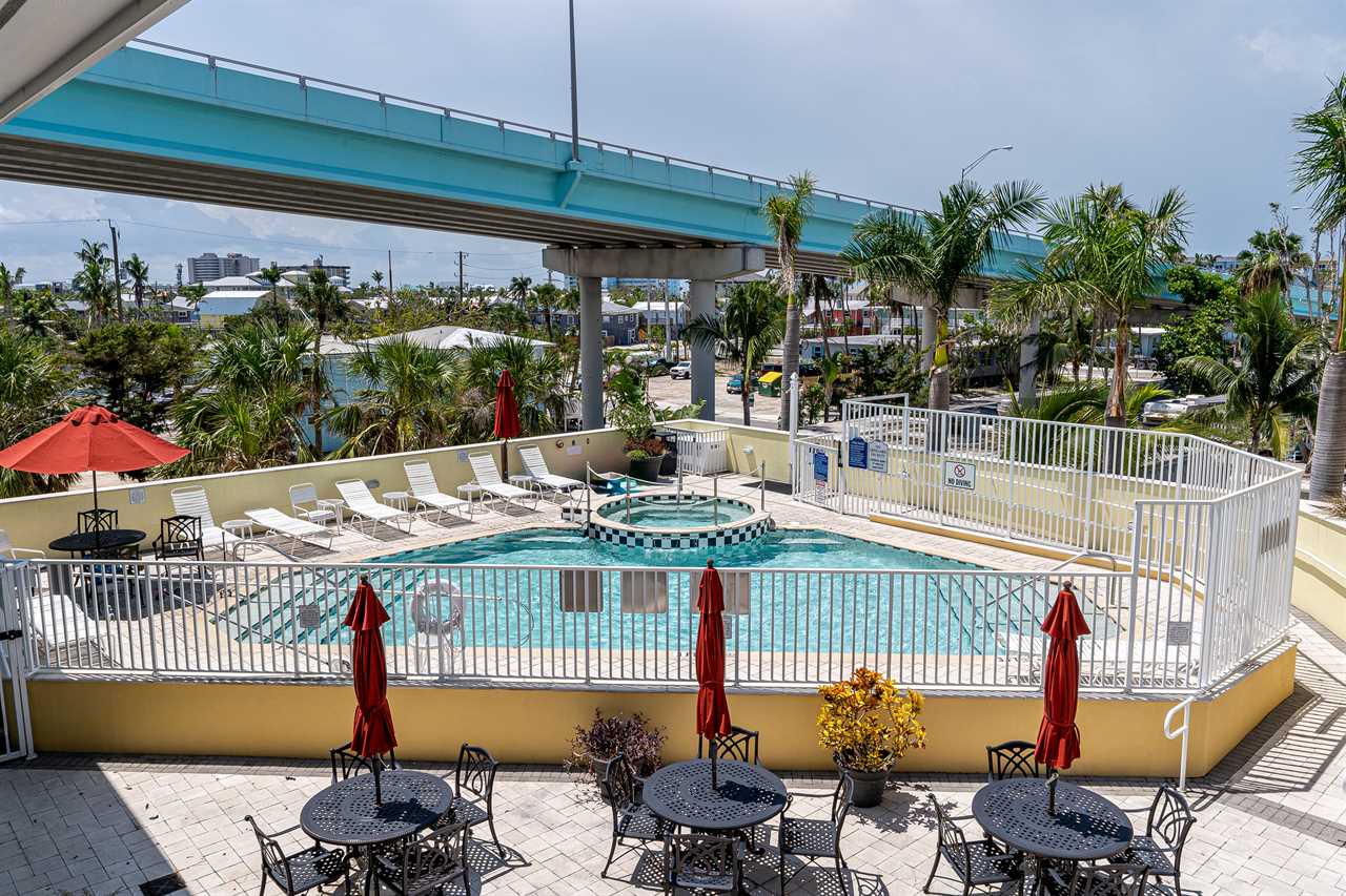 Welcome to Harbour House, a one-bedroom, one-bath hotel condominium located on the second floor of this unique, boutique-style vacation destination situated at 450 Old San Carlos Blvd. in the heart of Times Square and the waterfront district on Fort Myers Beach. This condo is just steps from the beach, the bay, and Times Square. Staying at Harbour House Inn Unit you will find yourself in the middle of all the action, yet just far enough away to retreat to the seclusion of your incredible condo. Parking is available for one car in the covered parking garage, then take the elevator to the second floor. Located on the second floor is the beautiful in-ground heated pool and hot tub. There is also a community room and outdoor seating area with a TV for your entertainment. A community gas grill is also available. Soak up the Florida sunshine in one of the many poolside loungers. Heading down to ground level and out onto San Carlos Blvd. you will find numerous shops and restaurants. Times Square and the Pier are directly at the end of San Carlos Blvd., just a short walk from the condo. Directly across the street from the condo take part in various boat rental opportunities, dolphin sightseeing cruises, or sunset cruises. Parasailing and Jet Ski rentals, as well as eco-tours, can be found in the Times Square area for the more adventurous. Condo amenities include climate control, ceiling fans, cable TV, complimentary WiFi, and all linens and towels are provided.