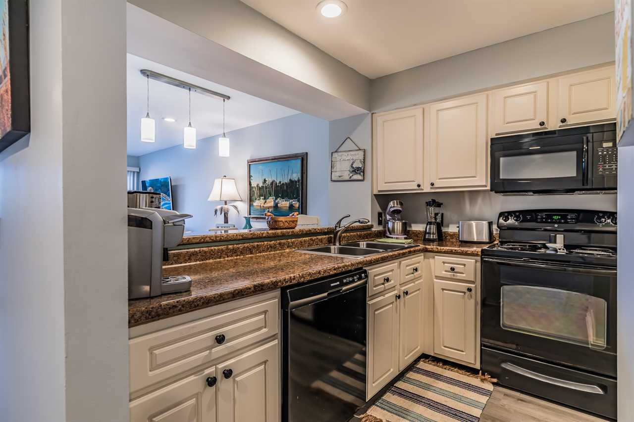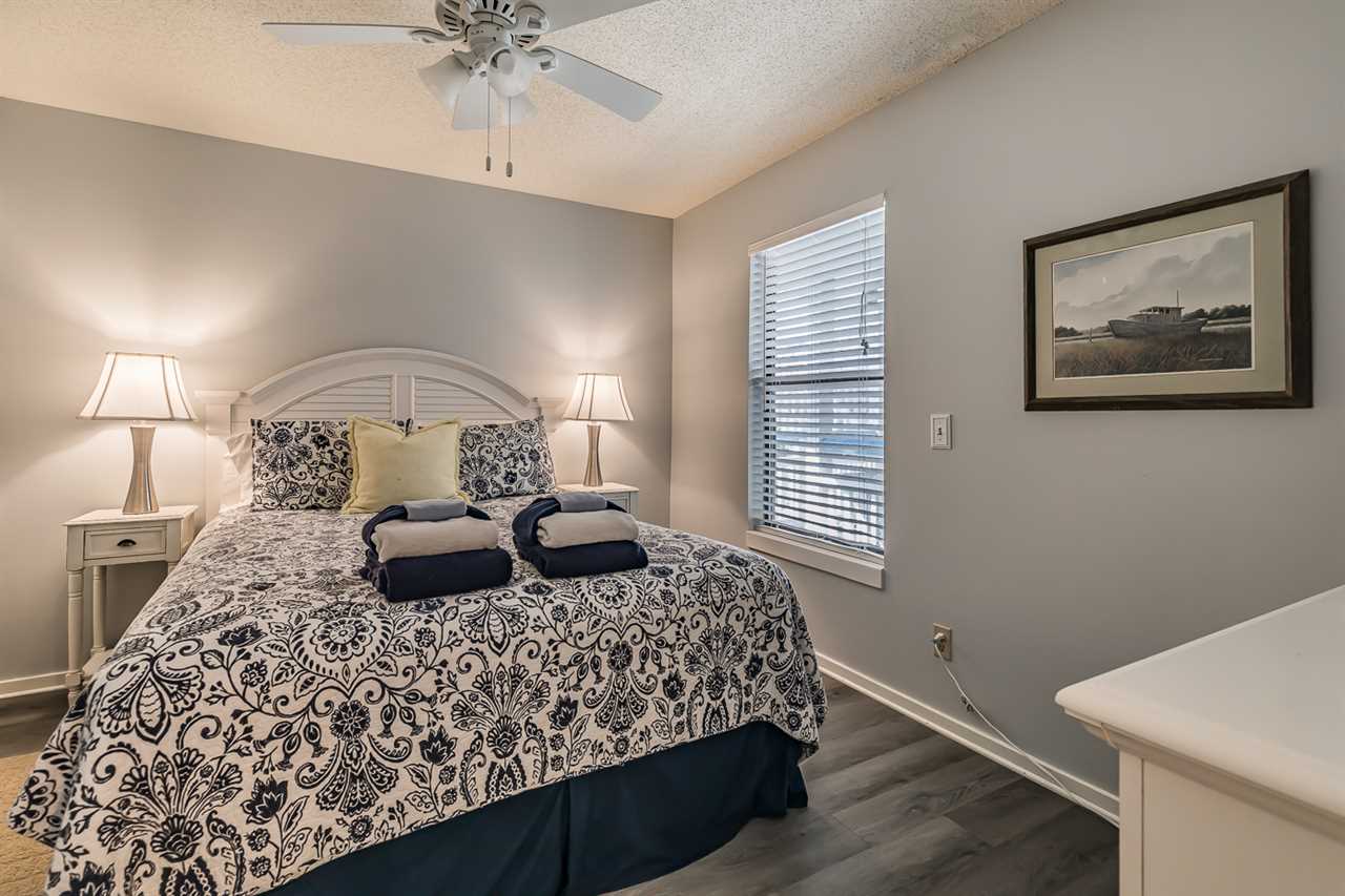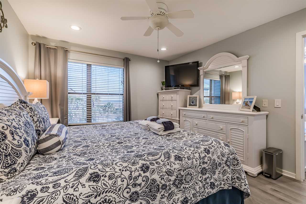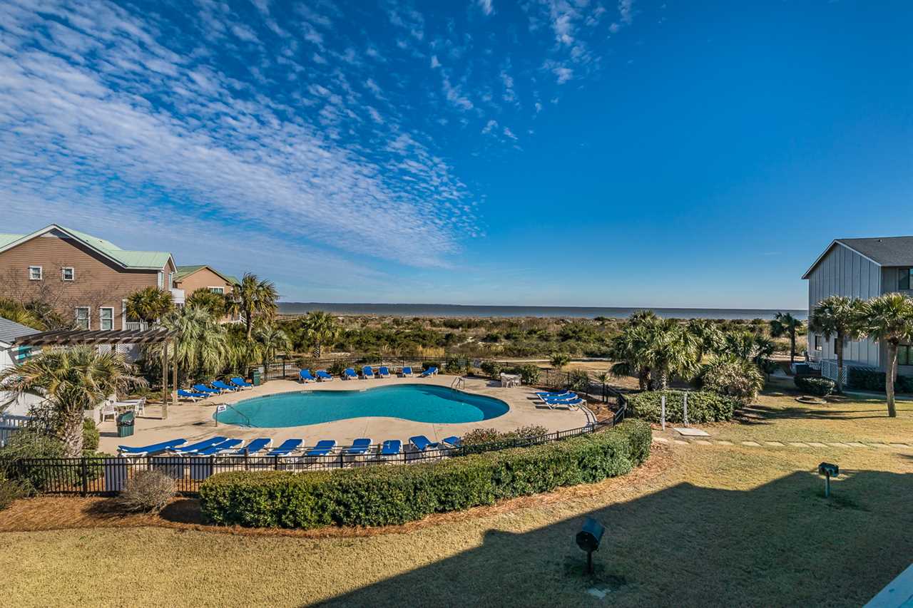 This second story, 2 bedroom/2bathroom condo on Harbor Island provides perfect views of the beach. Relax in the living room or have your coffee on the porch while enjoying views of the dunes and ocean.