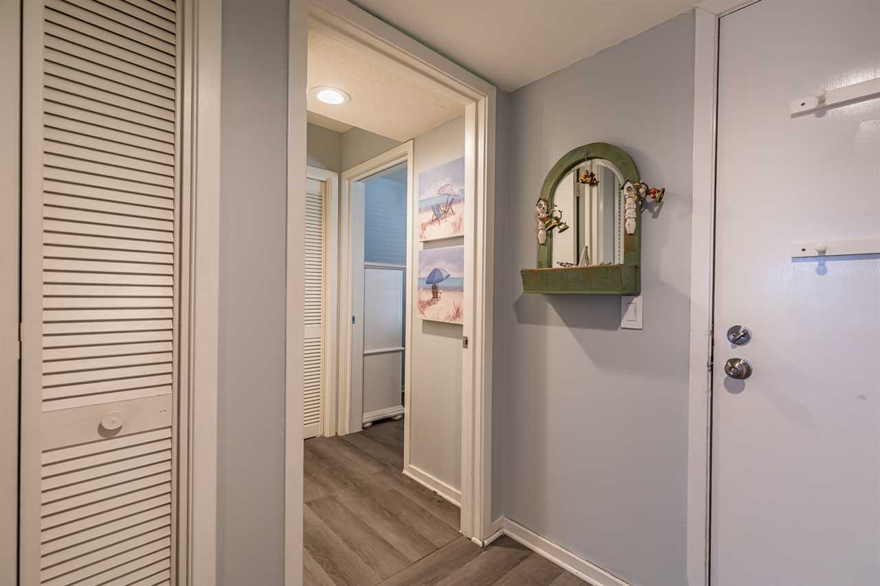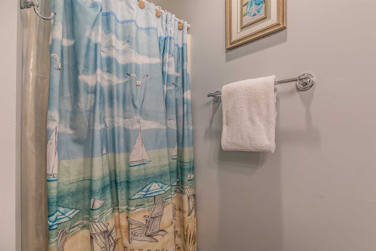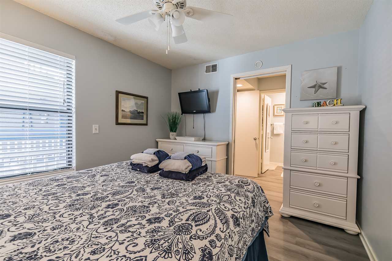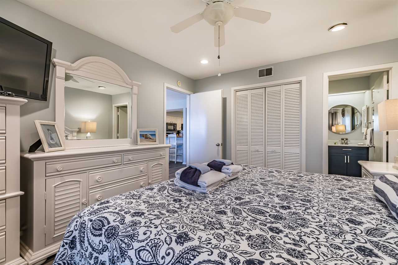 This second story, 2 bedroom/2bathroom condo on Harbor Island provides perfect views of the beach. Relax in the living room or have your coffee on the porch while enjoying views of the dunes and ocean.