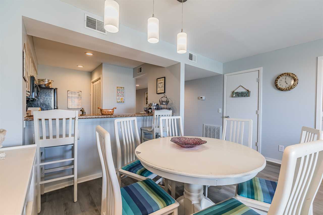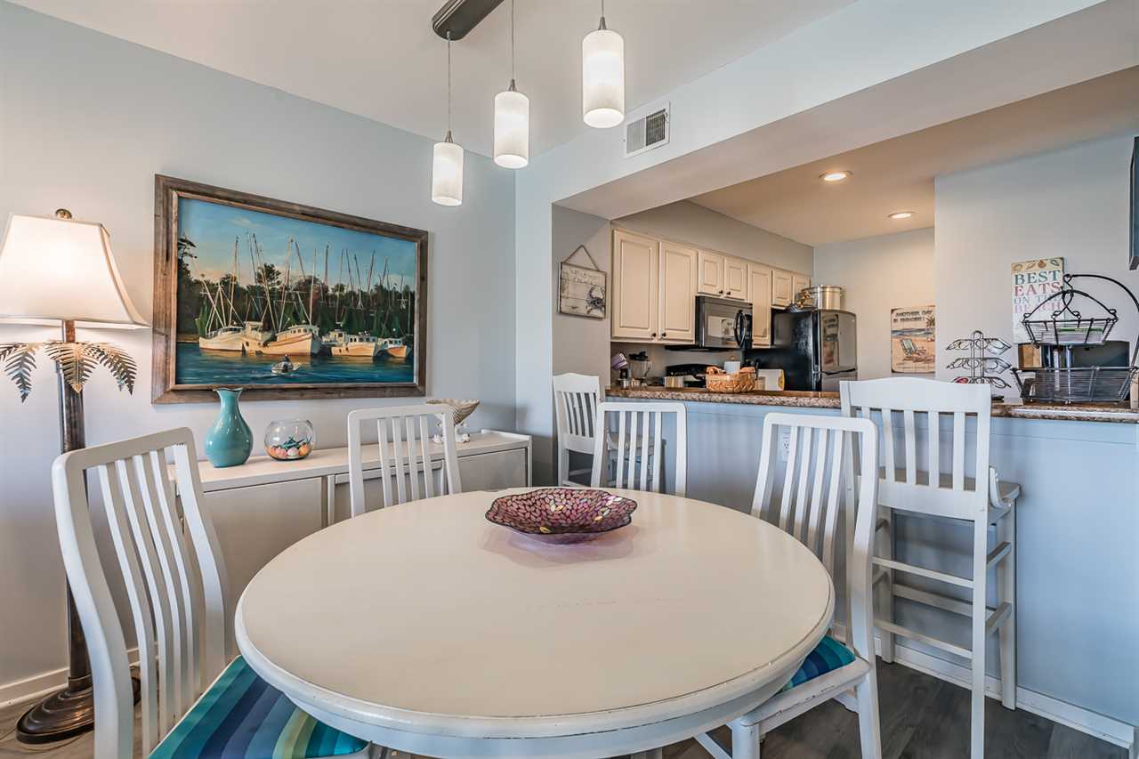 This condo has a fully equipped kitchen, and an on site washer and dryer for your convenience. There is a dining area for 6, and outdoor seating for 4.