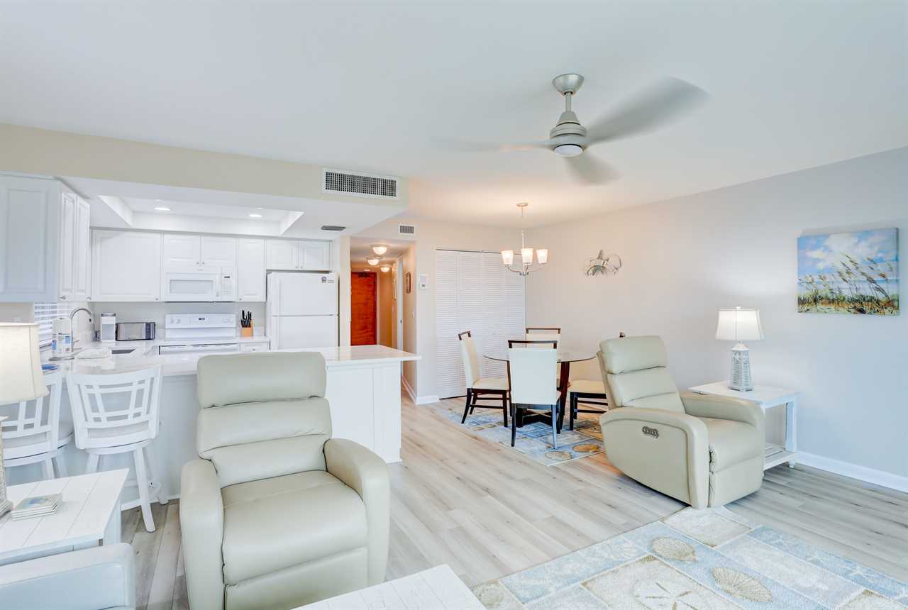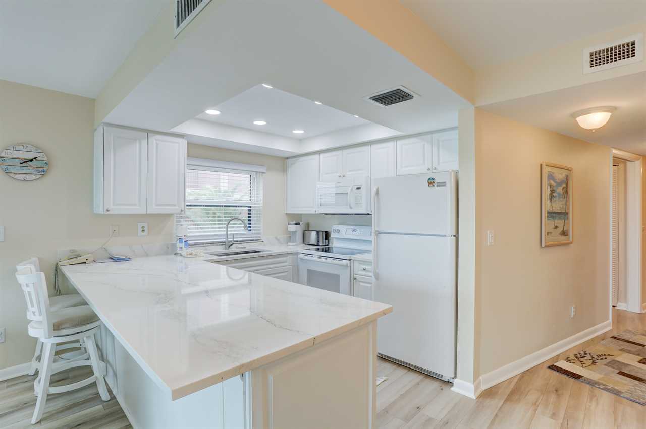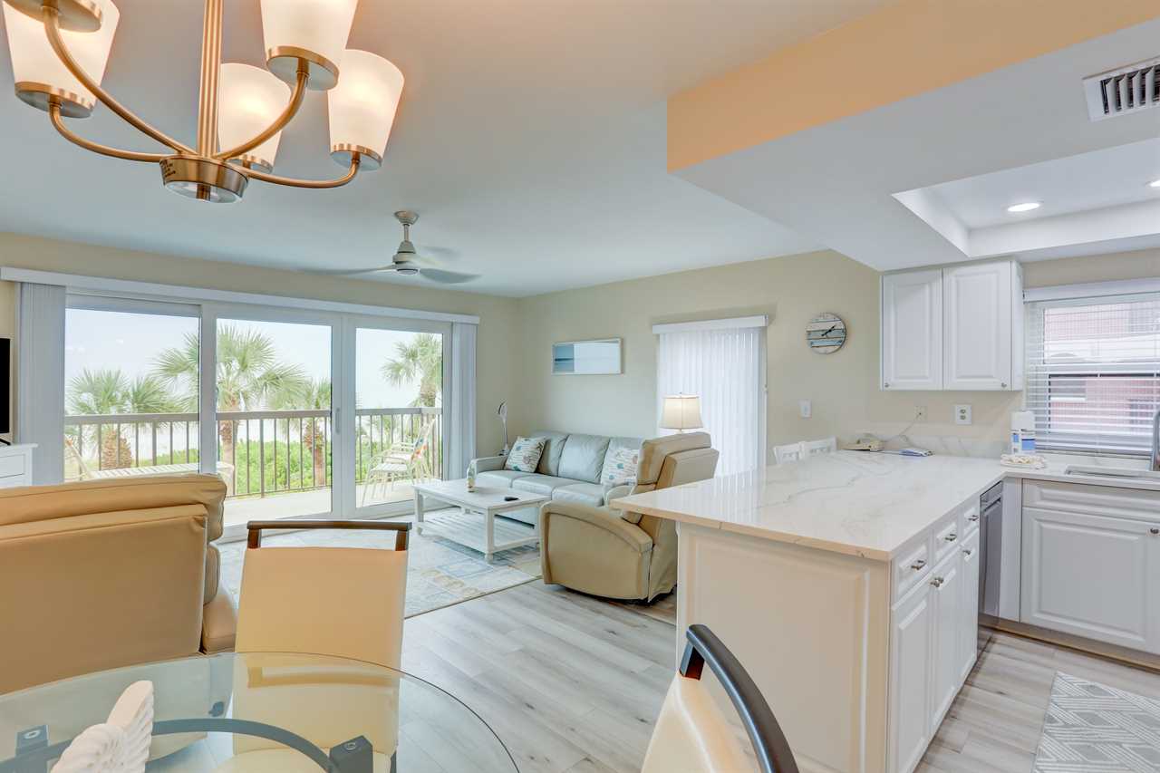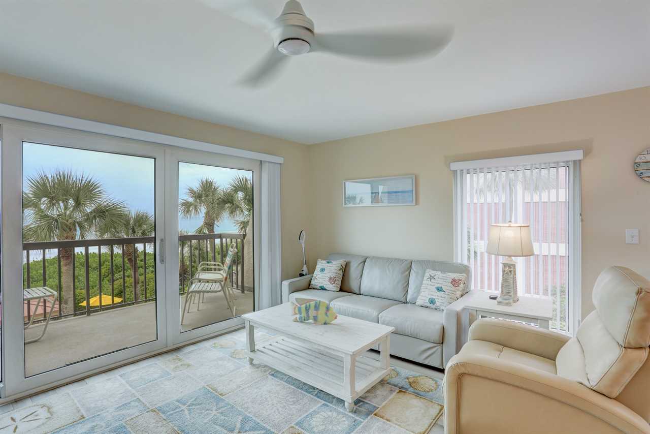 Welcome to Unit 203, a beautifully updated 825 sq ft 1-bedroom, 1.5-bath condo offering direct Gulf-front views of the beach and pool from your private balcony. With stylish finishes and thoughtful amenities, this unit is ideal for couples or small families seeking a relaxing beachside retreat.