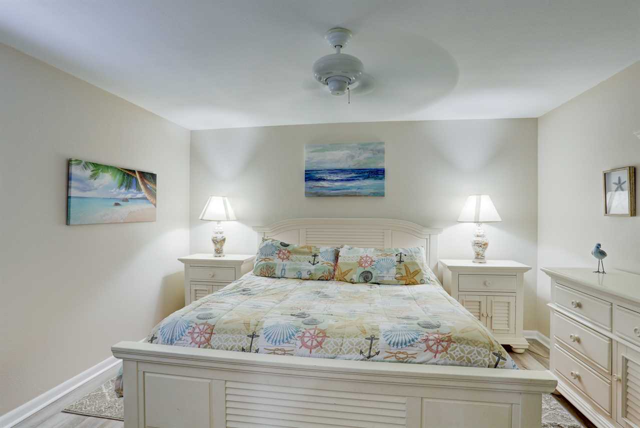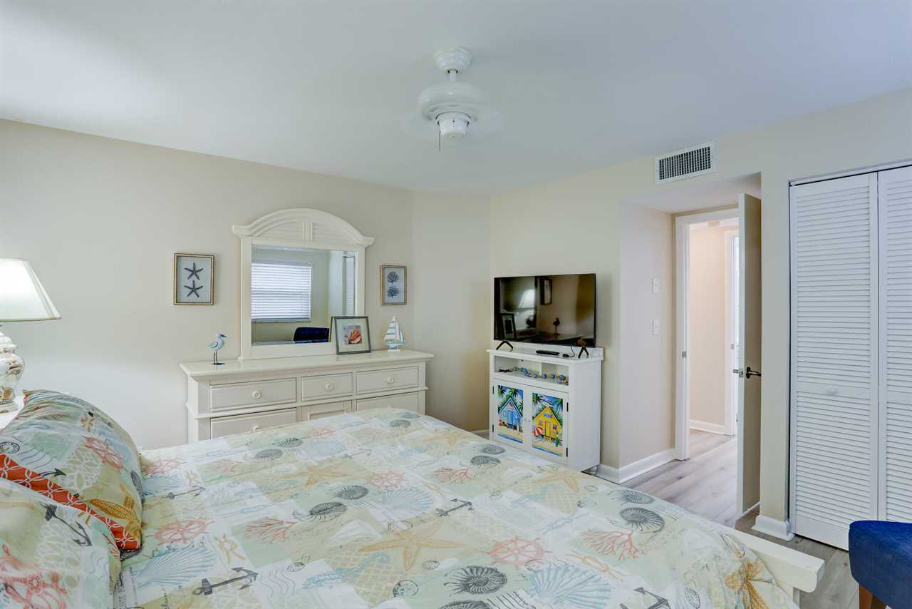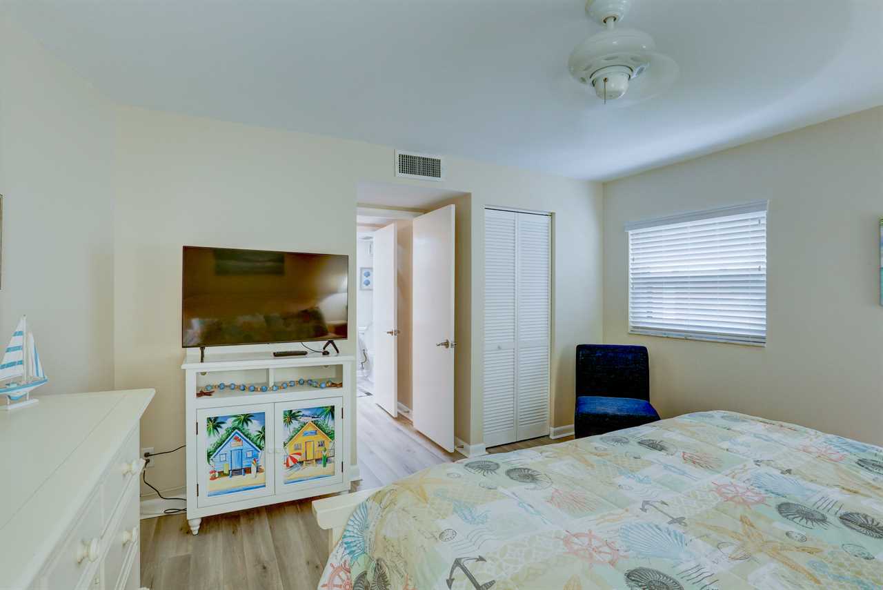 • Master bedroom with king-sized bed, ceiling fan, 20” flat screen TV, and DVD player