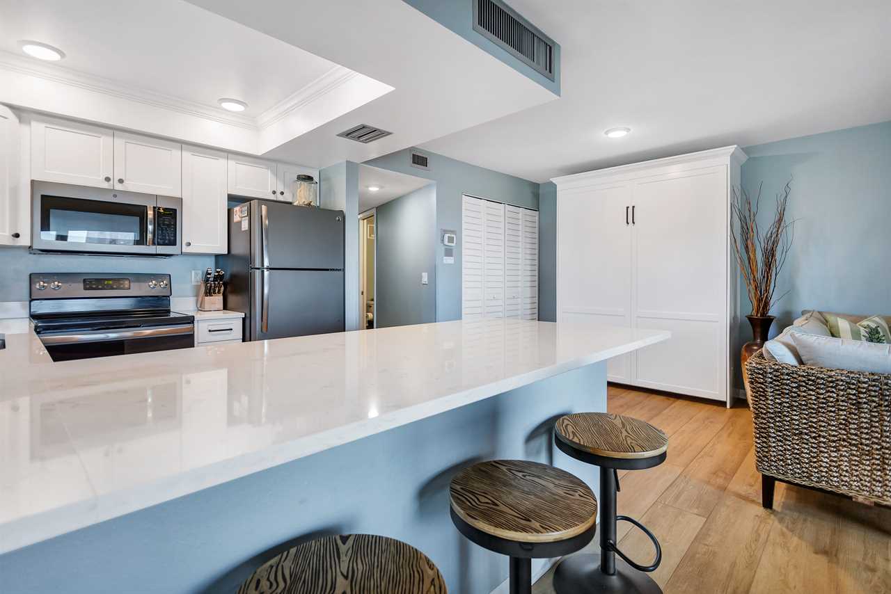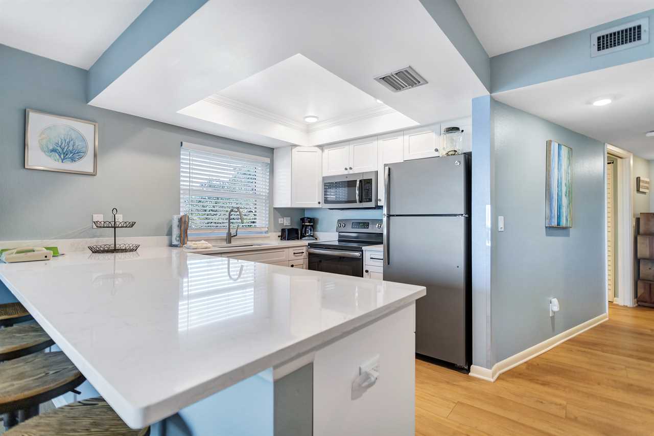 Unit 304 is ideal for couples or small families seeking a serene beachside stay with versatile sleeping options and easy access to everything St. Pete Beach has to offer.