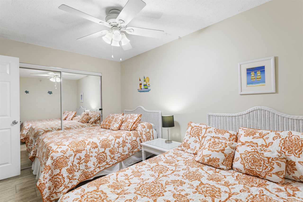 | Second Bedroom | One queen + one full-size bed, flat screen TV |