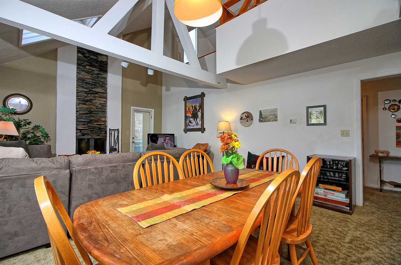 On the main level, you'll find a fully equipped kitchen with a propane cooking stove, toaster oven, microwave, Keurig, and coffee pot, along with a dishwasher for easy cleanup. The dining area comfortably seats six, and the inviting living room includes a 42" flat-screen TV and a wood-burning fireplace. There is also a bedroom with a queen bed and a full bath with a shower only.