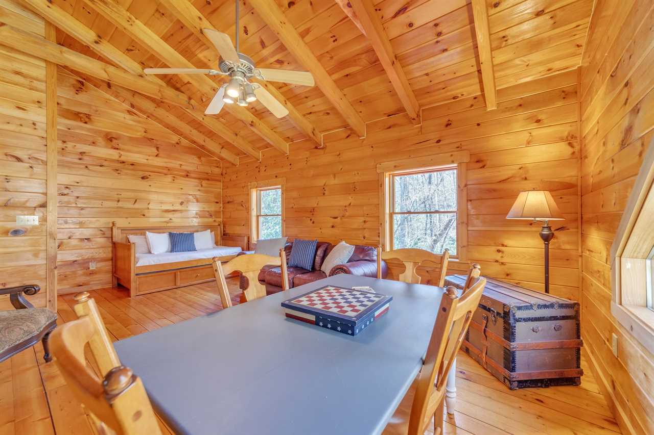 It is with great pleasure we welcome you to 'Dreamcatcher'! Peacefully tucked in lush woods whose porch overlooks a meandering stream running right down its side. A short, magical moss-covered path leads to a creekside fire-pit (firewood available at the grocery), and a small waterfall. Kids (and adults) can easily play in the shallow creek (just be mindful of spiders and snakes). Dreamcatcher is within a gated community called Riverbend at Lake Lure. Across the main road (5mins), use your gate pass to access the other half of the community which has additional amenities. The beach at Mirror Lake (Hickory Nut Lake) is beautiful with peaceful, mountain views, great for swimming and playing in clean, white sand - make sure to check out a sunset at this spot. Just a walk across the parking lot is the "Nature Walk" which leads to a waterfall. You could spend a day here exploring the river - fishing, kayaking, tubing or simply enjoying quiet time near the water. From the cabin -- Ingles Supermarket (10mins), Canopy Ridge Farm Ziplining (5mins), town of Chimney Rock (~20mins). Dreamcatcher is a non-smoking, dog friendly cabin that sleeps ten very comfortably with two kings, one queen, and 4 twin beds. Cozy enough for two, but its thoughtful layout makes it easy for large groups. You can choose to stay here all day to relax and play, or plan your day to any one of the many activities Lake Lure and the surrounding area has to offer. It is always our sincere hope that Dreamcatcher not just meet, but even exceed our guest's expectations. For that reason we gave great thought when breathing life into our already lovely log home. Open beam construction and decorated with special detail featuring three large bedrooms, three large full bathrooms (one on each floor), basement playroom with air hockey and foosball table, two televisions with streaming/DVD players, loft with additional gathering area, family room with wood burning fireplace and fully stocked kitchen. A mud room with washer/dryer and utility sink offers additional access to the three sided deck with grill. In the basement you will even find rubber boots in various sizes lined up at the back door just begging to be thrown on for an adventure outside. Plenty of fun to be had by all! Lake Lure is gorgeous with rock faces to the water and boasts a fun beach/water park with many lifeguards on duty in season. Play golf at one of the three courses nearby, play tennis or basketball near the lake, or rent a boat and enjoy skiing, tubing or knee boarding while learning new techniques from your personal certified instructor. Lovely cruises are a wonderful way to view Lake Lure's beauty and leave every hour at the beach's marina. Nearby Chimney Rock is a fun little town offering unique shops, putt putt by the river, restaurants and hiking at Chimney Rock is spectacular! Not far is Asheville where, among other things, you might tour Biltmore Estates and Winery. The beauty of having your space here is the mountains offer something for everyone! PLEASE NOTE: **This home is equipped with security cameras to monitor activity when the home is vacant. Cameras are disabled once guests check in** ***Guests at this home will be required to sign a Vacation Rental Agreement.*** Check-in time at this home is at or after 4pm (local time). Check-out time at this home is at or before 10 am (local time). This is a Pet-Friendly home - up to two dogs are allowed (weight and breed restrictions may apply - please inquire prior to booking). Sorry, no cats, birds, other household pets or exotic animals are allowed. The pet fee is $100 plus tax. In addition to the nightly rate, booking fee, cleaning fee, and taxes, a $59 Accidental Damage Waiver which covers up to $1500 in accidental damage during a guest stay. Any damage in excess of $1500 will be the guest's responsibility. Negligent or purposeful damage will be the responsibility of the guests and is not covered by accidental damage Insurance. The roads in the Riverbend community are packed gravel. 4WD is not necessary, but recommended if guests don't feel comfortable navigating mountain roads.