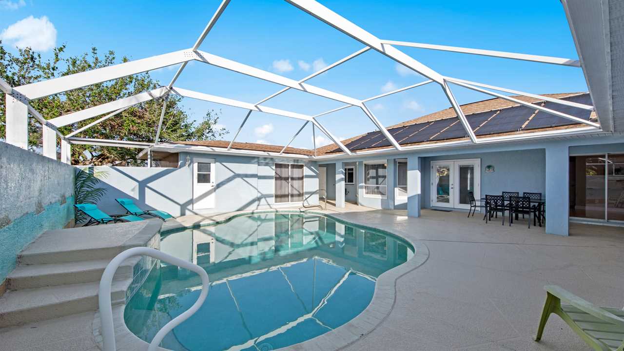 Welcome to Cape Coral Reef, a rare and beautifully designed courtyard-style home offering comfort, privacy, and space for large families or groups. This expansive 5-bedroom, 3-bathroom property features a main home and two private guest suites—ideal for multigenerational vacations or guests seeking added seclusion.
