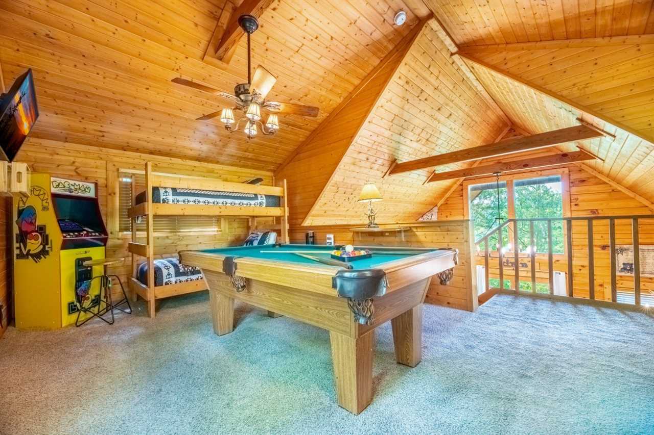 After a day riding roller coasters at Dollywood, shopping and eating at The Island, and exploring the Great Smoky Mountains National Park, come back to Knotty and Nice to make meals in the fully equipped kitchen, soak away stress in the outdoor hot tub, play arcade games, toss burgers on the charcoal grill, and unwind on the wraparound deck. The cabin also has a pool table, so you can play around before cozying up by the gas fireplace on a cool mountain night.